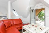Größe ca. 50 Quadratmeter, Wohn- und Schlafraum, Küche, Badezimmer mit Dusche, Waschtisch und WC, Obergeschoss, Loggia (überdachter Balkon), optimal für 1 bis 2 Personen.