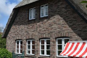 Oldsum – lebens- und liebenswert durch urige Reetdachhäuser, Cafés, Einkaufs-