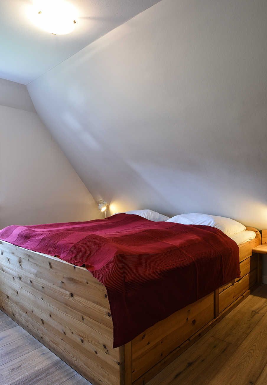 Dachgeschoss: Diele mit gemütlicher Leseecke, zwei Schlafzimmer jeweils mit Doppelbett, drittes Schlafzimmer mit zwei Einzelbetten, Wannenbad/WC.