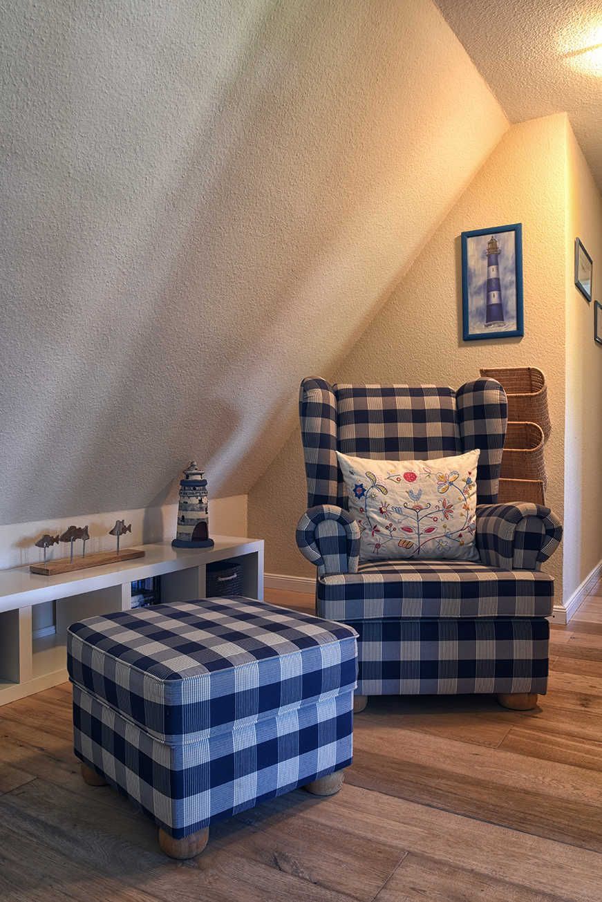 Dachgeschoss: Diele mit gemütlicher Leseecke, zwei Schlafzimmer jeweils mit Doppelbett