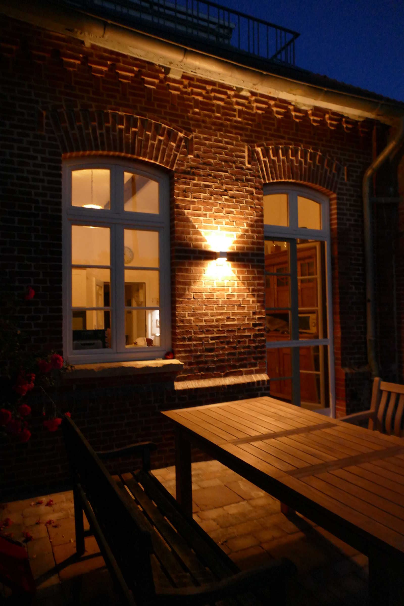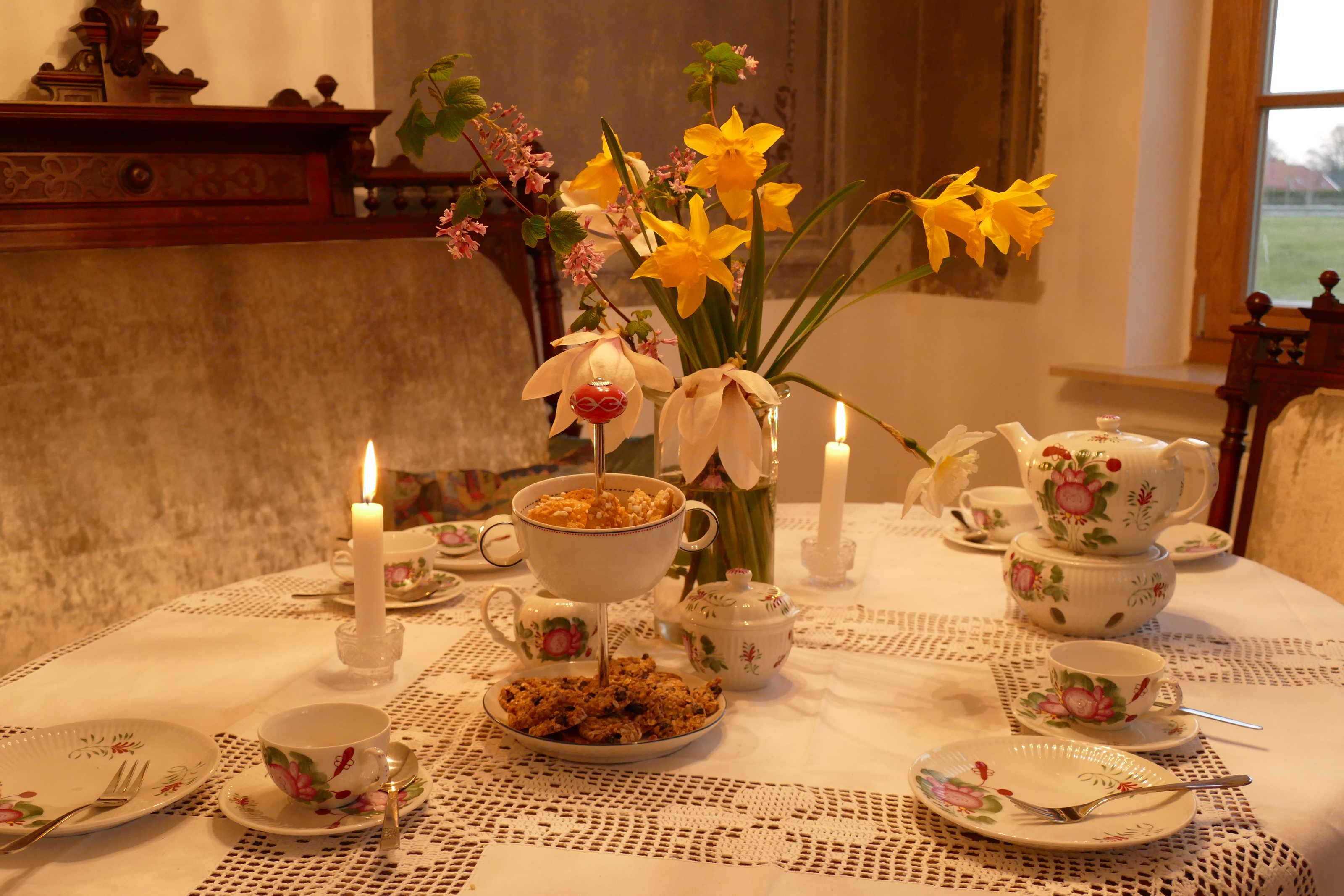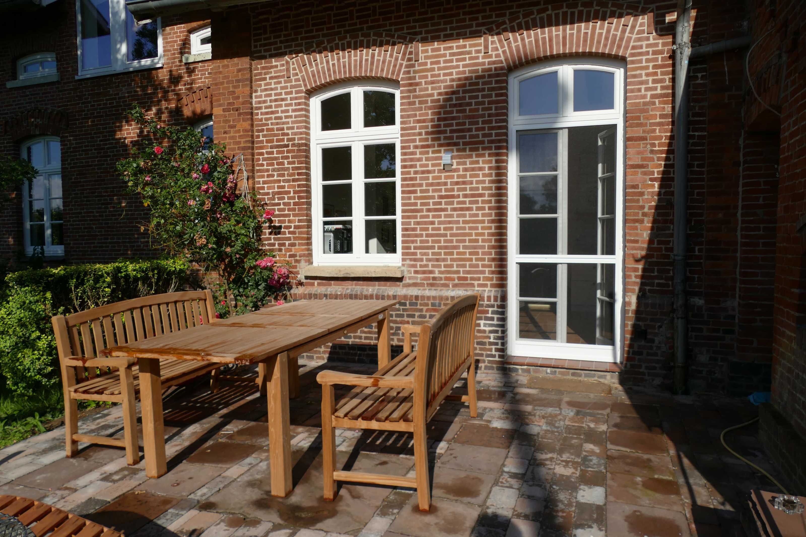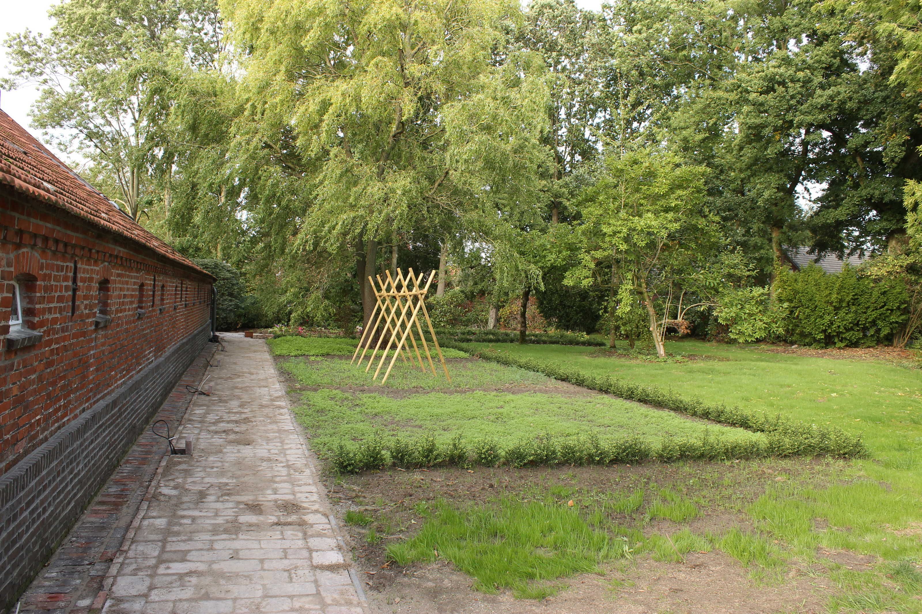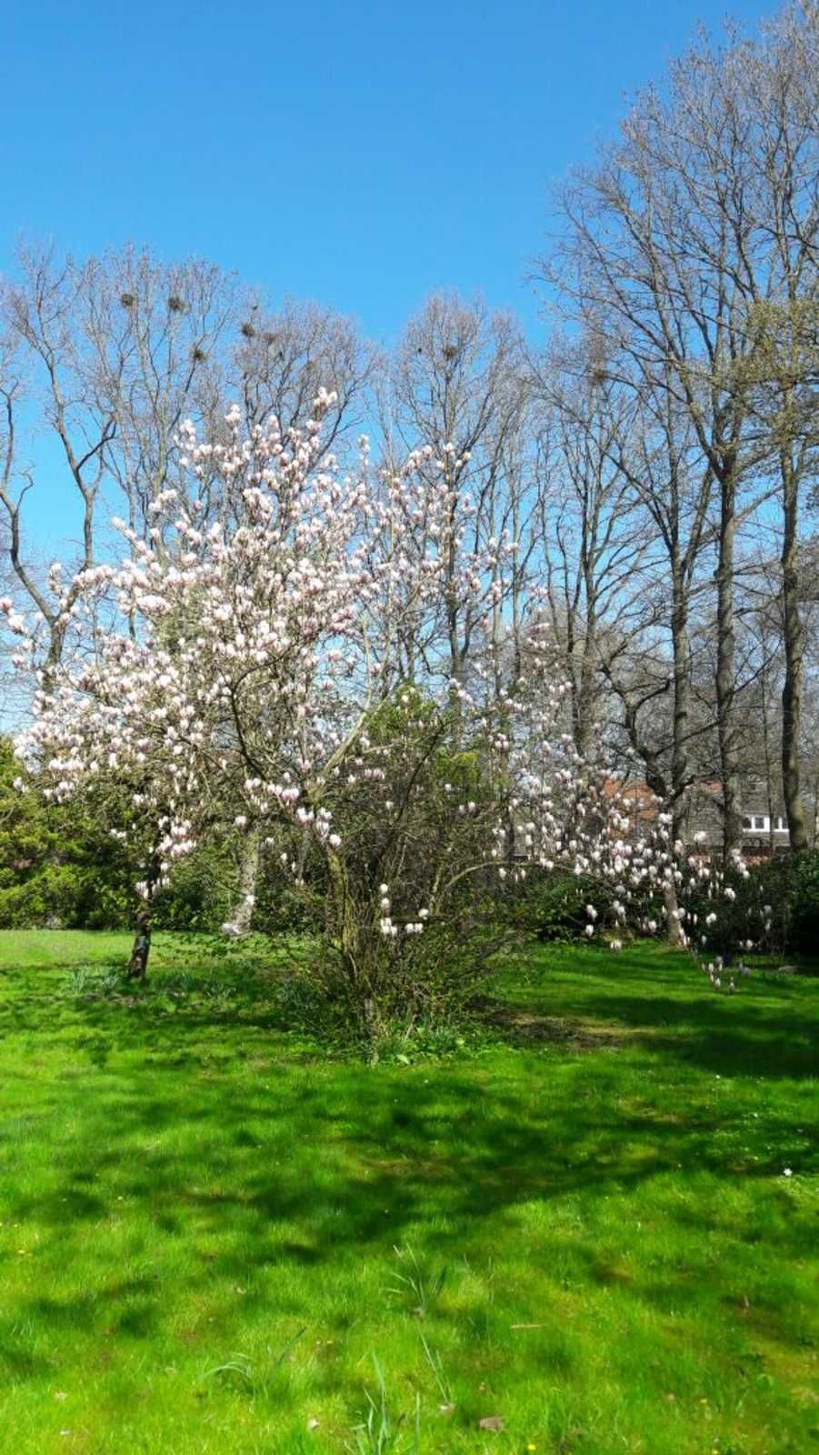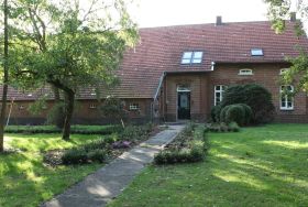 Ein herrlicher großer Bauerngarten umgibt das historische Gebäude, begrenzt durch einen breiten Graben - auch Gracht genannt - sowie einen reichen, alten Baumbestand z. T. über 100 Jahre alt. Mittendrin haben wir eine Schaukel für Kinder eingerichtet, auf der es sich in jedem Alter bis in luftige Höhe schwingen lässt. Der Garten besticht weiterhin je nach Jahreszeit durch Obstbäume, herrlich blühende Rhododendronbüsche in prächtigen Farben, einer Magnolie, einem Meer von Buschwindröschen, Osterblumen, Schneeglöckchen, Krokussen, Gänseblümchen und Löwenzahn. Rosenbeete zieren den Eingangsbereich. Gerne dürfen sich unsere Gäste an den Schnittblumen und Obstbäume frei von Schadstoffen bedienen. Der Garten lädt ein zum Spielen und zum Lauschen der Vogelstimmen, die sich in nächster Nähe in unterschiedlichem Tonlagen „unterhalten“.ein. Abends fasziniert bei klarem Himmel der Sonnenuntergang am Himmel inmitten des beeindruckenden ostfriesischen Wolkenhimmels. Das alles können sie beim Grillen auf der Terrasse beobachten und hören. Tagsüber lässt sich die Friesische Freiheit hautnah auf Radwandertouren erleben, wenn Sie Ihren Blick streifen lassen über die grünen Wiesen bis zum Horizont.