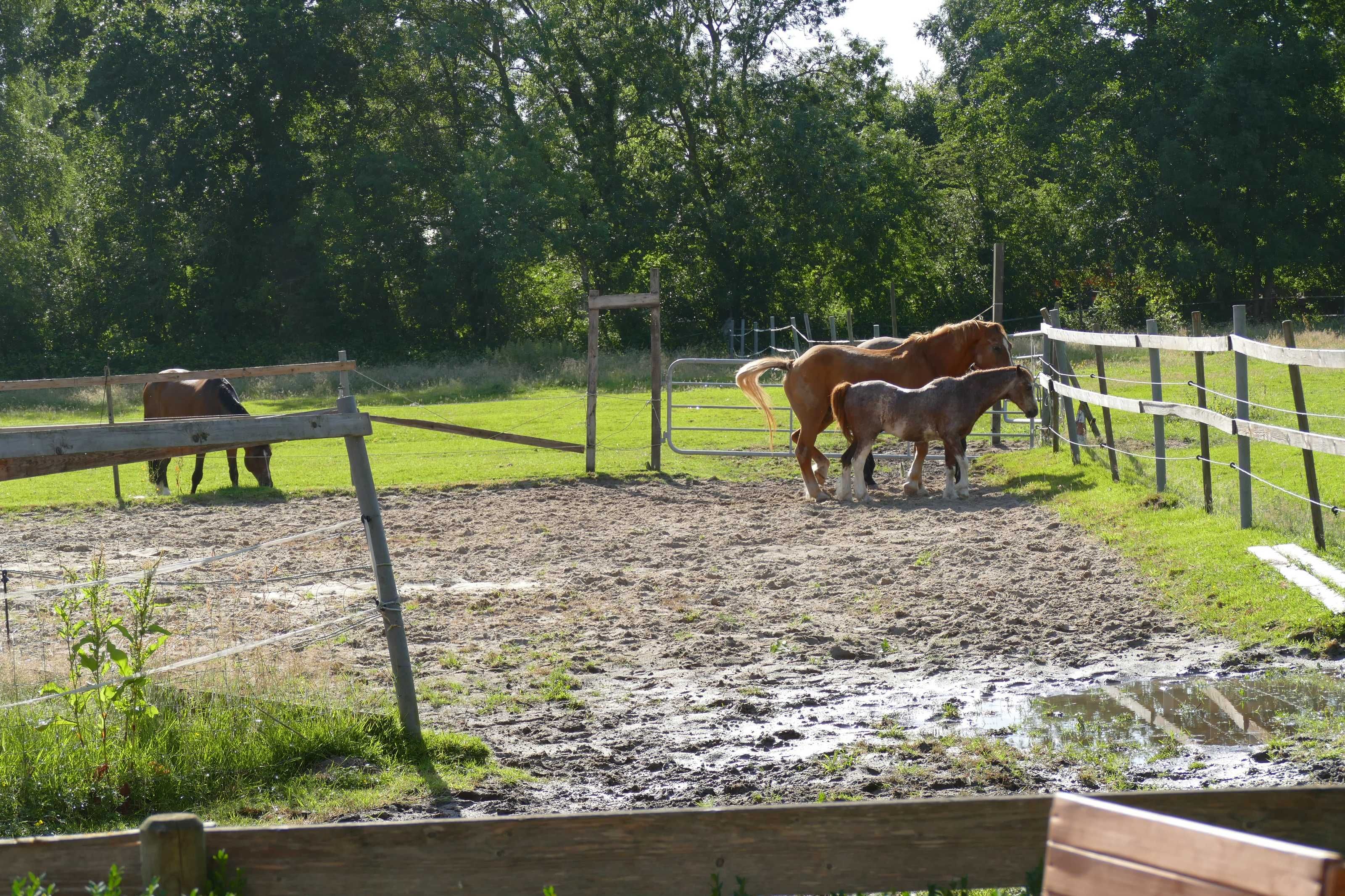Für die Insekten wurde eine Blühwiese und ein Insektenhotel eingerichtet. Hinter dem Hofgebäude befindet sich eine große Pferdekoppel, deren Entwässerung in Grüppen erfolgt, erwähnenswert, weil es der ursprünglichen, historische Form der Entwässerung handelt, die längs über die Weide verlaufen. In tieferen Stellen bilden sich in feuchteren Monaten seichte Tümpel/Pfützen, an denen Frösche, Enten und oftmals auch Störche beobachtet werden können. Aufgrund der günstigen Lebensbedingungen für Störche hat in diesem Jahr ein Storchenpaar auf der neu eingerichteten Nisthilfe Einzug gehalten.