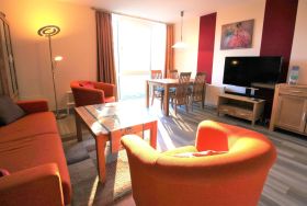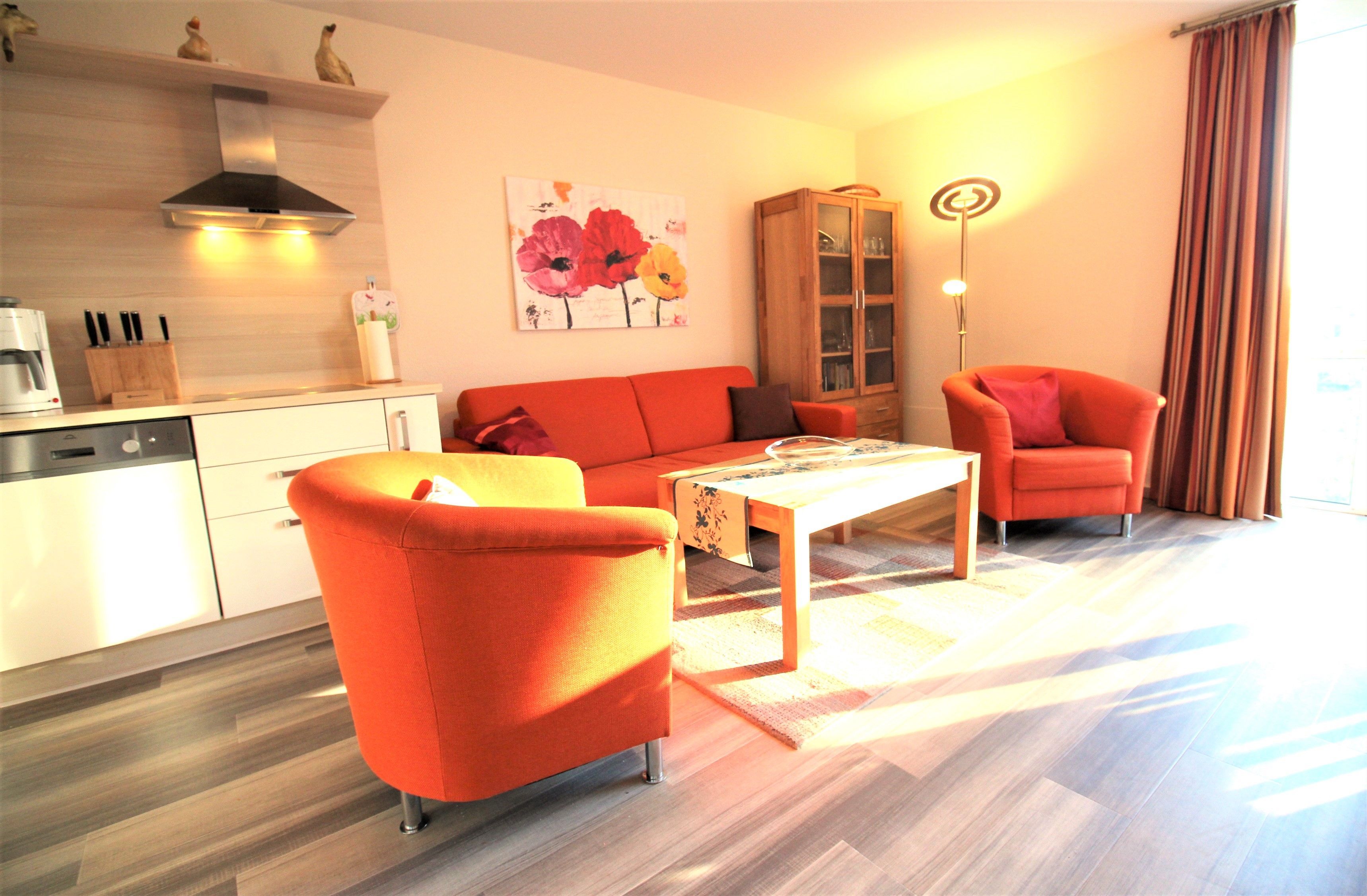 2-Zimmer-Appartement für bis zu 4 Personen auf ca. 46 m². Schlafzimmer mit Doppelbett, Wohn-Schlafraum mit Doppelbettcouch, TV, separatem Essplatz, voll ausgestattetem Küchenbereich, Balkon oder Terrasse, Bad mit Dusche/WC. WLAN und PKW-Stellplatz vorhanden.