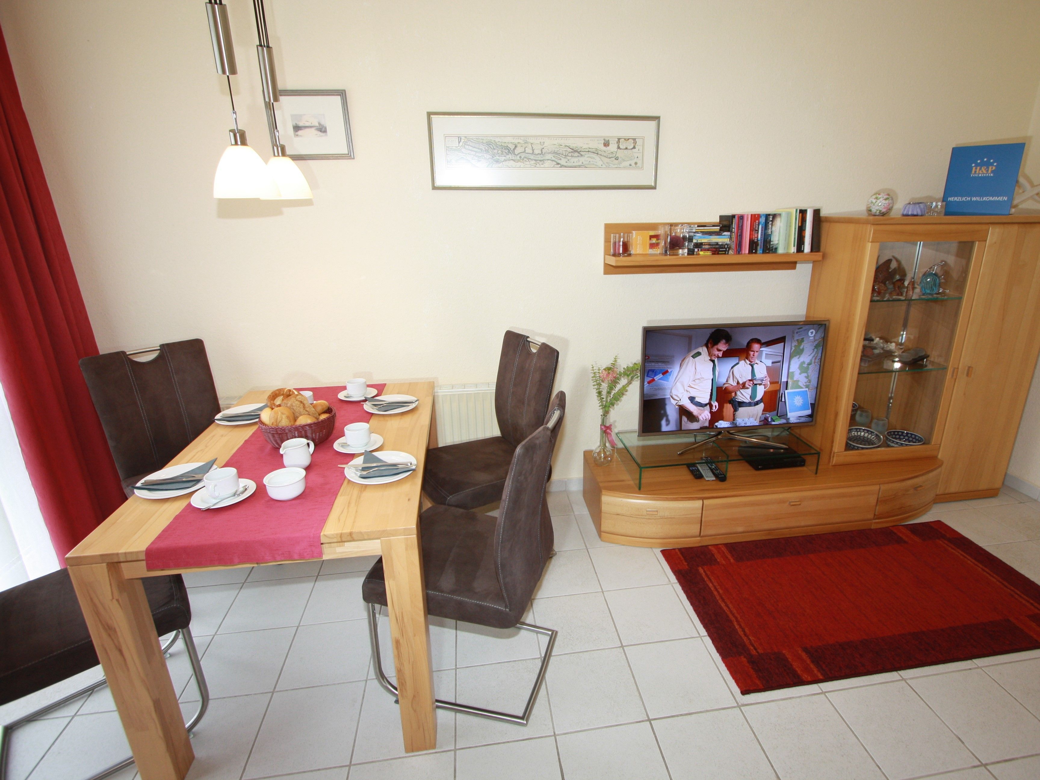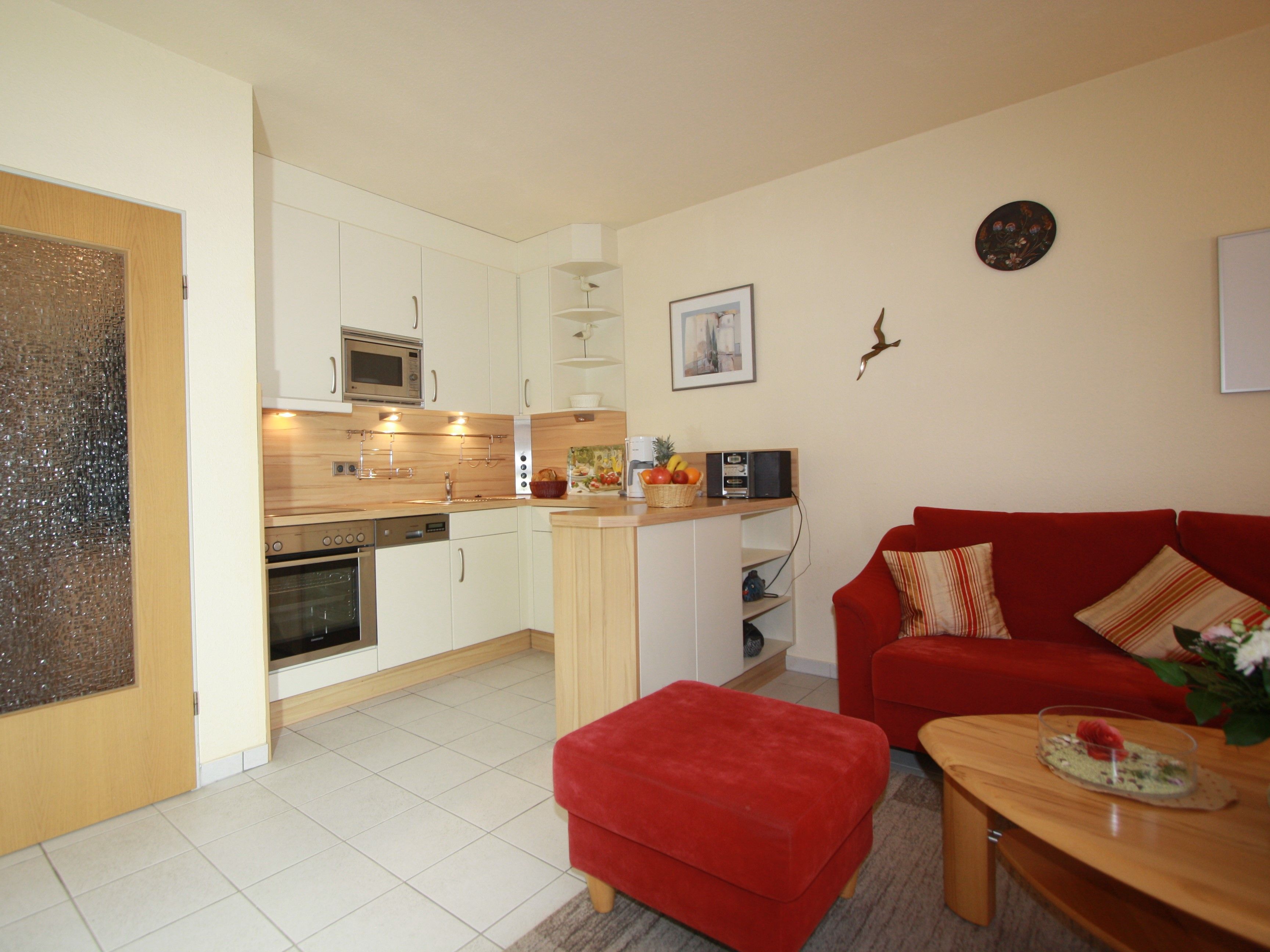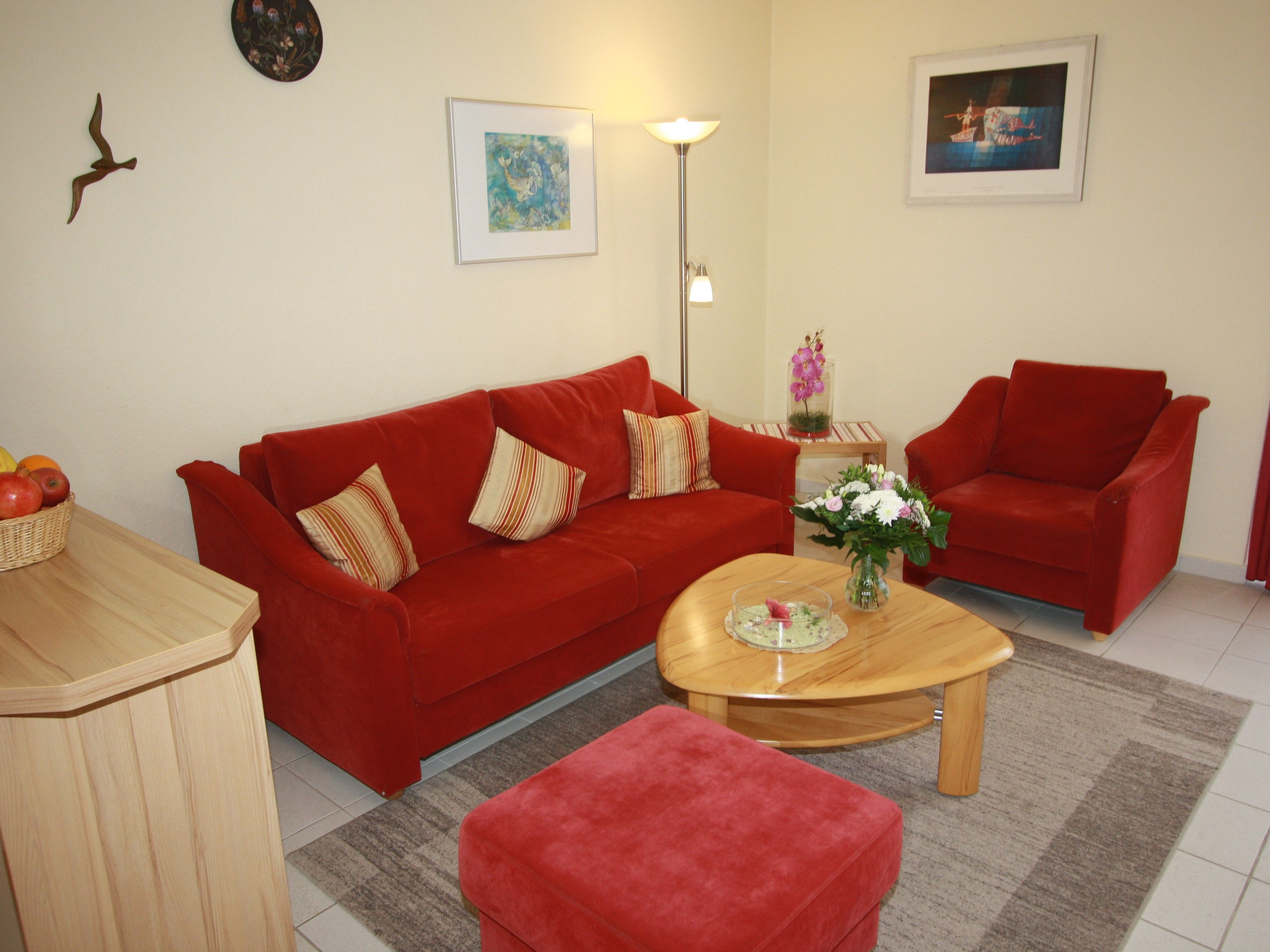 2-Zimmer-Appartement für bis zu 4 Personen auf ca. 46 m². Schlafzimmer mit Doppelbett, Wohn-Schlafraum mit Doppelbettcouch, TV, separatem Essplatz, voll ausgestattetem Küchenbereich, Balkon oder Terrasse, Bad mit Dusche/WC. WLAN und PKW-Stellplatz vorhanden.