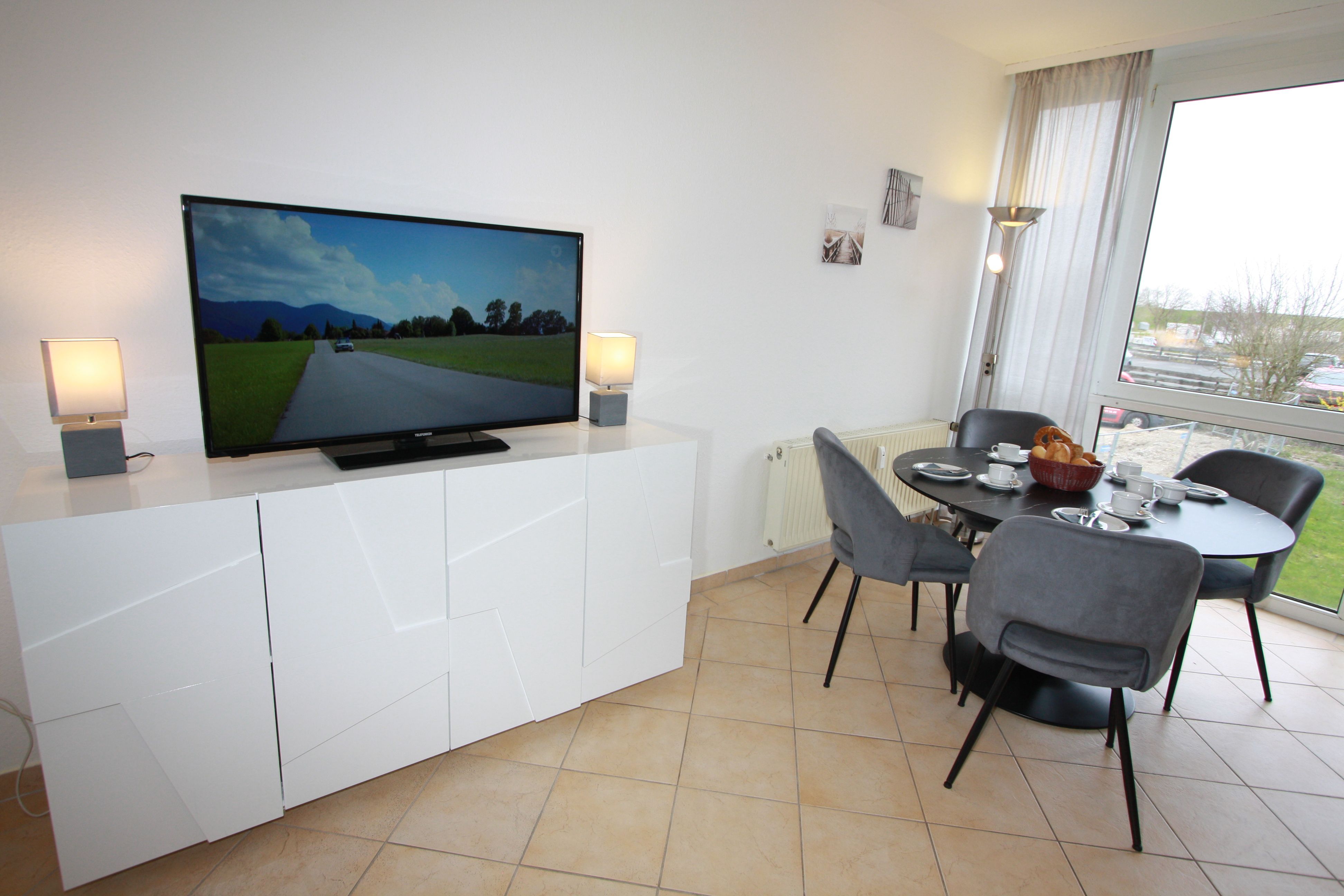 2-Zimmer-Appartement für bis zu 4 Personen auf ca. 46 m². Schlafzimmer mit Doppelbett, Wohn-Schlafraum mit Doppelbettcouch, TV, separatem Essplatz, Küchenbereich, Balkon, Bad mit Dusche/WC. PKW-Stellplatz vorhanden.