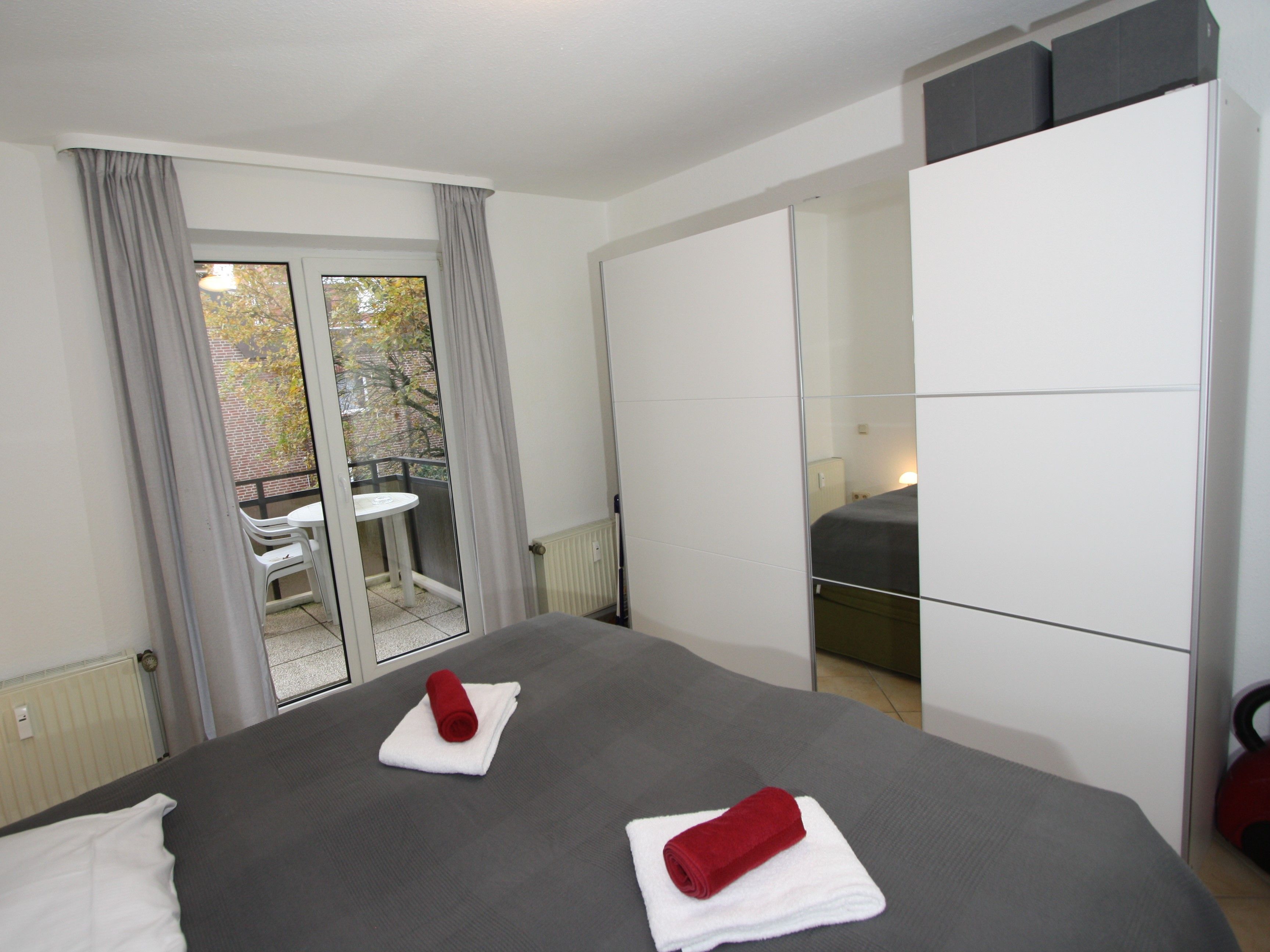 Sie wohnen in einem großzügigen 2-Zimmer-Appartement für bis zu 4 Personen auf ca. 46 m² Wohnfläche im 1. Obergeschoss. Ein Schlafzimmer mit Doppelbett, Wohn-/Schlafraum mit bequemer Doppelbettcouch, separater Essplatz, voll ausgestatteter Küchenbereich, Dusche/WC, Balkon, SAT-TV und Telefon. PKW-Stellplatz in der Tiefgarage.