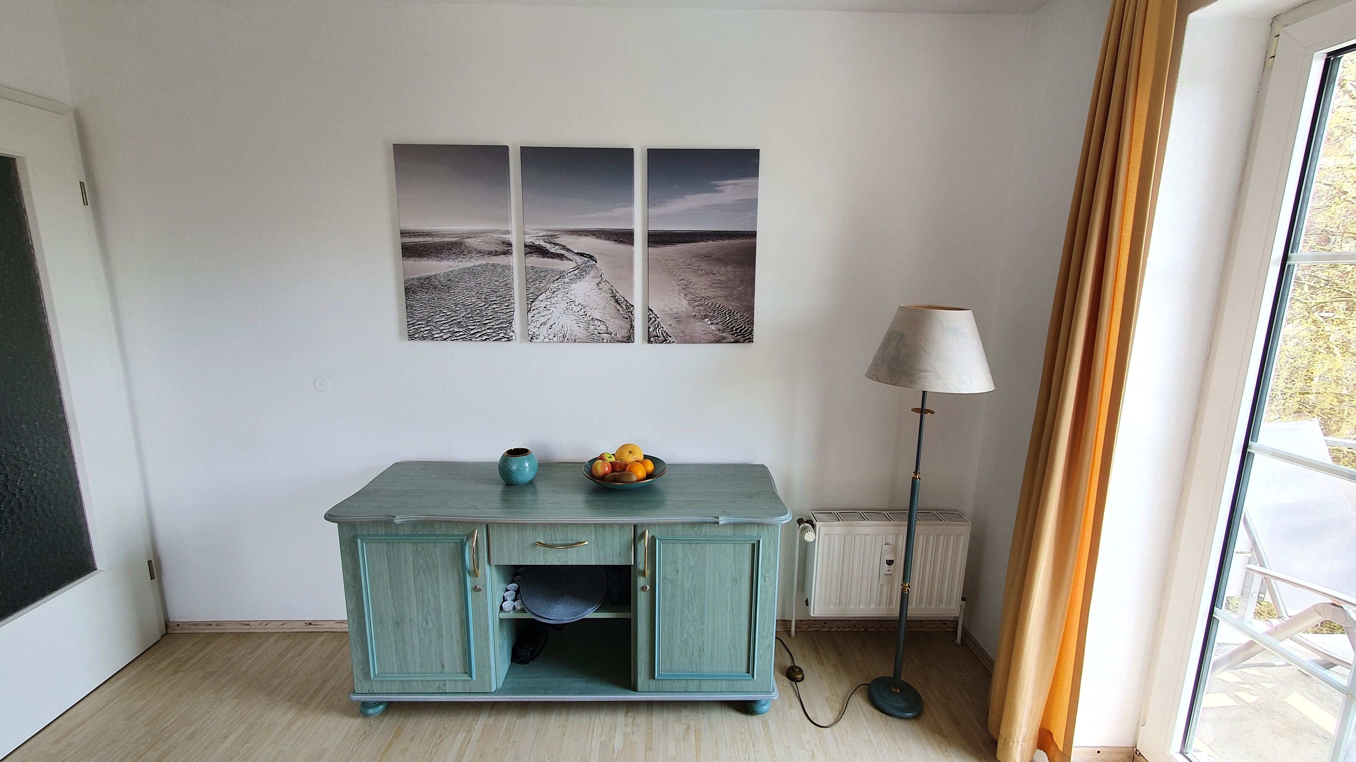 Sie werden sich wohlfühlen in unserer sonnendurchfluteten Wohnung für bis zu 4 Personen im 2. Stock (Aufzug) im ruhigen hinteren Teil der kleinen Ferienanlage mit Charme. Beginnen Sie den Tag bei einem Frühstück auf unserem schönen Südbalkon oder am Esstisch im verglasten Erker mit Blick auf das Meer und den Deich. Im Wohnzimmer entspannen Sie auf einer modernen Couch, die in ein bequemes Doppelbett verwandelt werden kann. Die Küche ist bestens ausgestattet mit Kühl-Gefrierkombination, Elektroherd mit vier Platten und Backofen, Nespresso-Maschine mit Milchaufschäumer, Filterkaffeemaschine, Toaster und Wasserkocher. Das Schlafzimmer für zwei Personen verfügt über einen weiteren Balkon mit Meerblick und viel Sonne ab Nachmittag. Des Weiteren finden Sie im Wohnbereich einen SAT-Flachbild-TV, einen 3D-Blu-ray-Player und selbstverständlich einen schnellen und kostenlosen WLAN-Zugang.