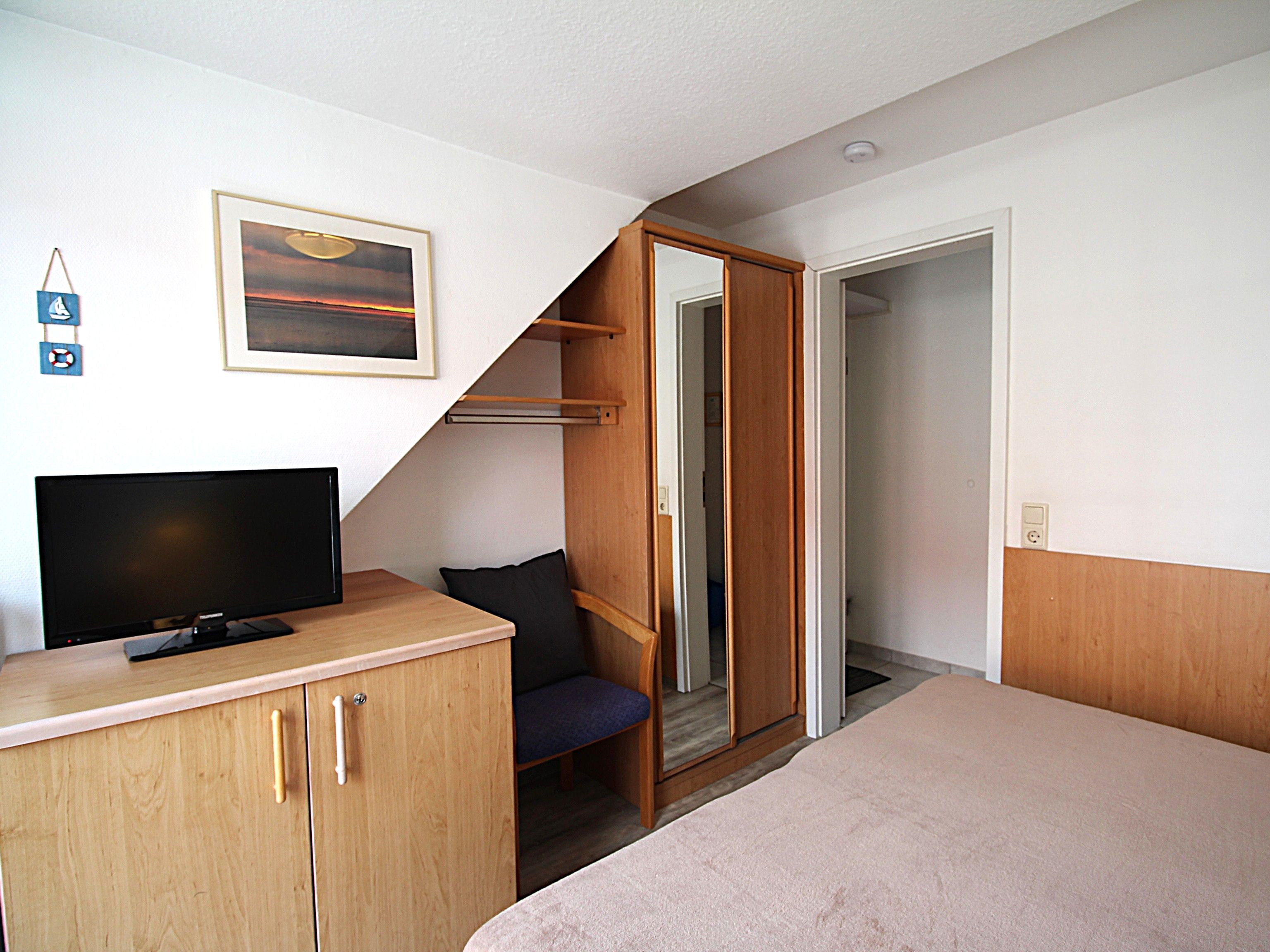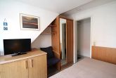 Im oberen Bereich befindet sich das 2. Schlafzimmer mit Doppel- und Einzelbett, dass Sie über eine schmale Holztreppe im Wohnraum erreichen. Die Dachschrägen sorgen für ein extra gemütliches Flair und das dritte Einzelbett ist in eine kleine Koje eingebettet, supergemütlich und ideal für Kinder. Kostenloser WLAN/LAN Internetzugang ist selbstverständlich vorhanden, für Ihren PKW steht Ihnen ein sicherer Stellplatz in der Tiefgarage zur Verfügung.