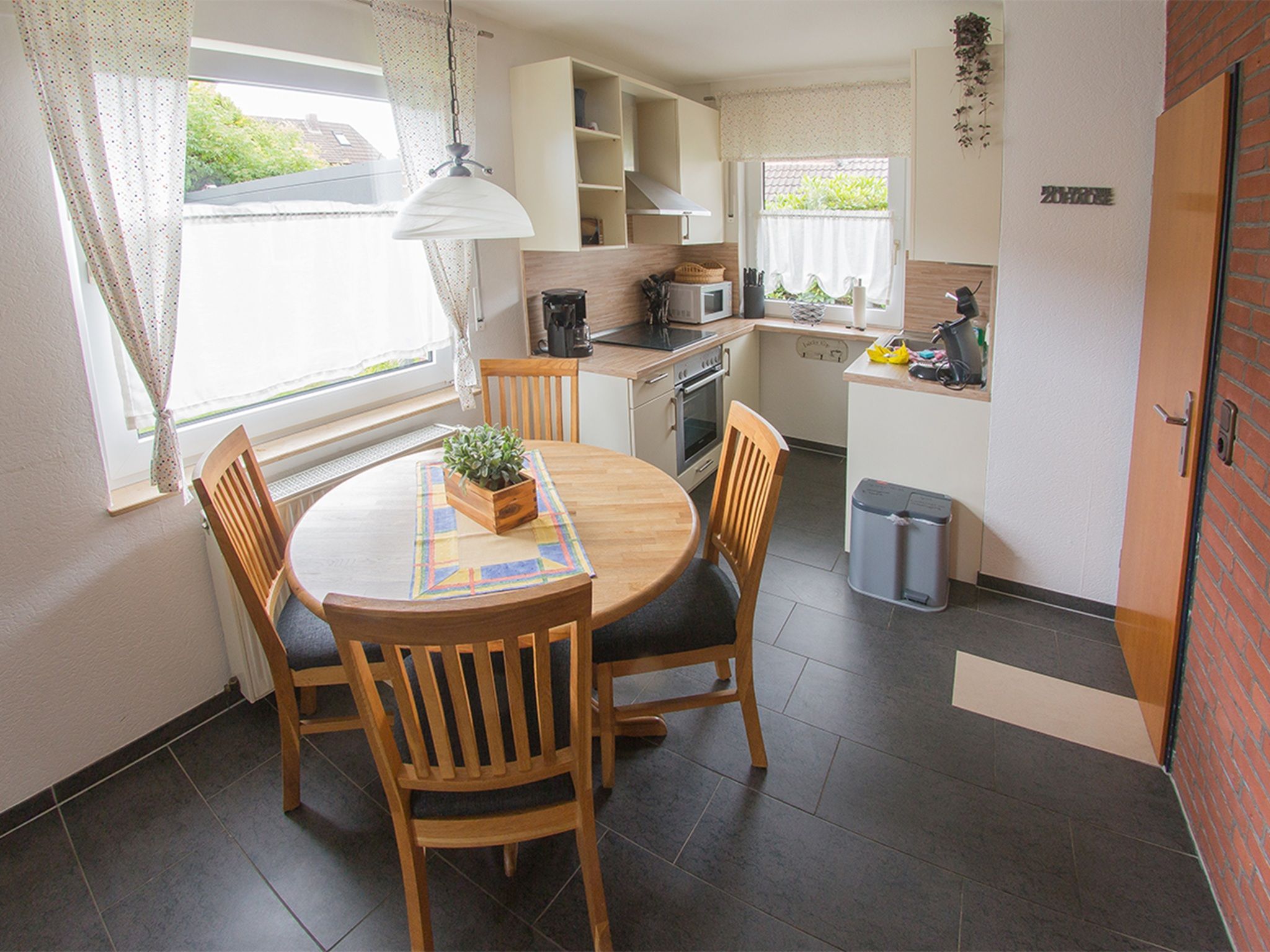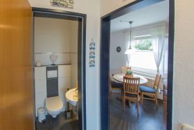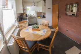 Sie suchen ein modernes, aber auch gemütliches sowie ruhiges, gut gelegenes Ferienhaus, das keine Wünsche offen lässt? Dann freuen wir uns, Sie und Ihre Lieben schon bald in unserem familienfreundlichen Ferienhaus Lueg, Hollwert 14e begrüßen zu dürfen. In strandnaher Lage bietet Ihnen dieses Haus beste Erholung für die ganze Familie. Ob Strand-, Kur- oder aktiven Fahrradurlaub - das Ferienhaus Lueg bietet für jeden Anspruch genau das Richtige. Ab Auto-Stellplatz führt ein kurzer Fußweg direkt zum Reiheneckhaus mit schöner möblierter Terrasse und Gartenanteil. Vom Eingang mit Garderobe und angrenzendem Gäste-WC gelangen Sie rechts in die moderne Küche mit vorgelagertem Essbereich. Weiter durch finden Sie das schicke, lichtdurchflutete Wohnzimmer mit direktem Zugang zur Terrasse. Ab Essbereich führt eine Treppe ins erste OG mit separatem Flur zu den Schlafräumen und zum ebenfalls komplett renovierten Duschbad. Vom Schlafraum mit den Einzelbetten gelangen Sie ins geräumige Dachgeschoß mit einer weiteren Schlafmöglichkeit.