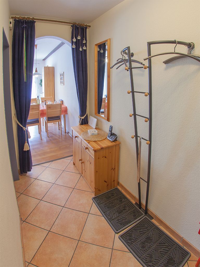 Dieses gemütliche Reihen-Ferienhaus liegt ca. 350 m vom Strand entfernt in ruhiger Sackgassenlage. Ab Stellplatz führt eine Zuwegung zum Ferienhaus. Vom Flur mit Garderobe geht es links in die separate, helle Küche. Diese ist komplett ausgestattet und lädt zum entspannten Kochen ein. Im geräumigen Hauswirtschaftsraum gibt es eine Waschmaschine. Der helle freundliche Wohnbereich hat einen Essplatz, TV, DVD-Player und eine Spielesammlung. Im ersten Obergeschoss befinden sich die beiden Schlafzimmer, eines mit einem Doppelbett plus Kindergitterbett und eines mit zwei Einzelbetten. Ein Tageslicht-Duschbad komplettiert das freundliche Ferienhaus. Auf der geschützten Terrasse genießen Sie das milde Reizklima.