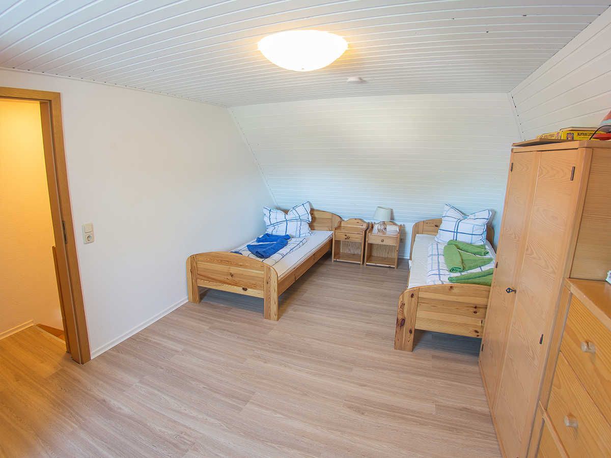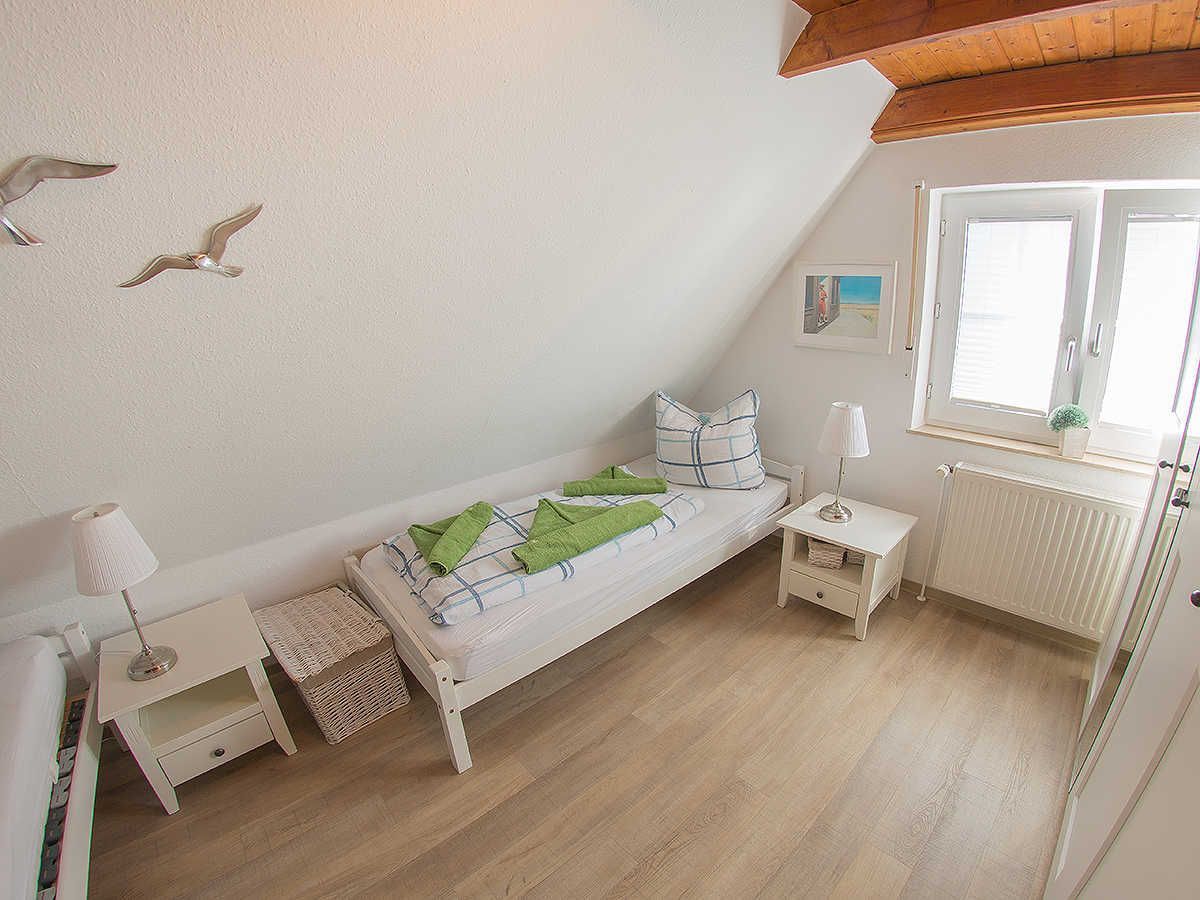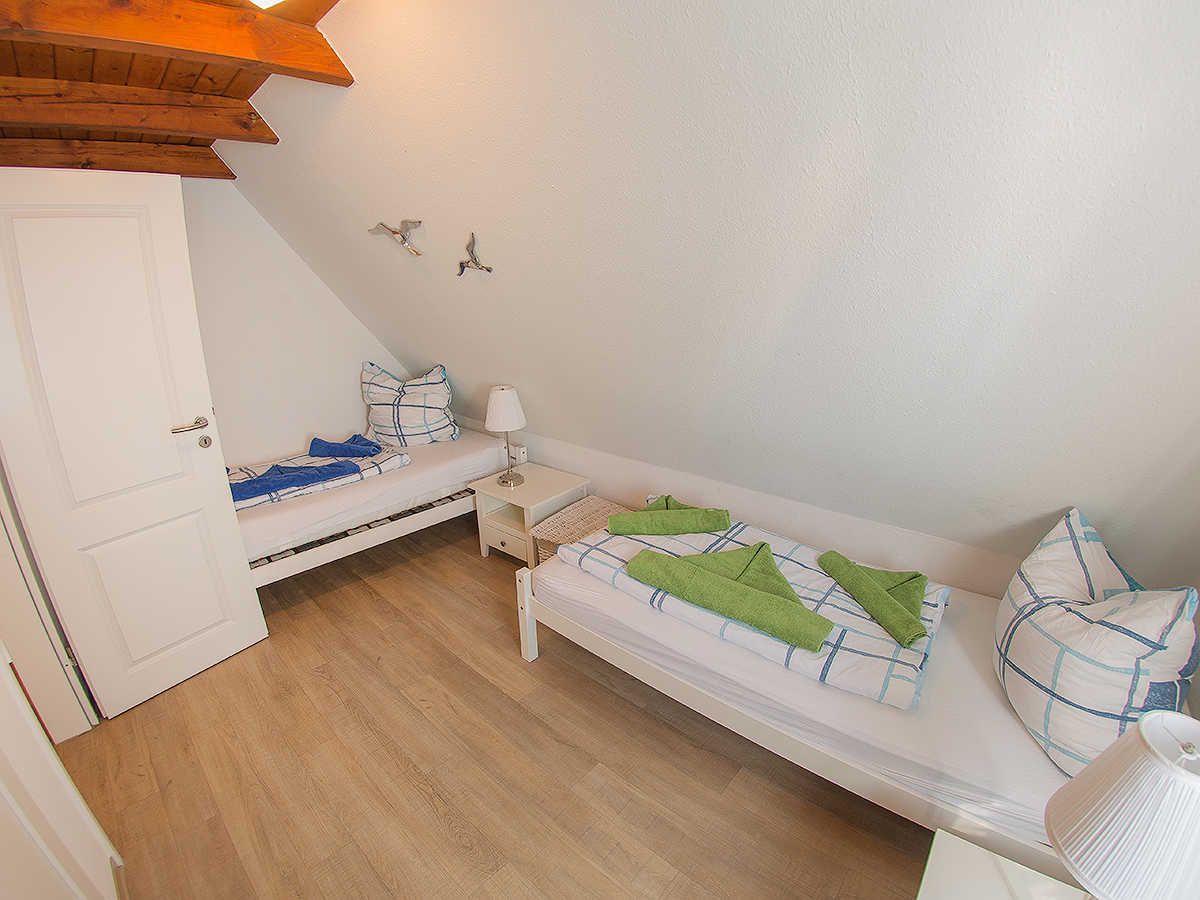 Im ersten Obergeschoss liegen zwei helle Schlafräume mit zwei Einzelbetten und einem Doppelbett sowie das freundliche moderne kürzlich sanierte Duschbad mit Fenster. Im Dachgeschoss gibt es noch ein weiteres Schlafzimmer mit zwei Einzelbetten und Ausstattung für die Kiddies. Genießen Sie ausklingende Abende auf der schönen Terrasse.