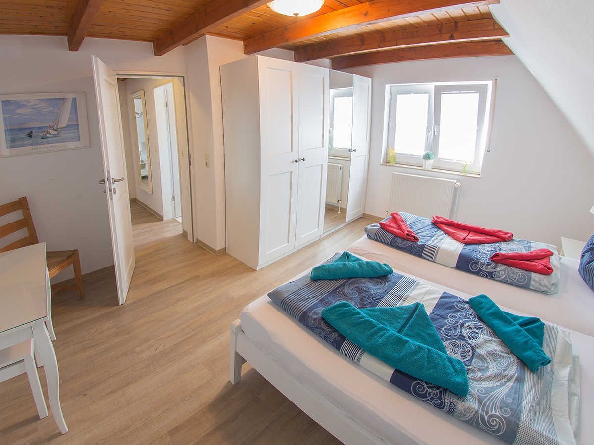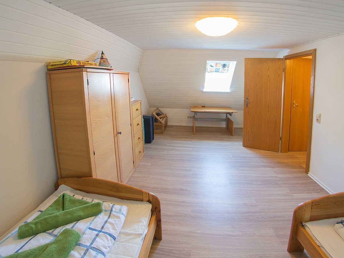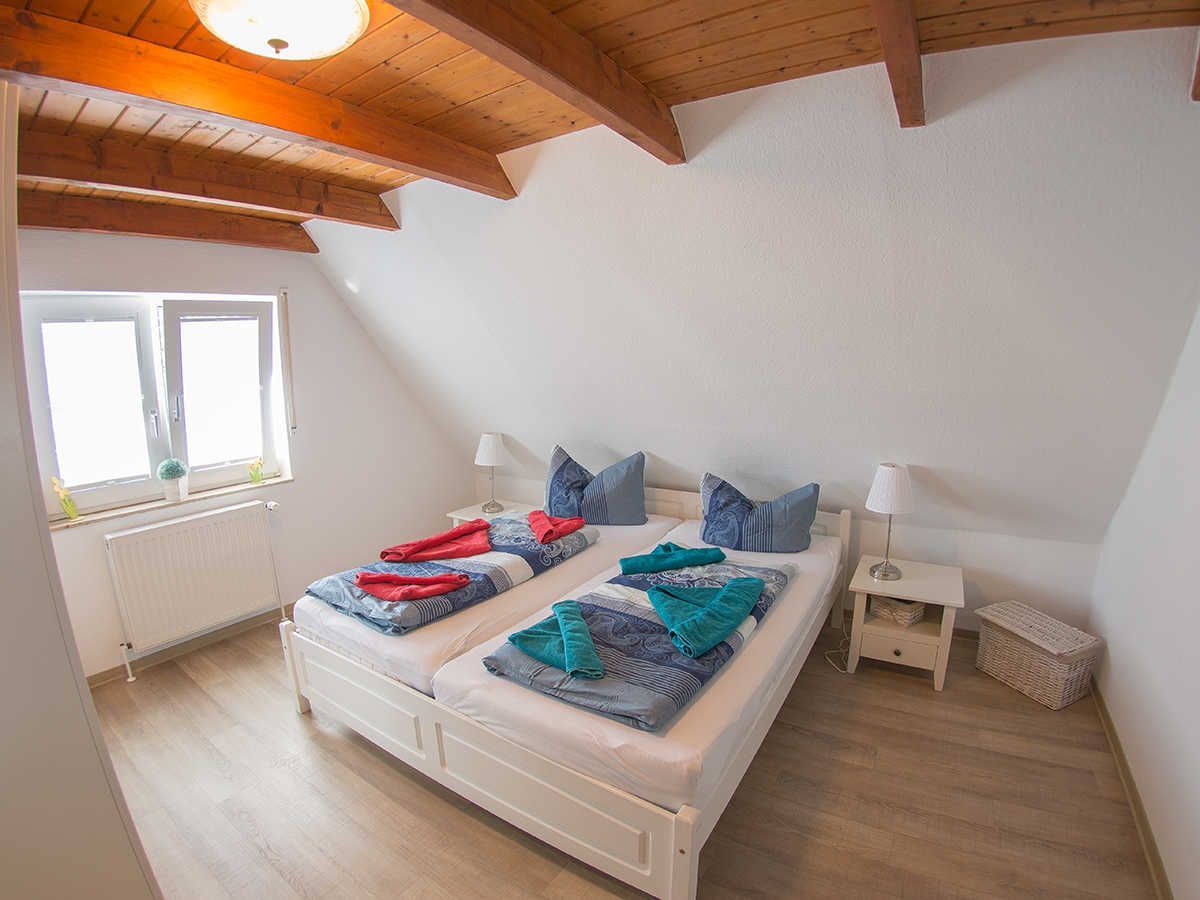 Im ersten Obergeschoss liegen zwei helle Schlafräume mit zwei Einzelbetten und einem Doppelbett sowie das freundliche moderne kürzlich sanierte Duschbad mit Fenster. Im Dachgeschoss gibt es noch ein weiteres Schlafzimmer mit zwei Einzelbetten und Ausstattung für die Kiddies. Genießen Sie ausklingende Abende auf der schönen Terrasse.