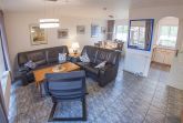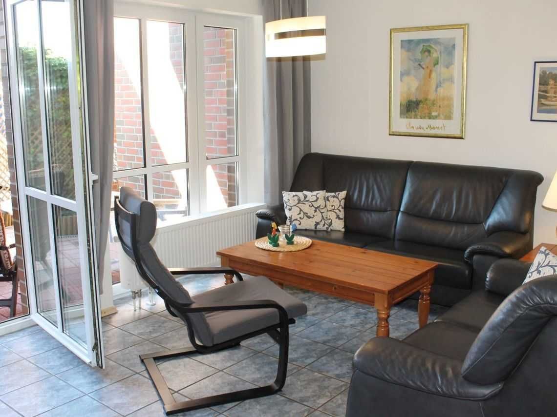 Herzstück der Wohnung ist der geräumige Wohn-/Essbereich mit Zugang zur separaten Küche und Terrassenausgang. Der Essplatz bietet eine Durchreiche zur Küche. Insgesamt stehen drei Schlafzimmer zur Verfügung; eines mit Doppelbett, das weitere mit einem Etagenbett und noch eines mit einem französischen Bett in der Größe 140x200. Das geräumige Fenster-Duschbad bietet Bidet, zwei Waschbecken, eine große Dusche sowie eine Top-Lader-Waschmaschine. Auf der großen Terrasse genießen Sie die frische friesische Luft.