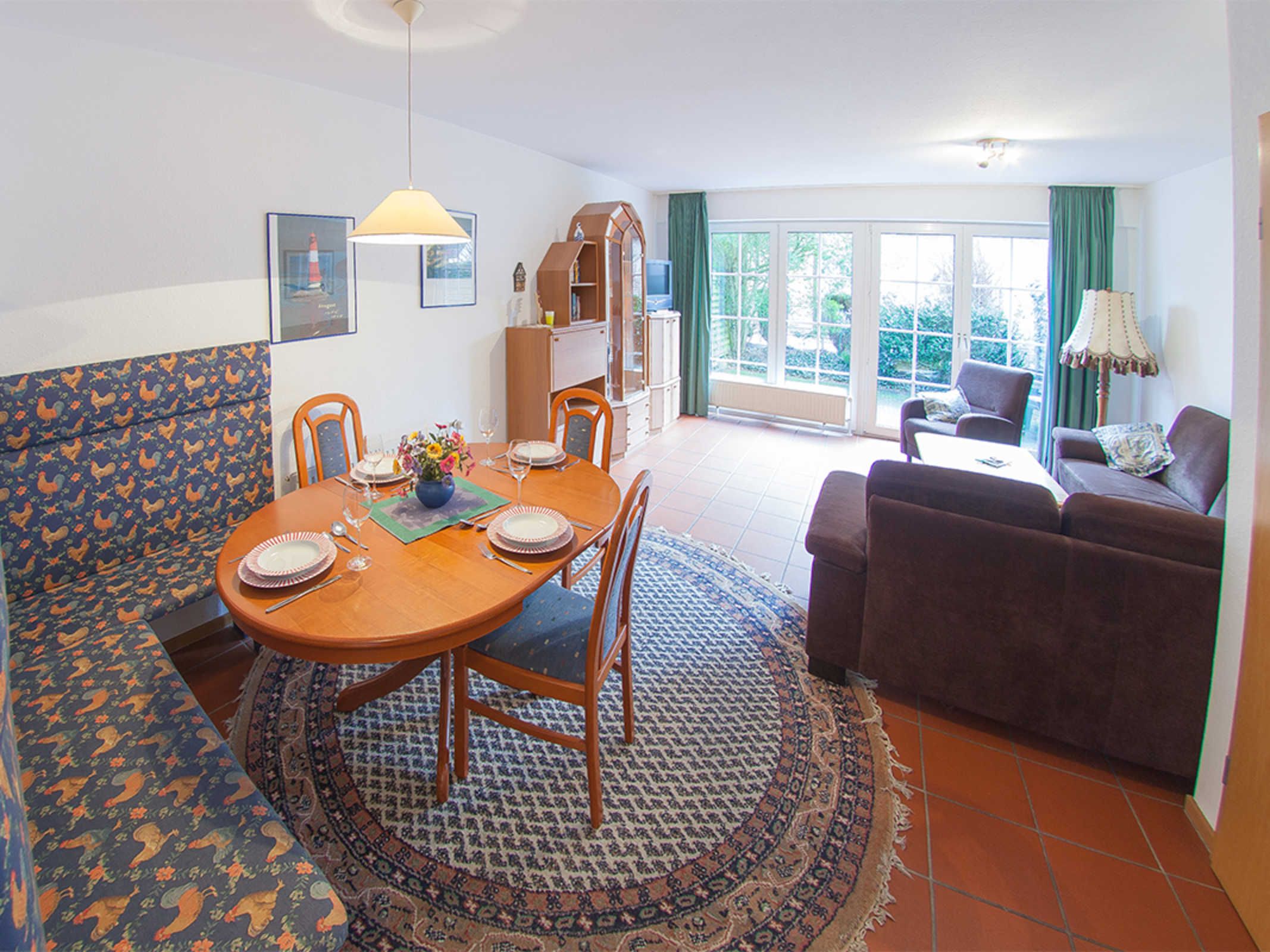 Im Flurbereich des Hauses Wattwurm 2 mit Gäste-WC und Garderobe geht es weiter zum komfortablen Wohn- und Essbereich mit Ausgang zur Terrasse. Die Küche liegt separat. Unsere beiden Schlafräume mit je einem Doppelbett und 2 Einzelbetten befinden sich - neben dem Fensterduschbad - im ersten Obergeschoss. Die Terrasse hat Seitenzaunteile. Urlauben Sie doch mit einer weiteren Familie oder Freunden...direkt nebenan im Wattwurm 1.