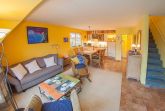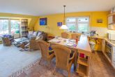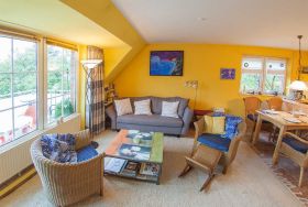 Die schicke Maisonette-Ferienwohnung im ersten Obergeschoss des Vier-Parteienhauses hat ein großes Wohnzimmer mit integrierter Küche mit Essplatz für vier Personen sowie eine hochwertige ausziehbare Couch. Das separate Schlafzimmer hat ein Doppelbett. Zusätzlich zum Duschbad, welches sich separat im Dachgeschoss befindet, gibt es noch ein Gäste-WC.