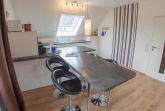 Weiter gibt es ein Schlafzimmer mit zwei Einzelbetten, ein Fenster-Duschbad mit Waschmaschine und im Dachgeschoss ein weiteres Schlafzimmer mit Doppelbett. Die Fenster haben Verdunklungsrollos. Ein Auto-Stellplatz ist direkt vor der Hausanlage vorhanden.