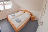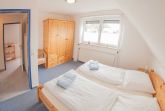 Im Obergeschoss liegt das helle Fensterduschbad mit Waschmaschine und die beiden Schlafräume mit Teppichboden: je ein Zimmer mit Doppelbett und ein Schlafraum mit ausziehbarem Tandembett.