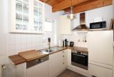 Wohnküche mit Geschirrspüler und Mikrowelle schließt sich an den Wohnraum an. Ein gemütlicher Essplatz,
