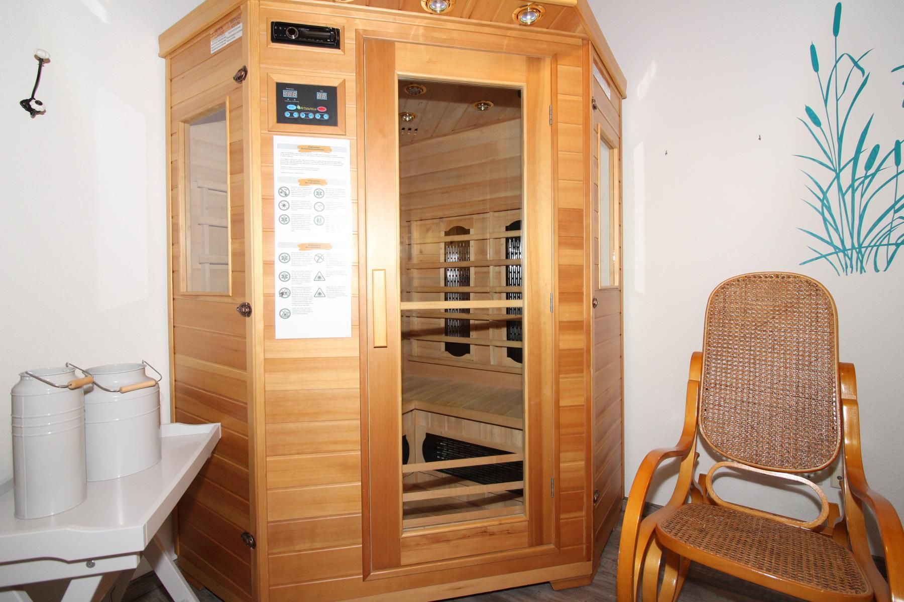 Ein besonderes Highlight ist das Wellnesszimmer im Erdgeschoss. Hier steht eine Infrarotwärmekabine für zwei