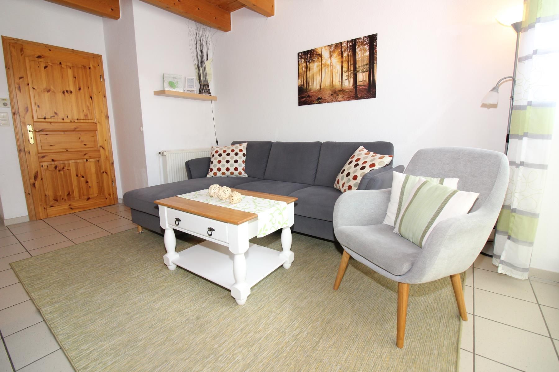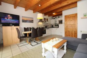 Im Erdgeschoss befindet sich der Wohn- /Essbereich mit gemütlicher Sitzecke und einer Essgruppe für bis zu 6 Personen, Flachbildschirm, und CD-Stereoanlage mit Bluetooth.