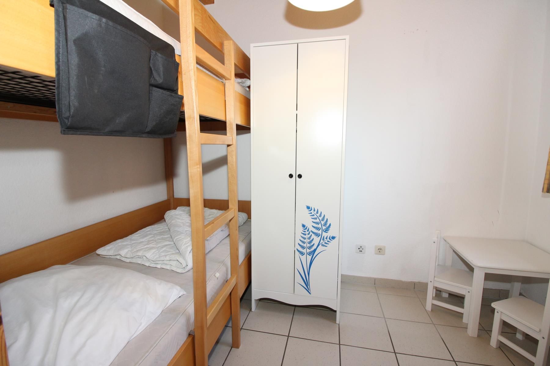 Des Weiteren finden Sie im Erdgeschoss ein Schlafzimmer mit zwei Etagenbetten und Kinderstühlen sowie ein Gäste-WC.