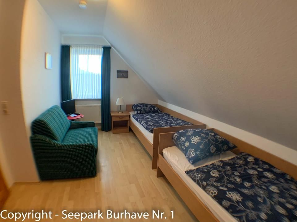Im 1. OG sind zwei Schlafzimmer, eins mit einem Doppelbett und das andere mit zwei Einzelbetten, in diesem Zimmer befindet sich noch ein Schlafsessel der als separater Schlafplatz genutzt werden kann.