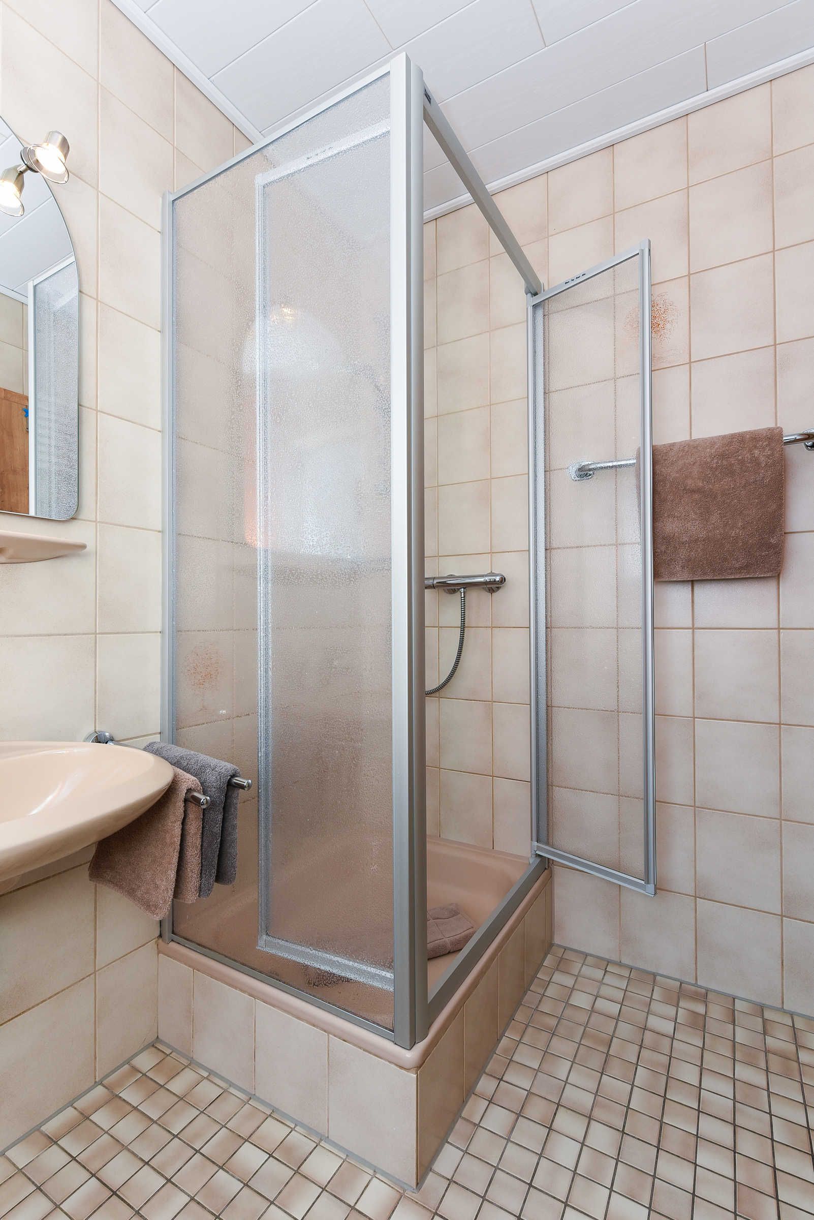Grundfläche ca. 50 Quadratmeter, Wohnraum mit integrierter Küche, Schlafzimmer, Badezimmer mit Dusche, Waschtisch und WC, Erdgeschoss, Terrasse, optimal für 1 bis 2 Personen.