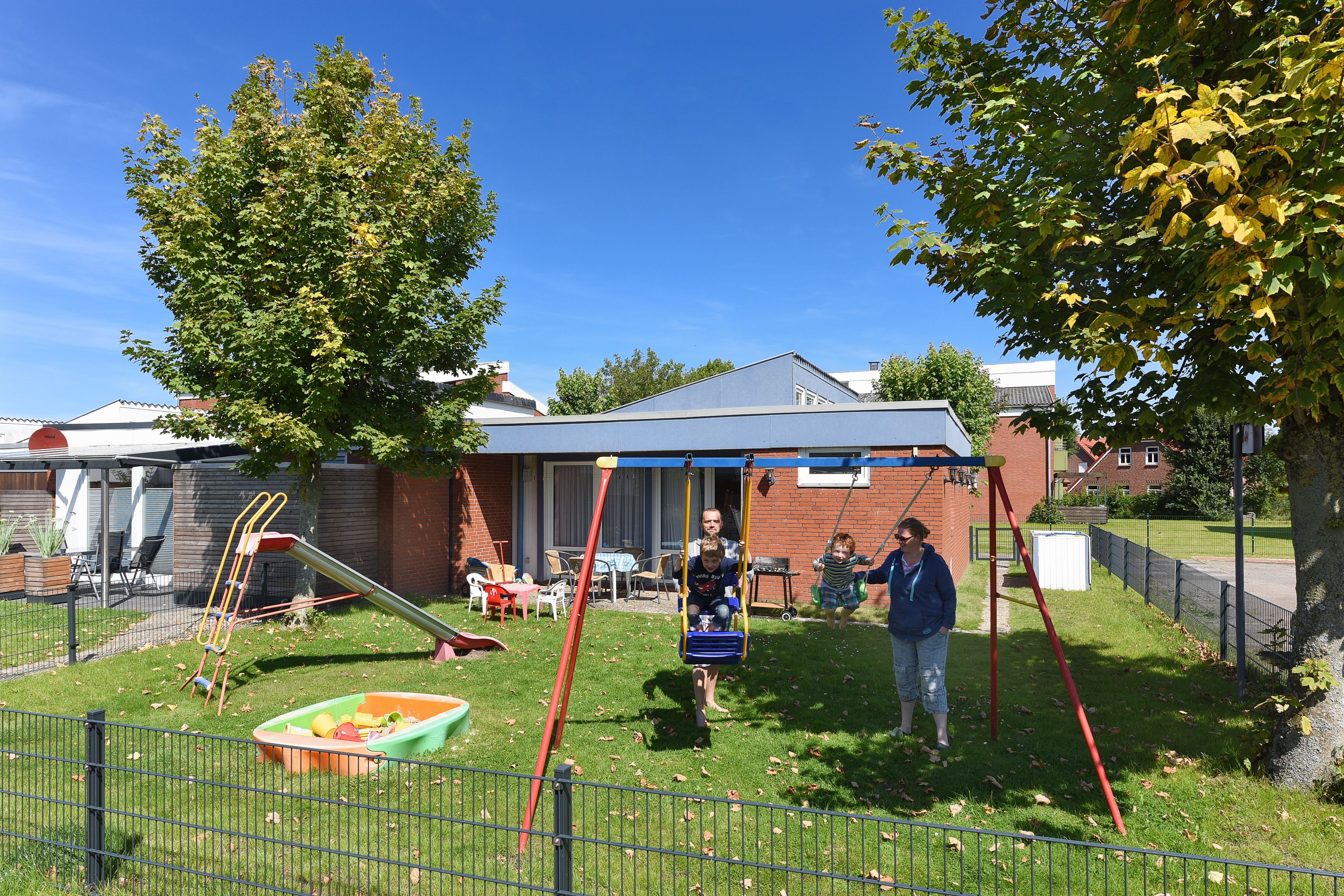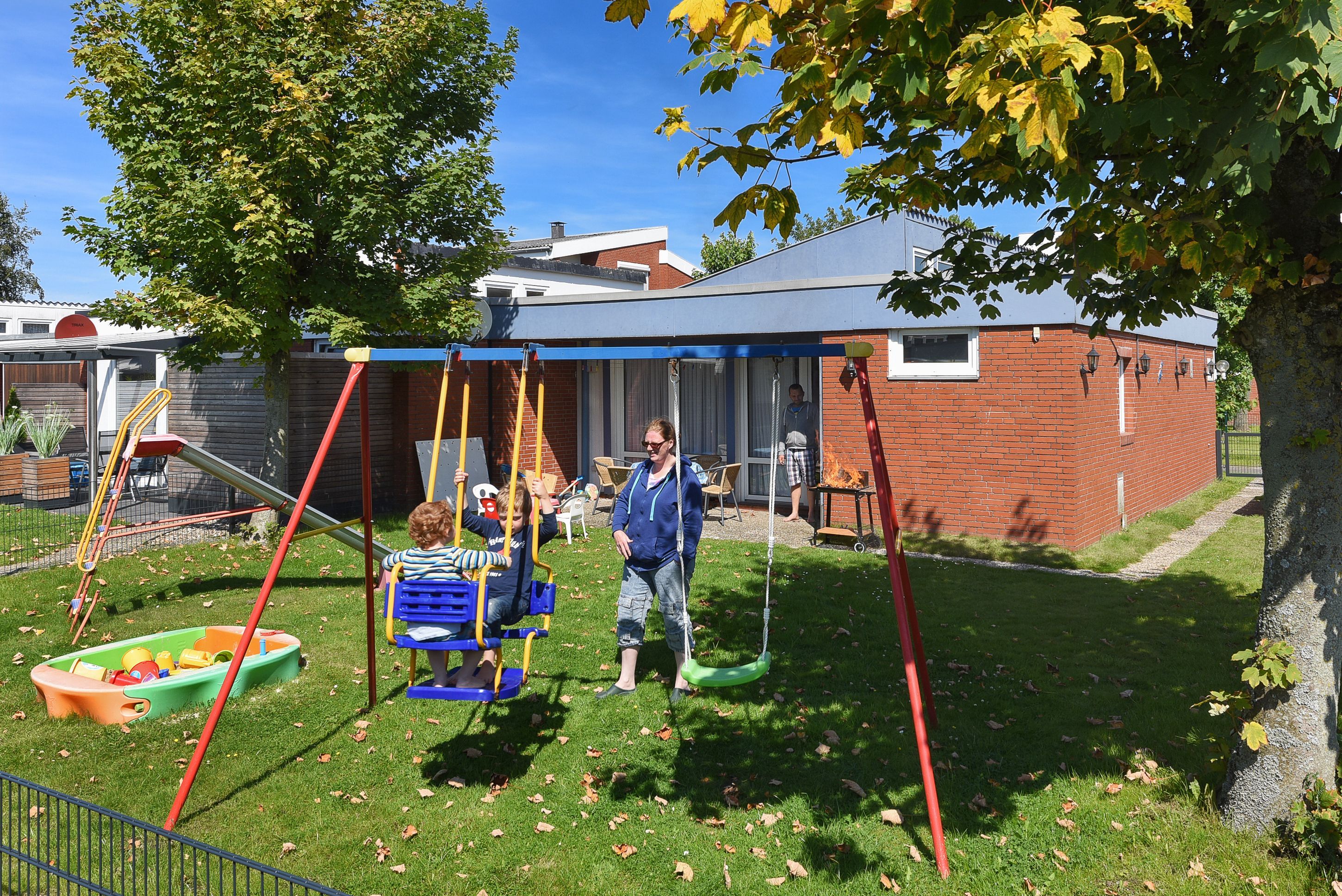 Beide Ferienhäuser verfügen zum Beispiel über eine geschützte teilüberdachte Terrasse und einen schönen Garten mit Spielgeräten für die Kinder. Die Ferienhäuser sind jeweils ca. 55 Quadratmeter groß, sehr preiswert und ideal für den Urlaub von Familien mit 2 bis 4 Personen nebst zusätzlichem Kleinkind oder natürlich ebenso gut auch für Paare geeignet.