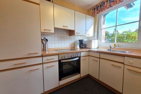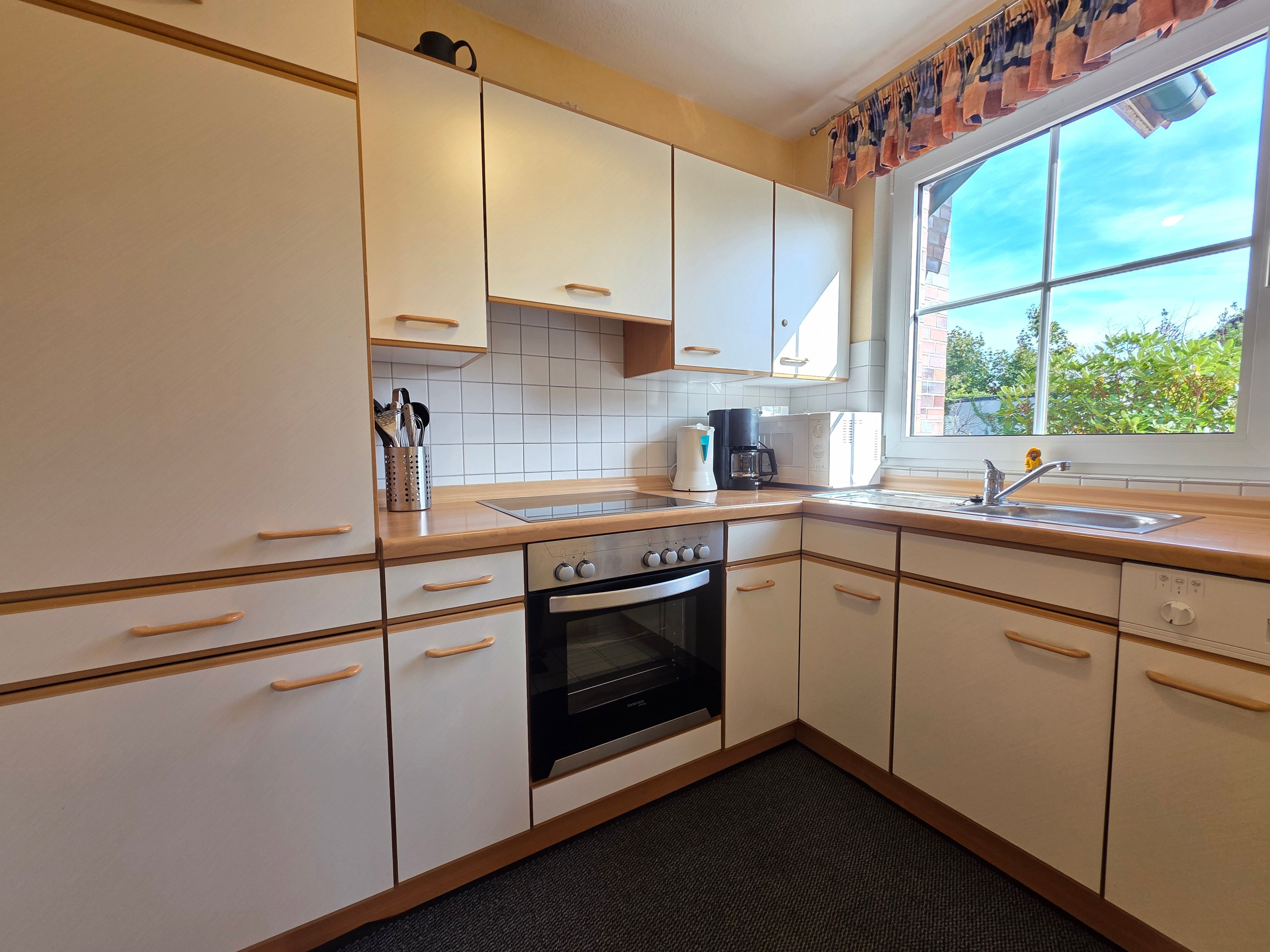 komplett eingerichtet, Spülmaschine, Elektroherd mit 4 Platten und Backofen, Kühlschrank mit Gefrierfach, Kaffeemaschine, Toaster usw.