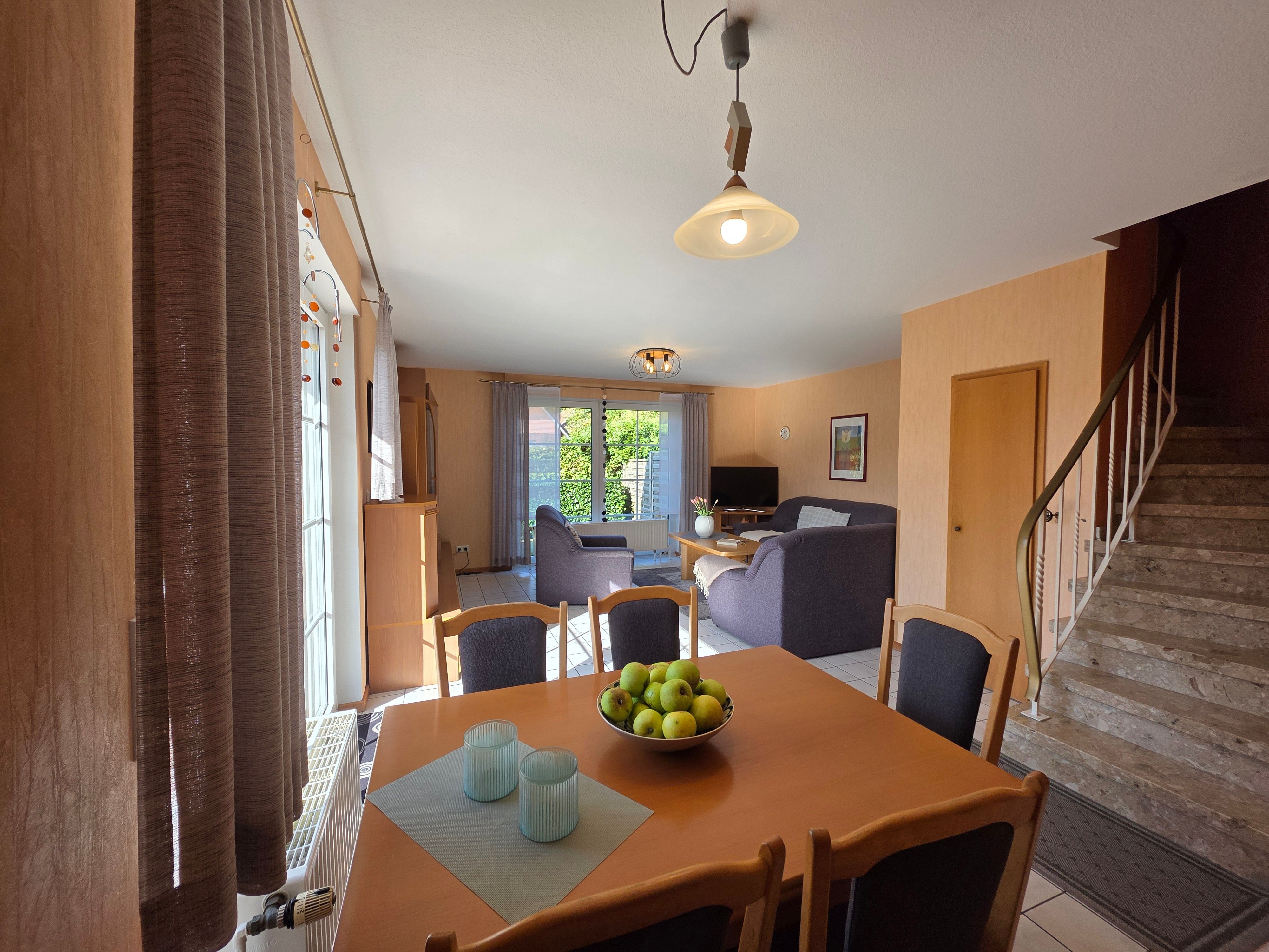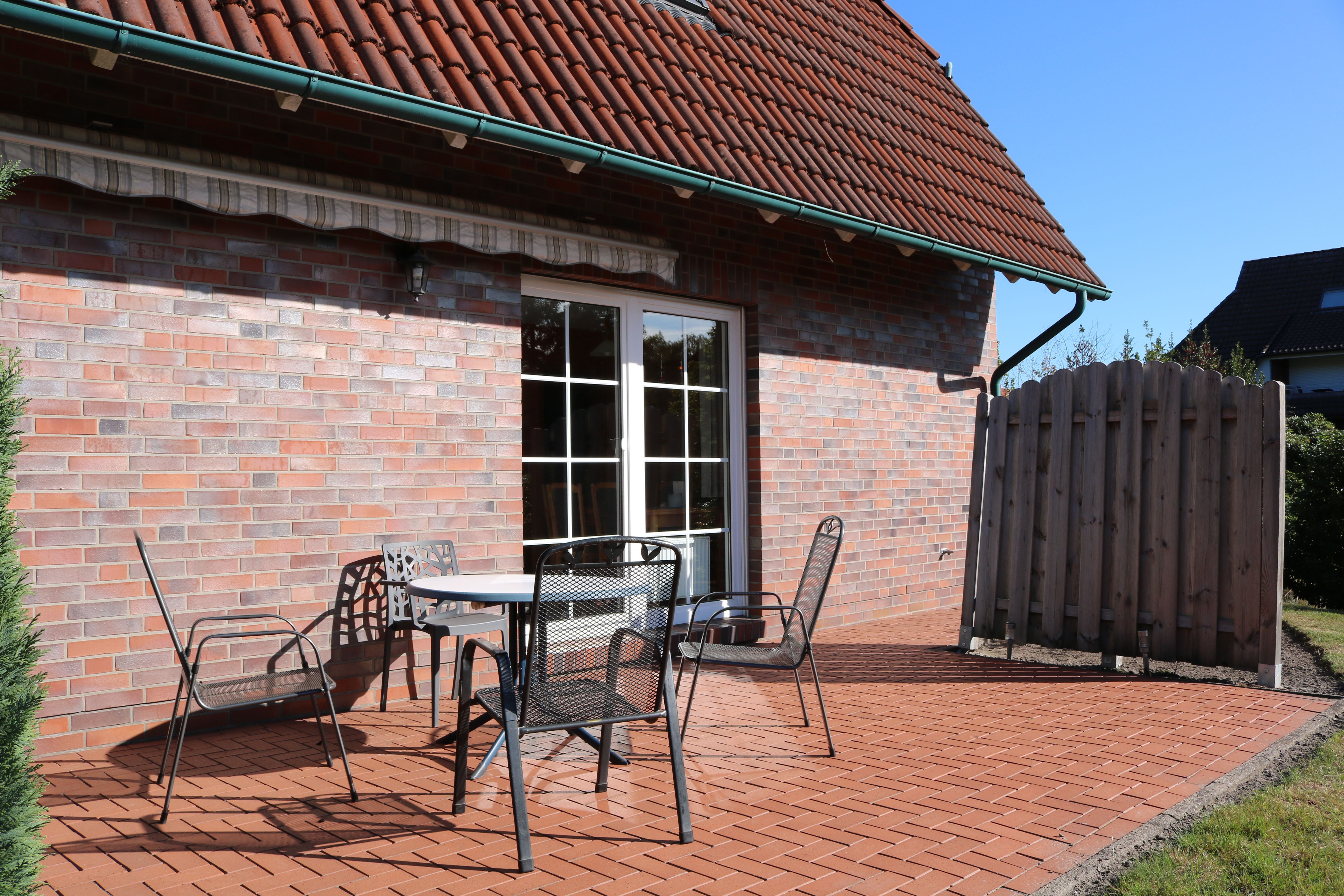 Das Haus Nölker hat einen schönen Garten mit Südterrasse. Es gibt einen überdachten Carport.