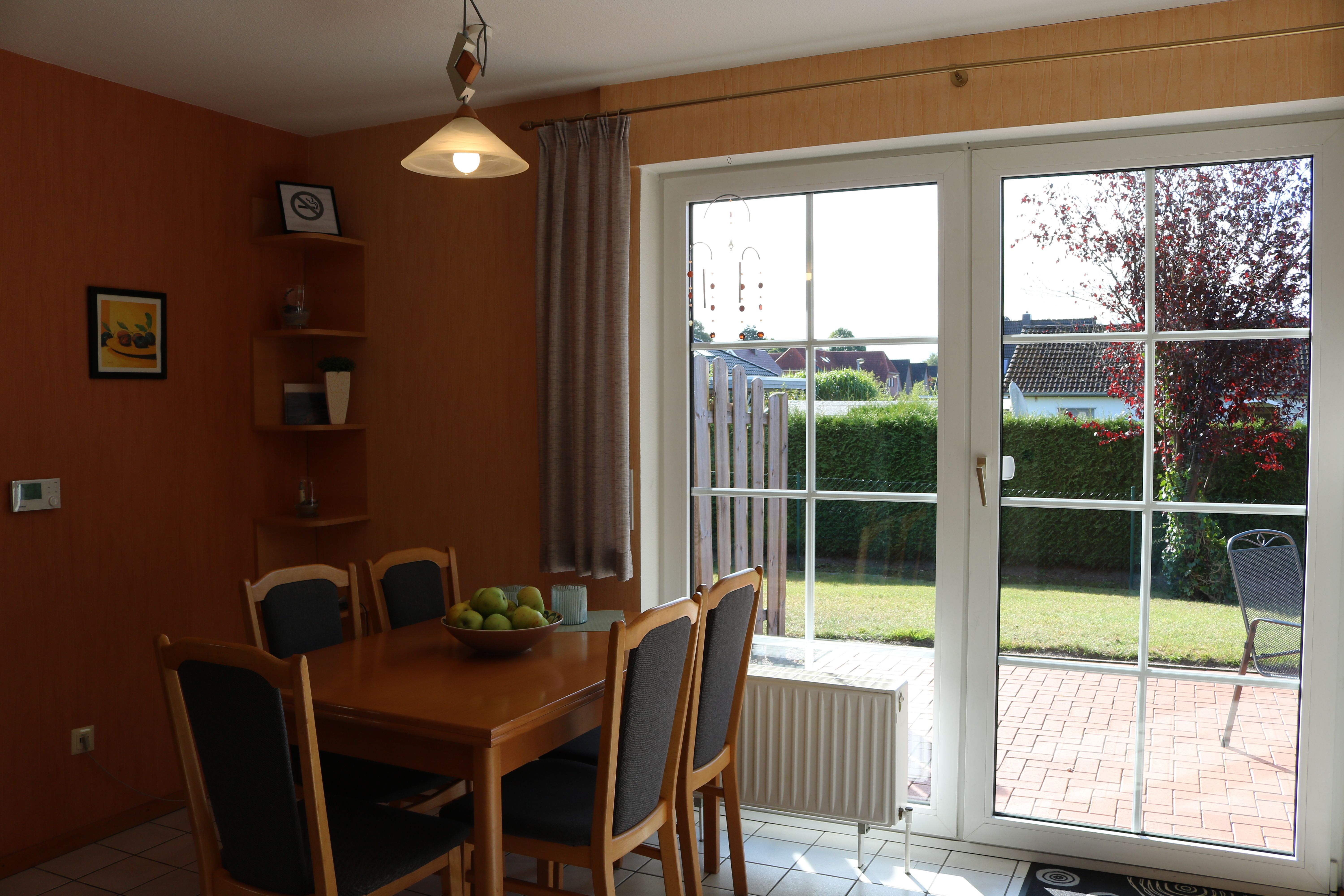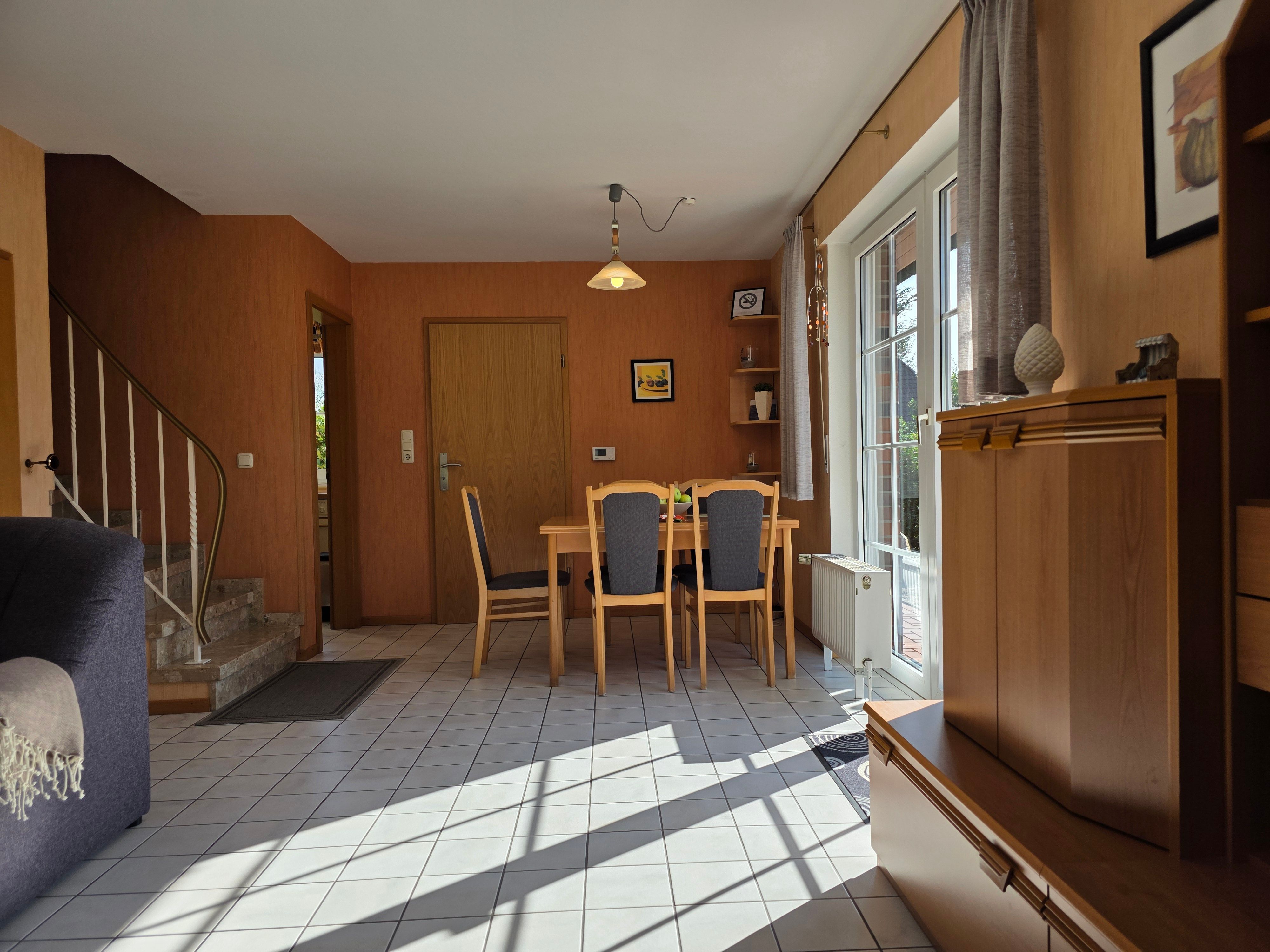 Dangast Ferienhaus Nölker, Hollwert 10d. Ein helles, modernes, sehr gepflegtes Reihenendhaus für 2-4 Personen, ca. 75 qm in ruhiger, aber zentraler Lage, am Ende einer Sackgasse. Zu Fuß erreichen Sie in 5 bis 10 Minuten den Strand, das Meerwasserquellbad, das Weltnaturerbeportal, den kleinen Supermarkt, Kinderspielplätze usw.