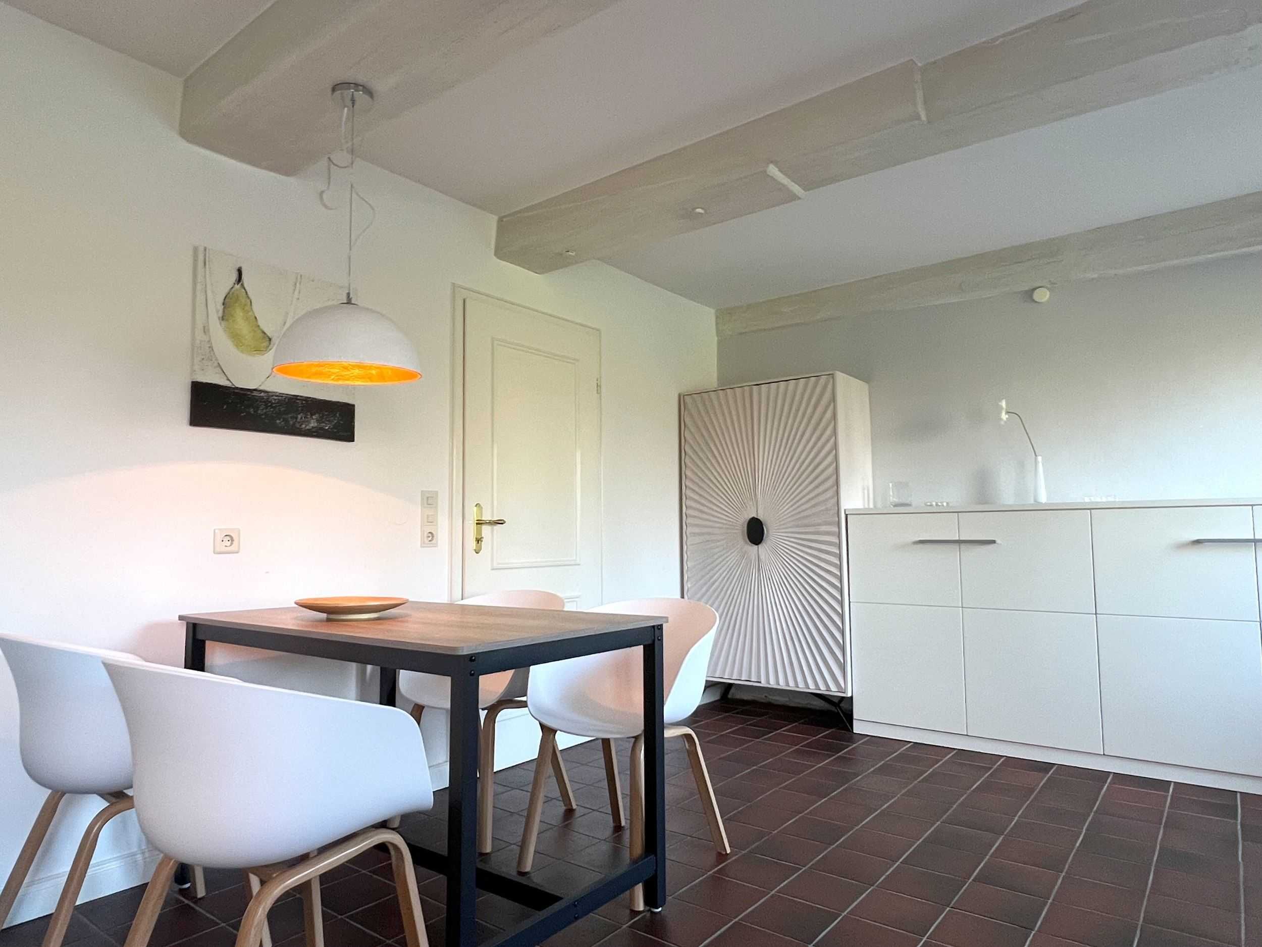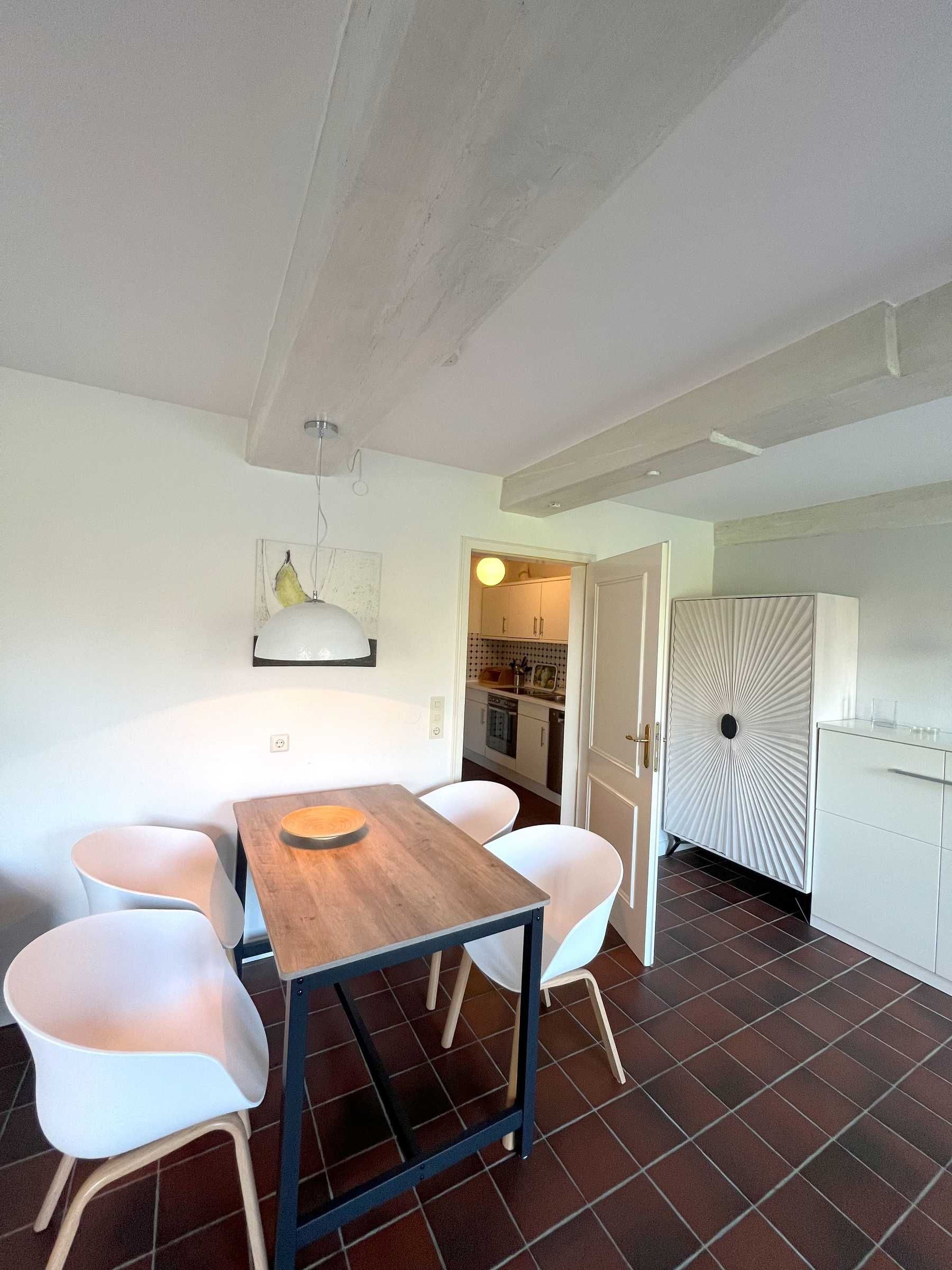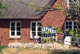 Genießen Sie Ihren Urlaub in unserer gemütlichen und komfortablen Bauernhauswohnung für bis zu 3 Personen. Es erwartet Sie original friesisches Ambiente unter einem Reetdach. Das über 100 Jahre alte Bauernhaus liegt eingebettet in viel Grün. Auf der zur Wohnung gehörenden Terrasse, ausgestattet mit Strandkorb und Gartenmöbeln, können Sie wunderbar entspannen und die Seele baumeln lassen. Die Westlage mit Blick auf die große Obstwiese lädt dazu ein. Im Eingangsbereich finden Sie eine Diele mit Garderobe vor. Weiter geht es durch die voll ausgestattete Küche in den lichtdurfluteten Wohn- und Essbereich. Hier finden Sie ein zusätzliches Schrankbett, so dass die dritte Person genügend Platz hat. Moderne friesische Behaglichkeit findet sich in der geschmackvollen Einrichtung und mit viel Liebe zum Detail wieder. Einen guten Schlaf bietet Ihnen das Doppelbett im separaten Schlafzimmer. Das geräumige Duschbad verfügt über eine bodengleiche Dusche. Freuen Sie sich auf wundervolle und ruhige Urlaubstage bei uns.