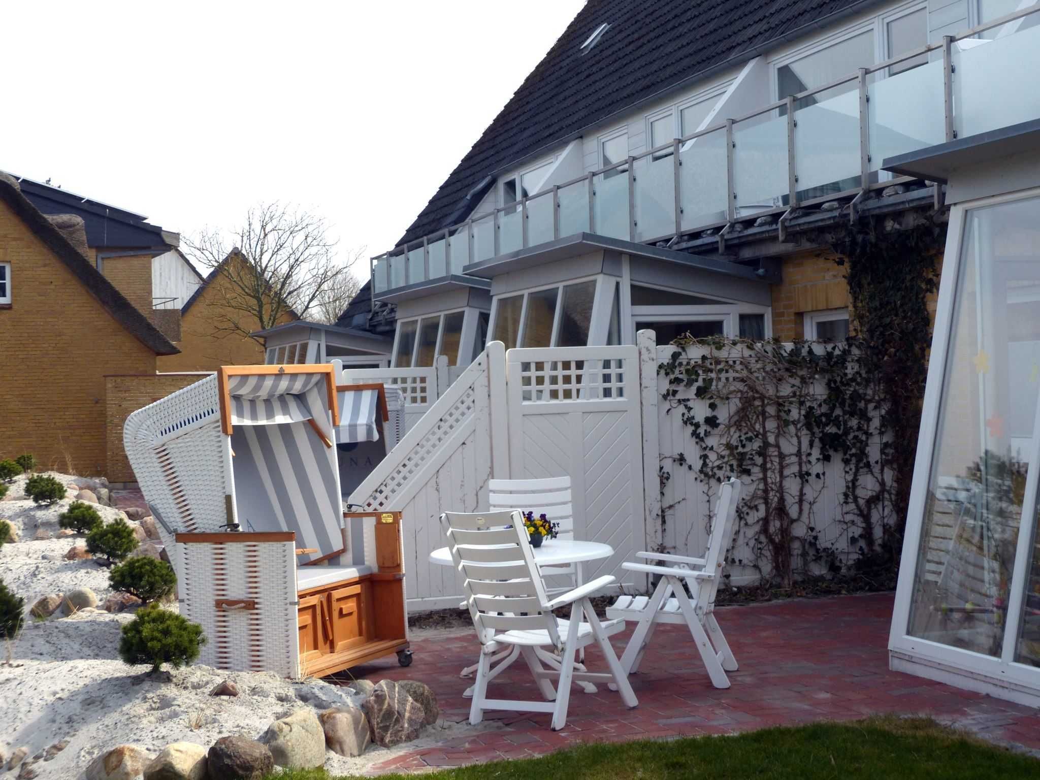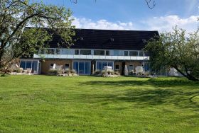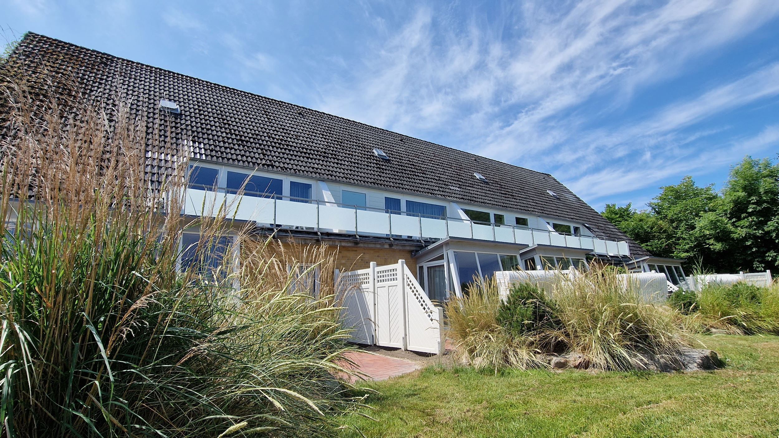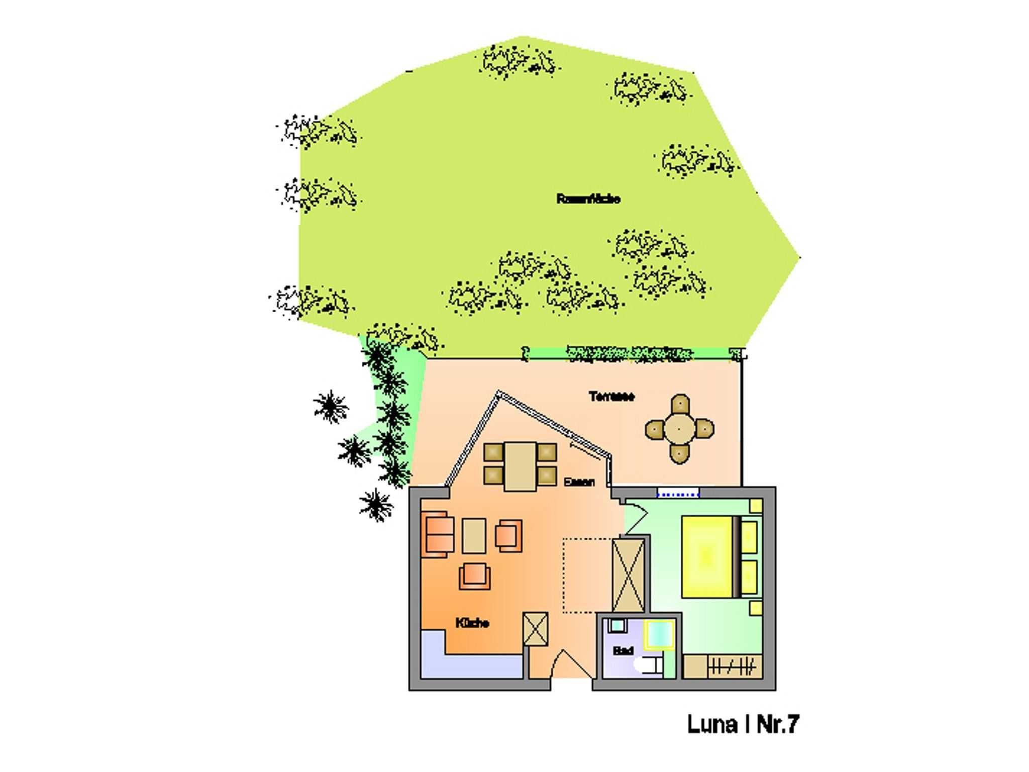 Die Wohnung 7 in der Anlage Luna I liegt im Erdgeschoss des Hauses. Sie ist 55qm groß und geeignet für bis zu 4 Personen. Der Eingangsbereich ist mit einer Garderobe ausgestattet. Das Schlafzimmer verfügt über ein Doppelbett (180x200cm, getrennte Matratzen). Weitere Personen können ein Schrankbett (180x200cm, Matratze nicht durchgehend) im Wohnbereich nutzen. Im Weiteren ist ein Duschbad mit Waschbecken und WC vorhanden. Der Wohn-und Essraum verfügt über eine offene integrierte Einbauküche, einen Esstisch und Sitzbereich mit Fernseher. W-Lan steht kostenlos zur Verfügung. Die Einrichtung ist modern und hochwertig. Der vorgelagerte Wintergarten sorgt für eine angenehme Helligkeit und ermöglicht einen Blick in die wunderschöne Grünanlage. Vom Wohnbereich aus gelangen Sie ebenerdig auf die südlich ausgerichtete Terrasse, die mit Gartenmöbeln und einem Strandkorb ausgestattet ist. Von hier aus blicken Sie in den Garten und auf die alten Obstbäume.