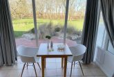 Helle, strandnahe Ferienwohnung in St. Peter-Ording im Erdgeschoß mit Terrasse mit Blick in den Obstgarten für 2 Personen.