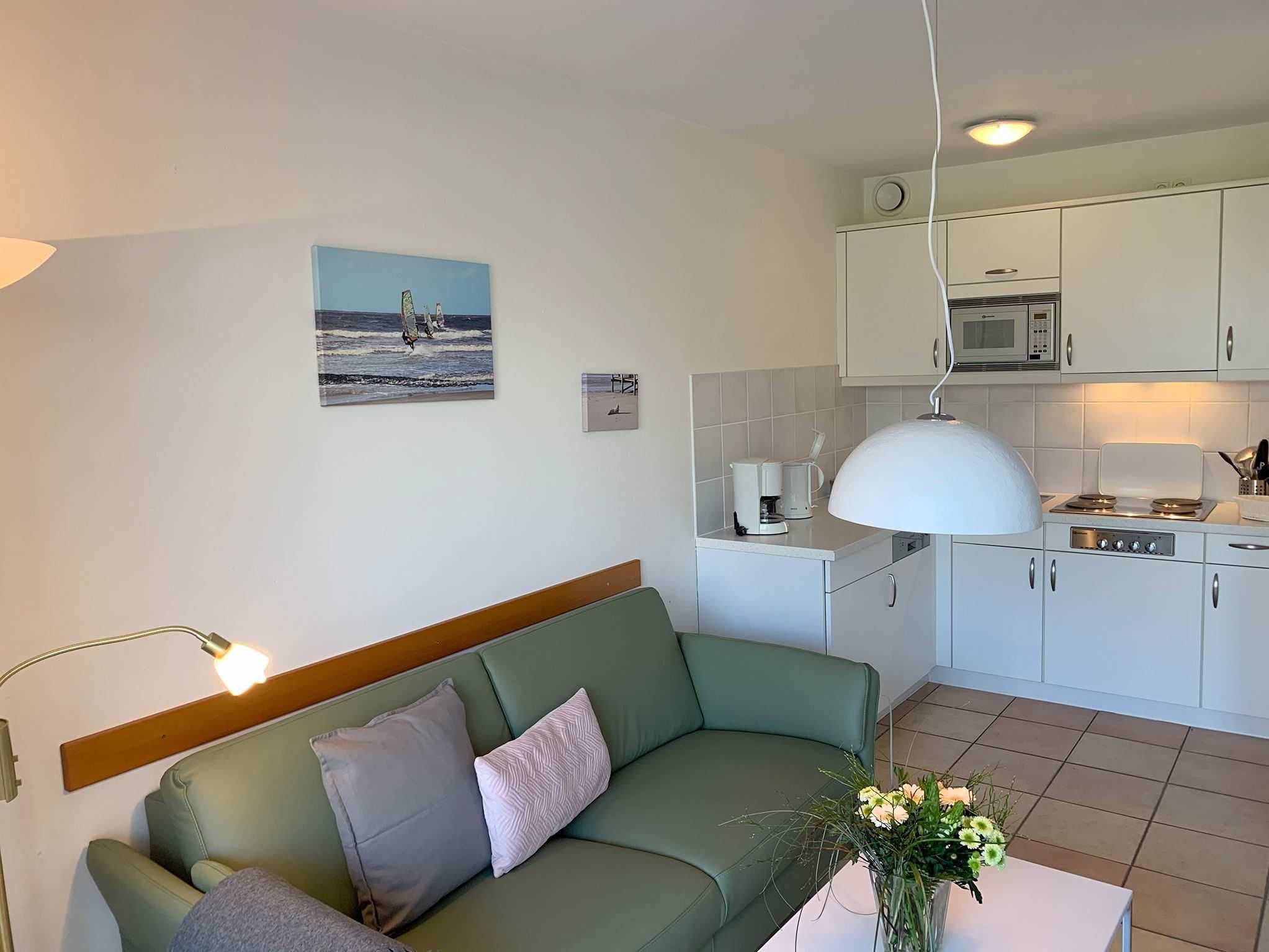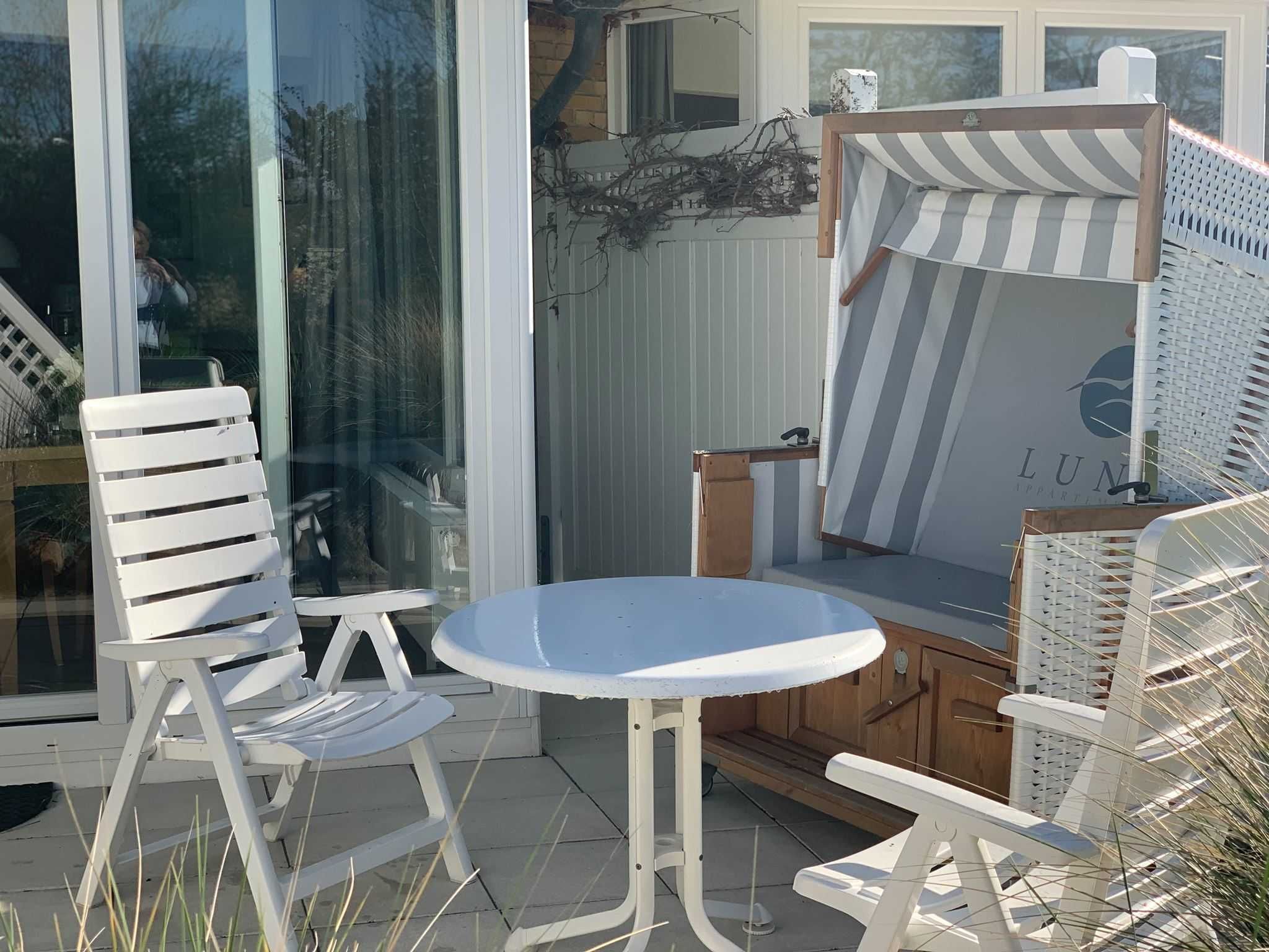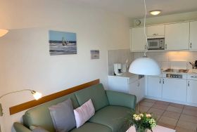 Die Wohnung 6, im Haus Luna I, liegt im Erdgeschoß und ist für 1 - 2 Personen ein herrliches Urlaubsquartier. Im Eingangsbereich finden Sie eine Garderobe und 1 Duschbad mit WC und Waschbecken. Der gemütliche Wohn-Essbereich verfügt über eine offene, umfangreich ausgestattete Küche, in der auch das Kochen im Urlaub Spaß macht. Der Essbereich befindet sich im hellen, vorgelagerten Wintergarten, wo Sie einen direkter Zugang zur Terrasse mit Strandkorb und Gartenmöbeln haben. Hier lässt es sich wunderbar in guter Nordseeluft entspannen. Erholsamen Schlaf bekommen Sie im Schlafzimmer mit 2 Einzelbetten (90x200cm).