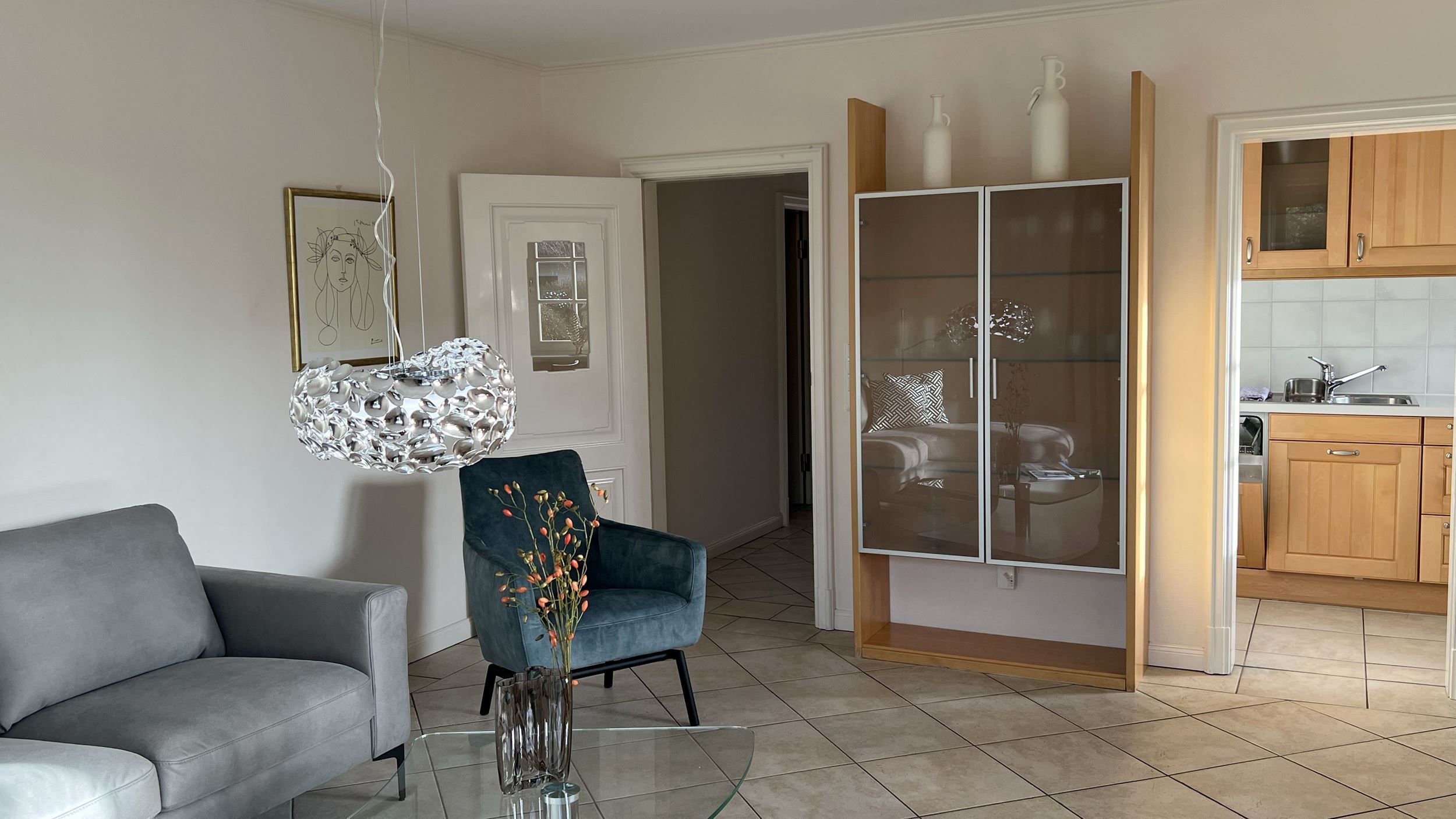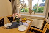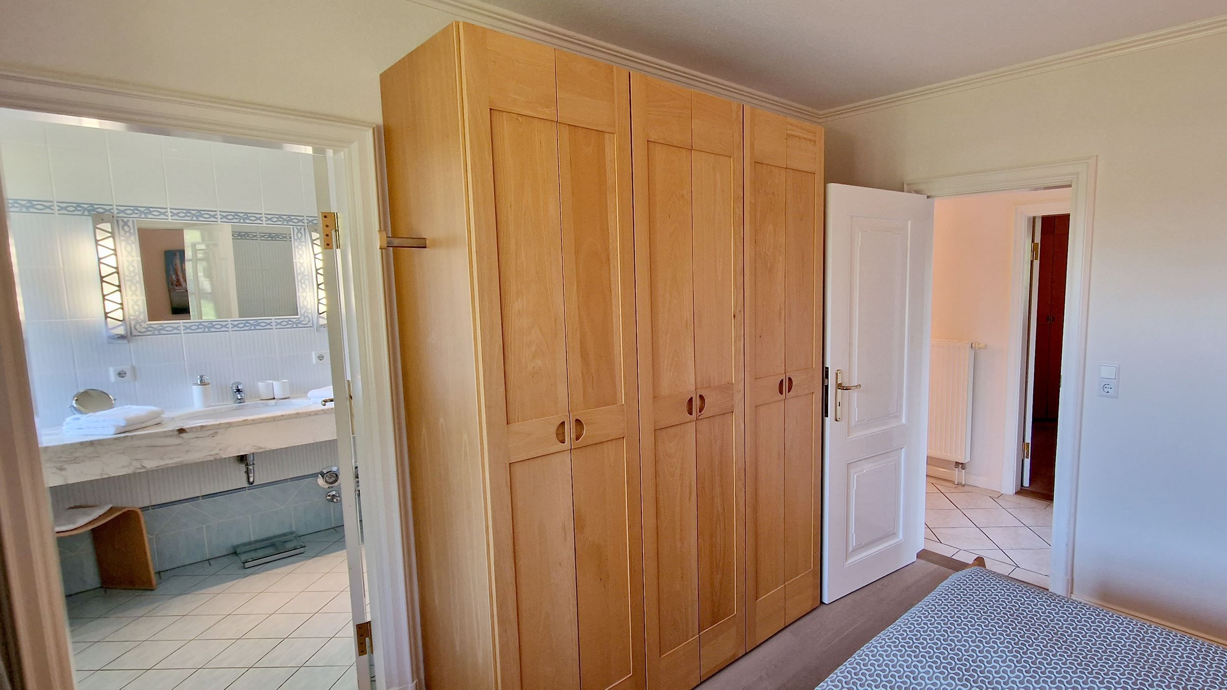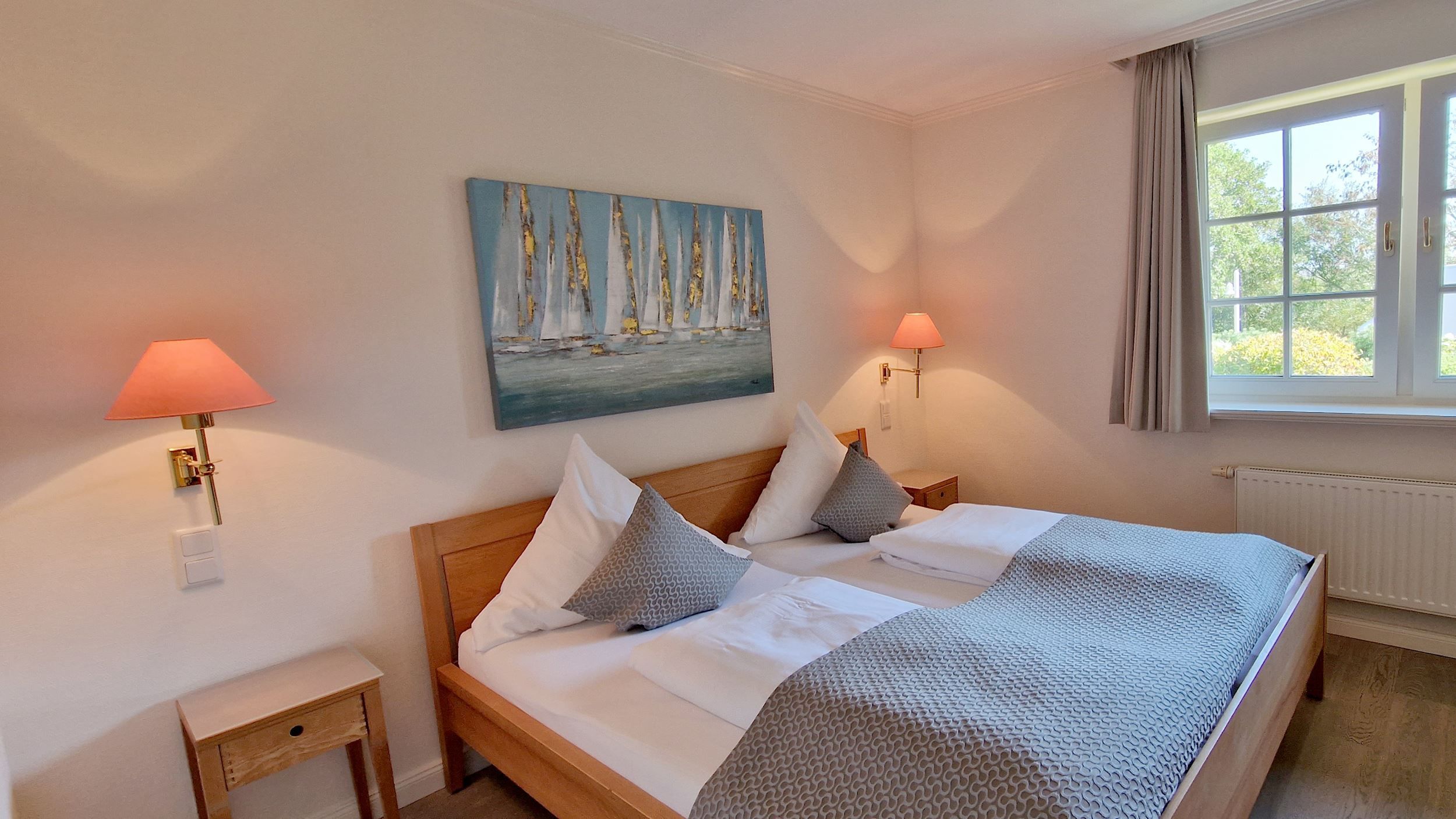 Die 85 qm große Ferienwohnung ist für 4 Pers. geplant und teilt sich wie folgt auf: Eingangsbereich; Eingangsdiele mit Garderobe; großzügiger Wohn-Essbereich mit direktem Zugang auf eine große, durch Friesenwälle und Gehölze abgeschirmte Terrasse mit Gartenmöbeln und einem Strandkorb. Zwei Schlafzimmer mit Doppelbetten, zwei Duschbäder/WC. Separate Küche. Im Untergeschoss des mittleren Einganges befindet sich eine Gemeinschaftssauna (Ruheraum, verschiede Duschen, Fußbäder) ,Fitnessraum, Tischtennis. Im Außenbereich: ein Spielplatz für die Kleinsten, Stellplatz, Fahrradständer.