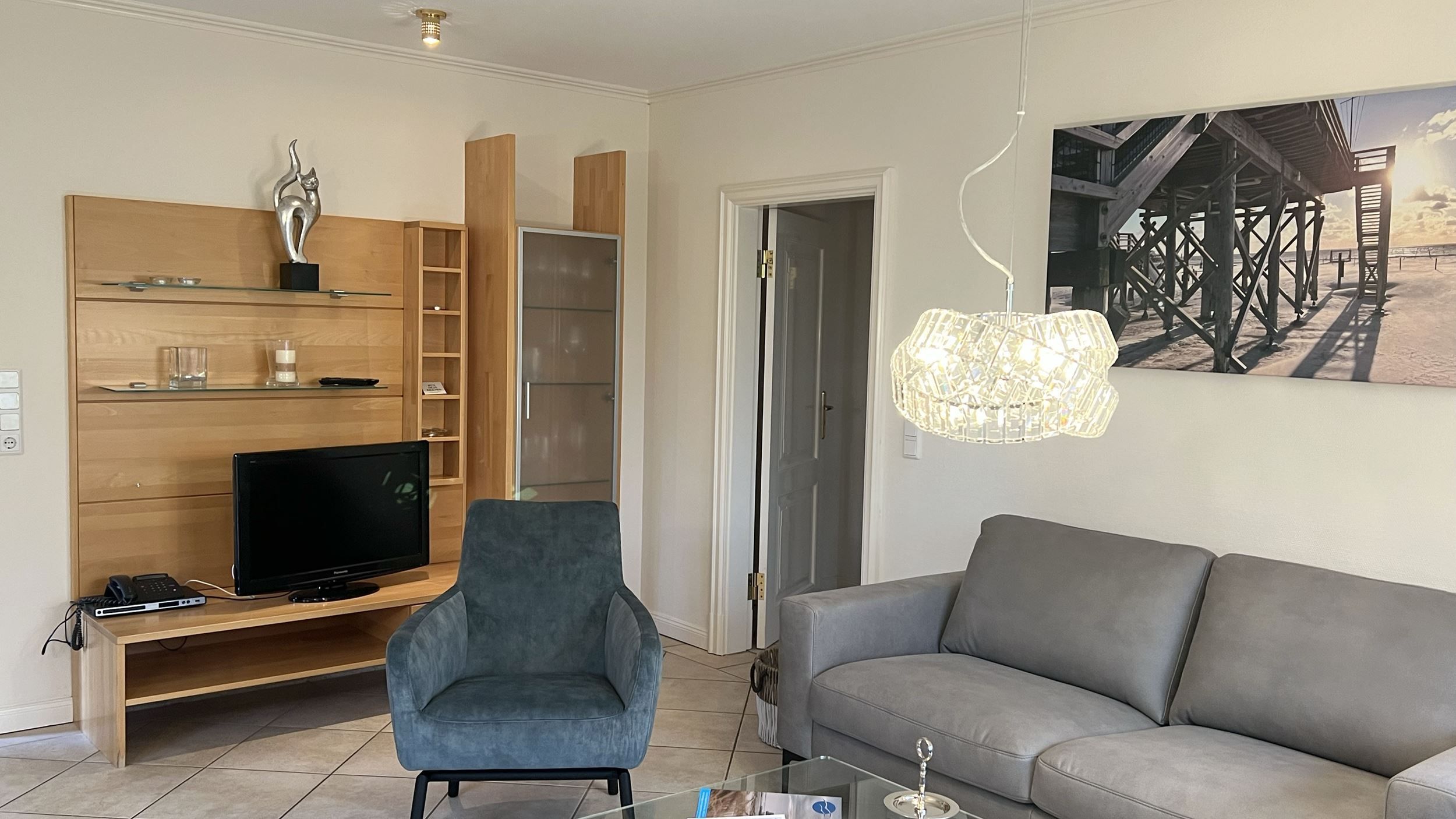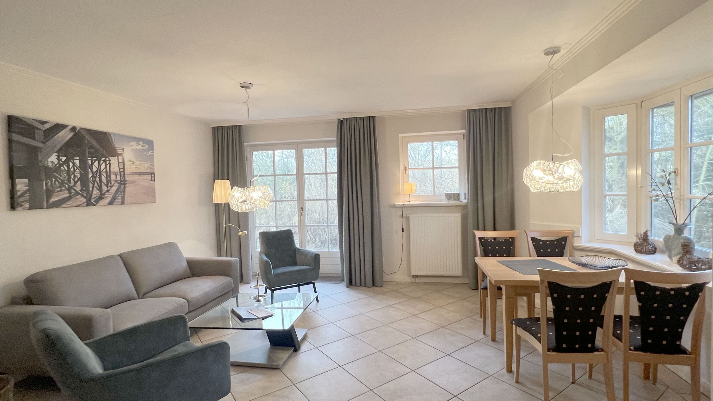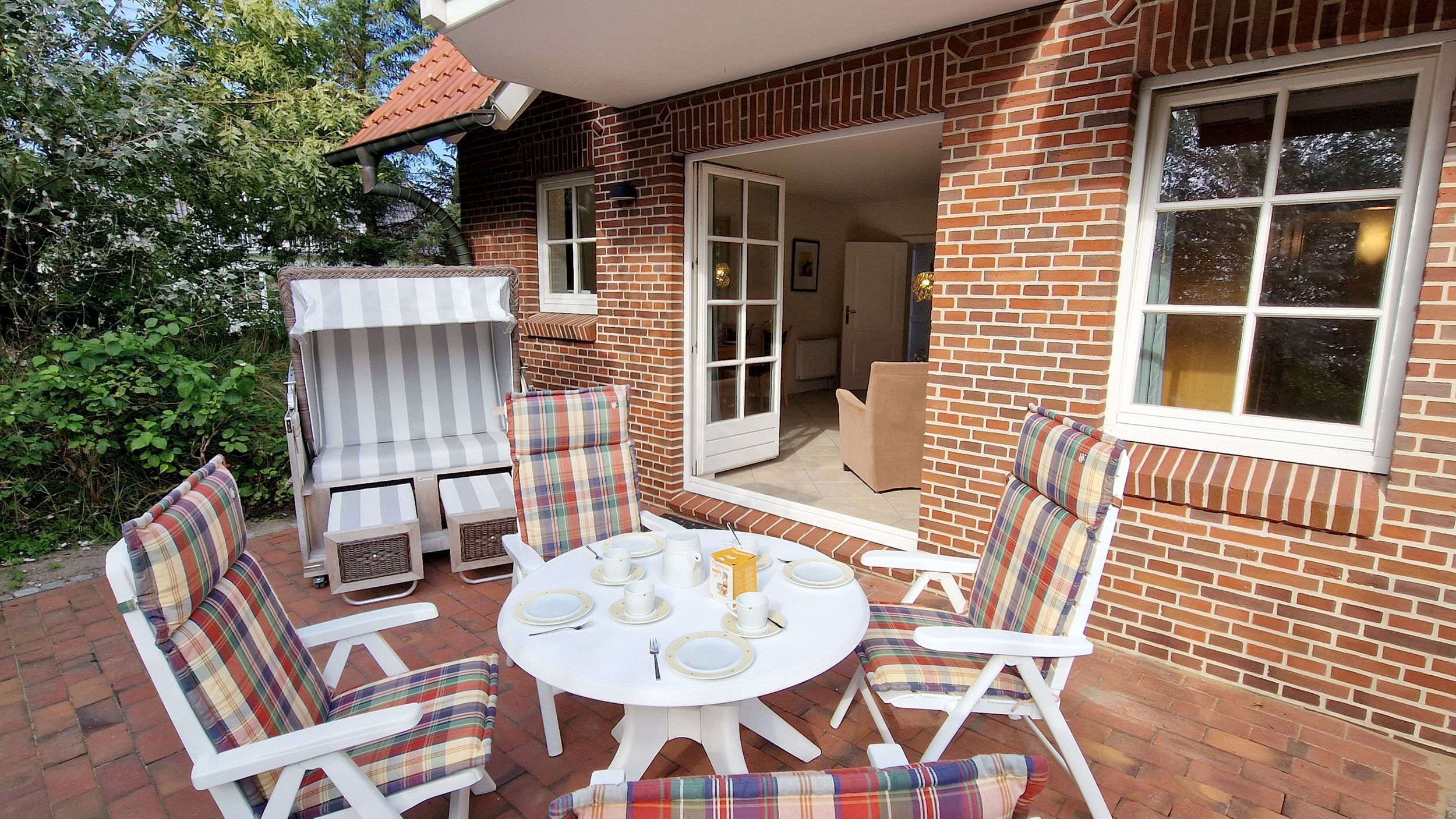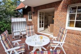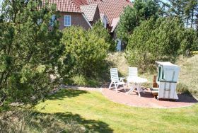 Die 75 qm große Ferienwohnung ist für 4 Pers. geplant und teilt sich wie folgt auf : Eingangsbereich;Eingangsdiele mit Garderobe; großzügiger Wohn-Essbereich mit direktem Zugang auf eine große, durch Friesenwälle und Gehölze abgeschirmte, Terrasse mit Gartenmöbeln und einem Strandkorb. Zwei Schlafzimmer mit Doppelbetten, zwei Duschbäder/WC. Separate Küche. Im Untergeschoss des mittleen Einganges befindet sich eine Gemeinschaftssauna Ruheraum, verschiedene Duschen, Fußbäder, Solarium, Fitnessraum, Tischtennis. Im Außenbereich:ein Spielplatz für die Kleinsten, Stellplatz, Fahrradständer
