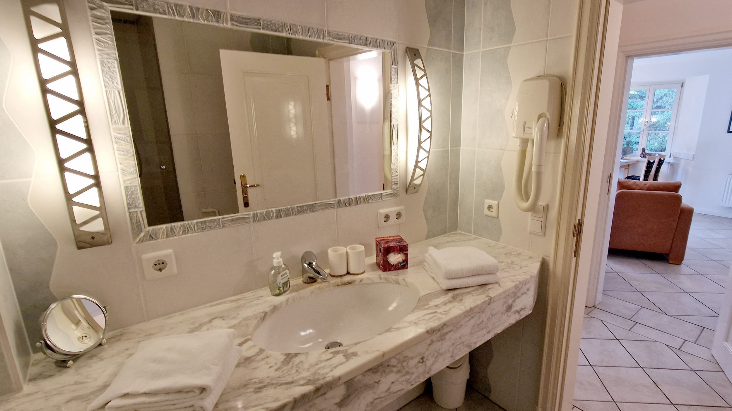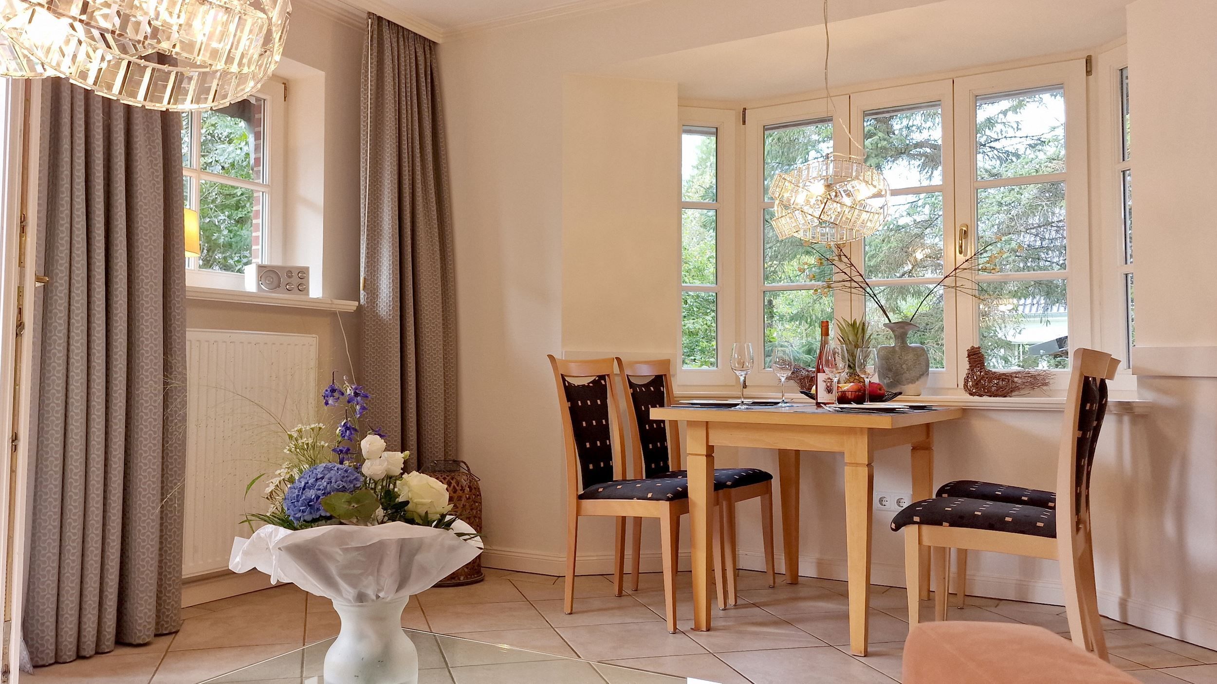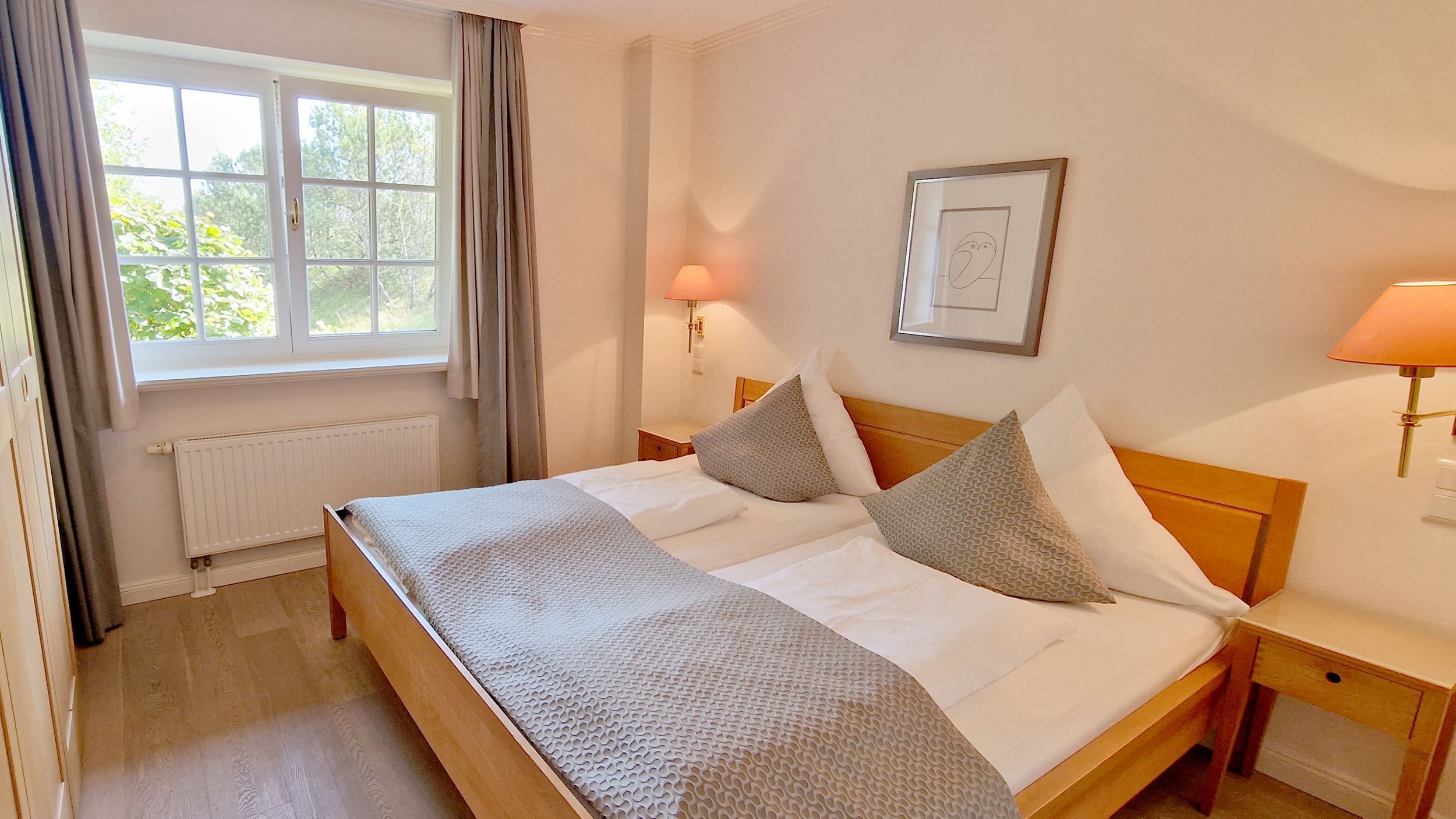 Die 75 qm große Ferienwohnung ist für 4 Pers. geplant und teilt sich wie folgt auf : Eingangsbereich;Eingangsdiele mit Garderobe; großzügiger Wohn-Essbereich mit direktem Zugang auf eine große, durch Friesenwälle und Gehölze abgeschirmte, Terrasse mit Gartenmöbeln und einem Strandkorb. Zwei Schlafzimmer mit Doppelbetten, zwei Duschbäder/WC. Separate Küche. Im Untergeschoss des mittleen Einganges befindet sich eine Gemeinschaftssauna Ruheraum, verschiedene Duschen, Fußbäder, Solarium, Fitnessraum, Tischtennis. Im Außenbereich:ein Spielplatz für die Kleinsten, Stellplatz, Fahrradständer