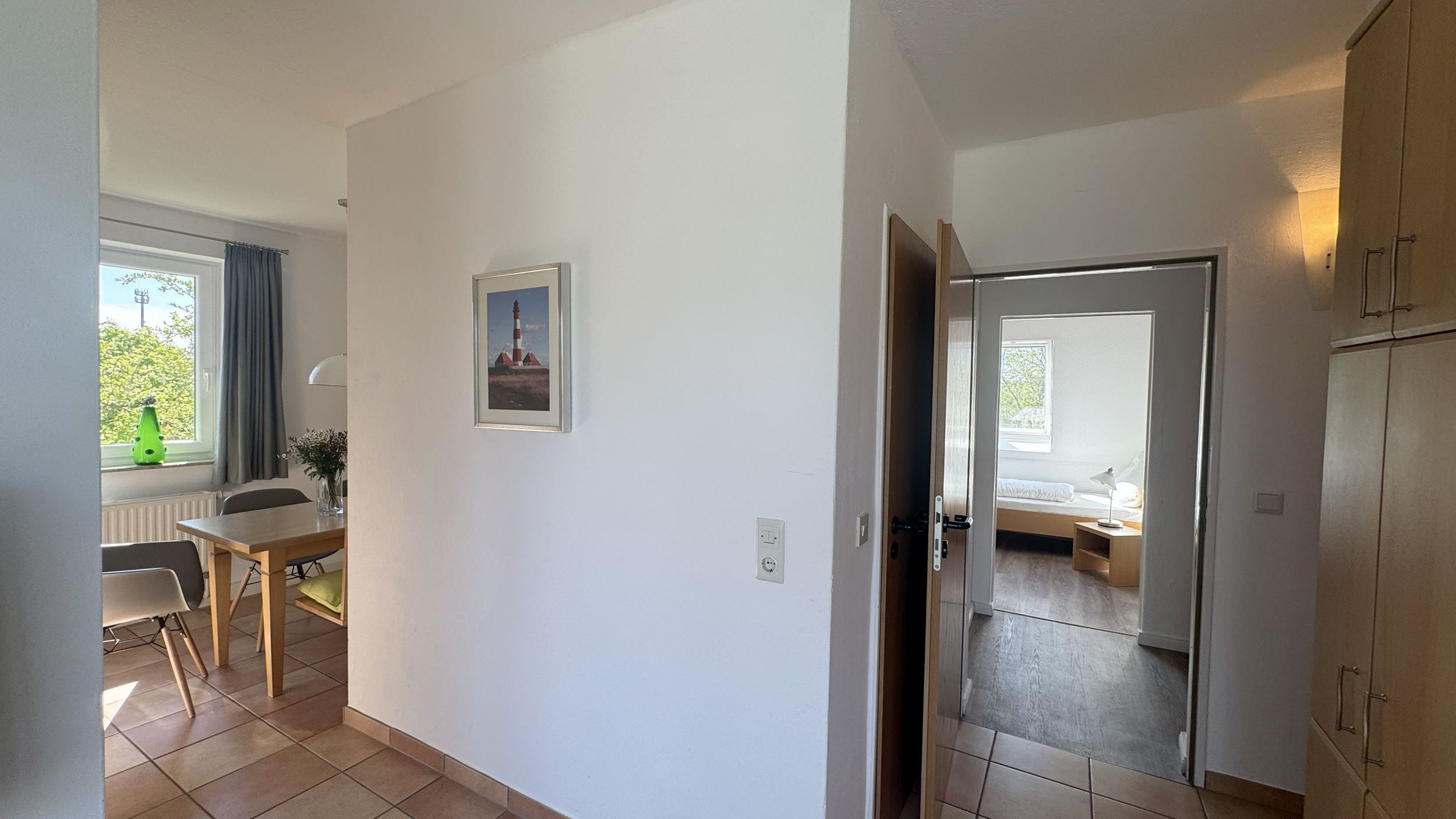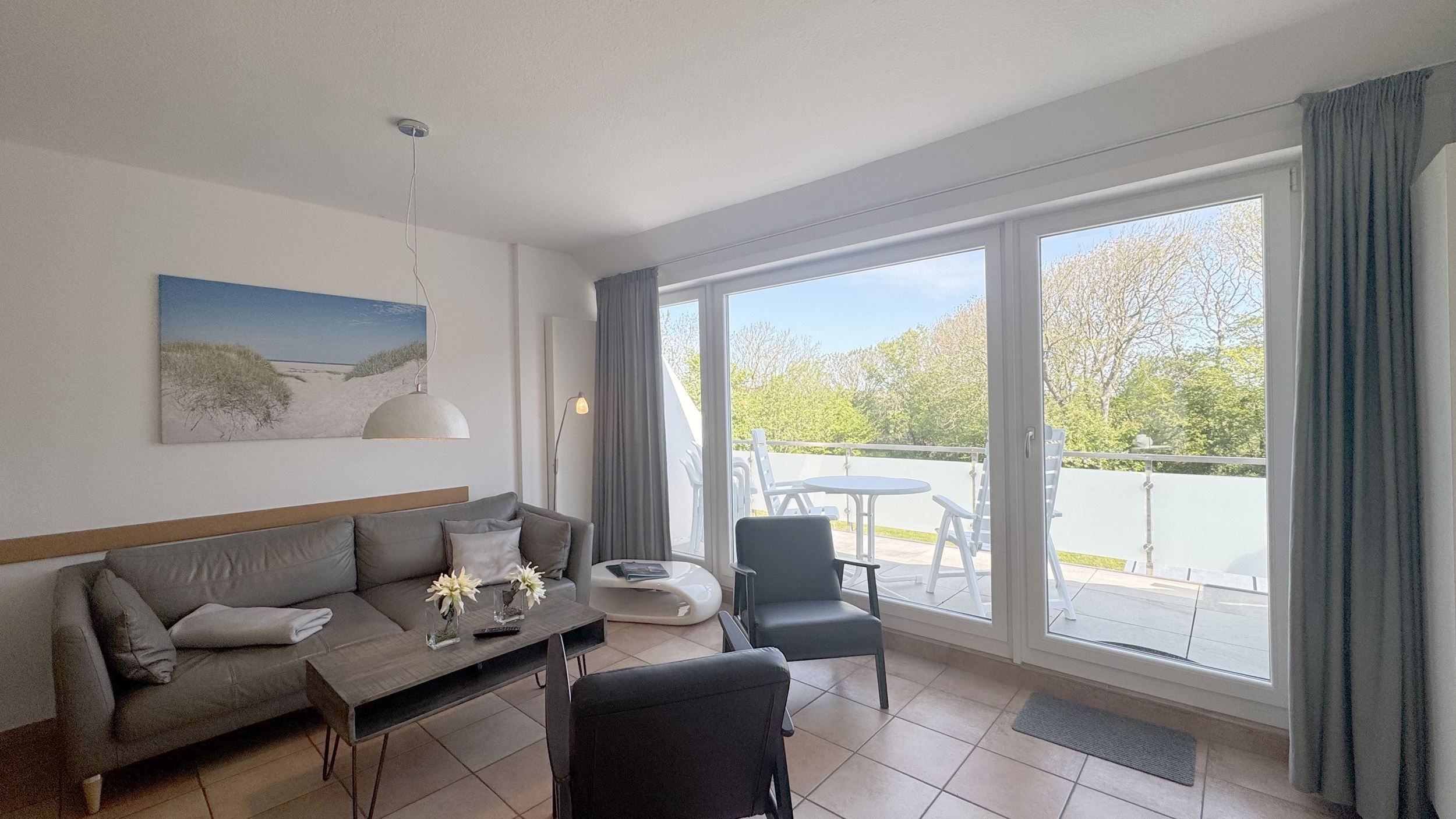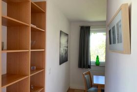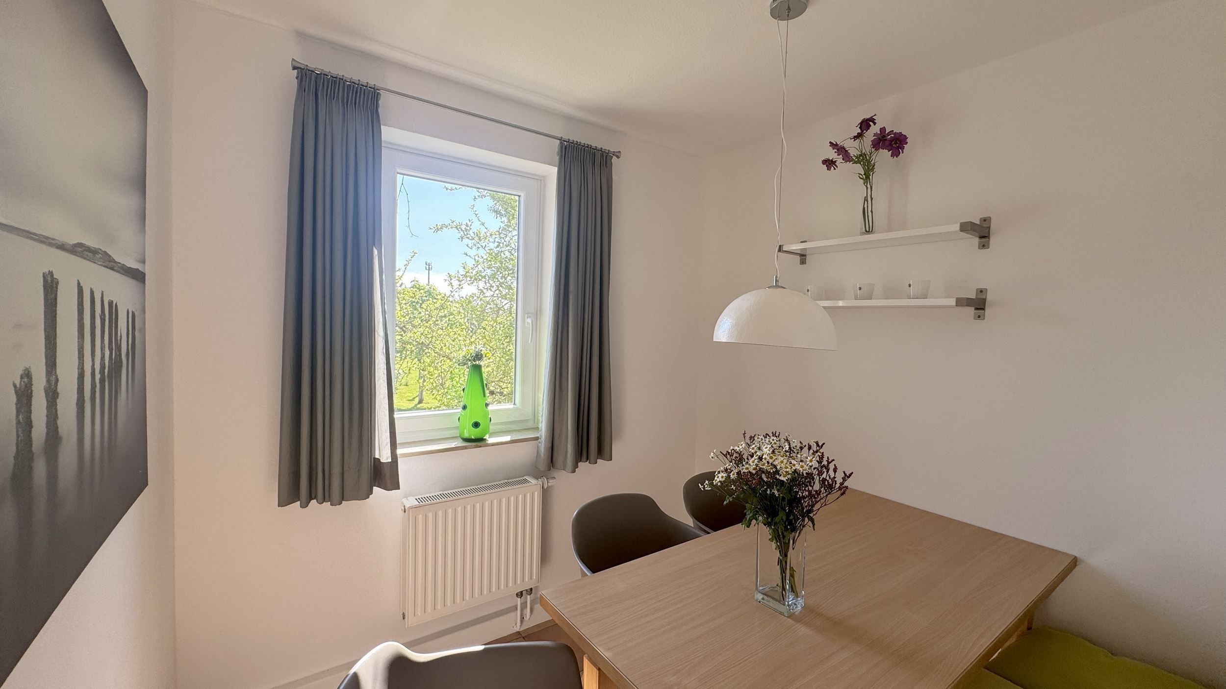 Die Wohnung 13 in der Anlage Luna I liegt im Obergeschoss des Hauses. Sie ist 75qm groß und geeignet für bis zu 5 Personen. Der Eingangsbereich ist mit einer Garderobe ausgestattet. Es gibt zwei Schlafzimmer mit Doppelbetten (180x200cm, getrennte Matratzen). In einem der beiden Schlafzimmer befindet sich zusätzlich ein Einzelbett für eine fünfte Person. Des weiteren sind zwei Duschbäder mit Waschbecken und WC vorhanden. Der Wohn-Essbereich verfügt über eine offene, umfangreich ausgestattete Küche. Im Wohn-Esszimmer befinden sich ein Esstisch sowie etwas separiert davon ein großzügiger, gemütlicher Sitzbereich mit Fernseher. WLAN steht kostenlos zur Verfügung. Die Einrichtung ist modern und hochwertig. Die gesamte Wohnung ist durch ihren Bodenbelag mit Designerparkett und Fliesen geeignet für Allergiker. Vom Wohnbereich aus gelangen Sie auf den Balkon der Wohnung, der mit Gartenmöbeln ausgestattet ist und einen Blick in die wunderschöne Grünanlage mit Obstwiese bietet.