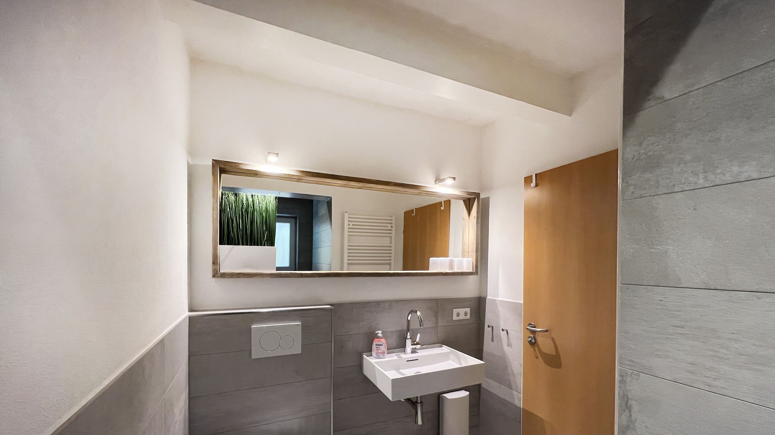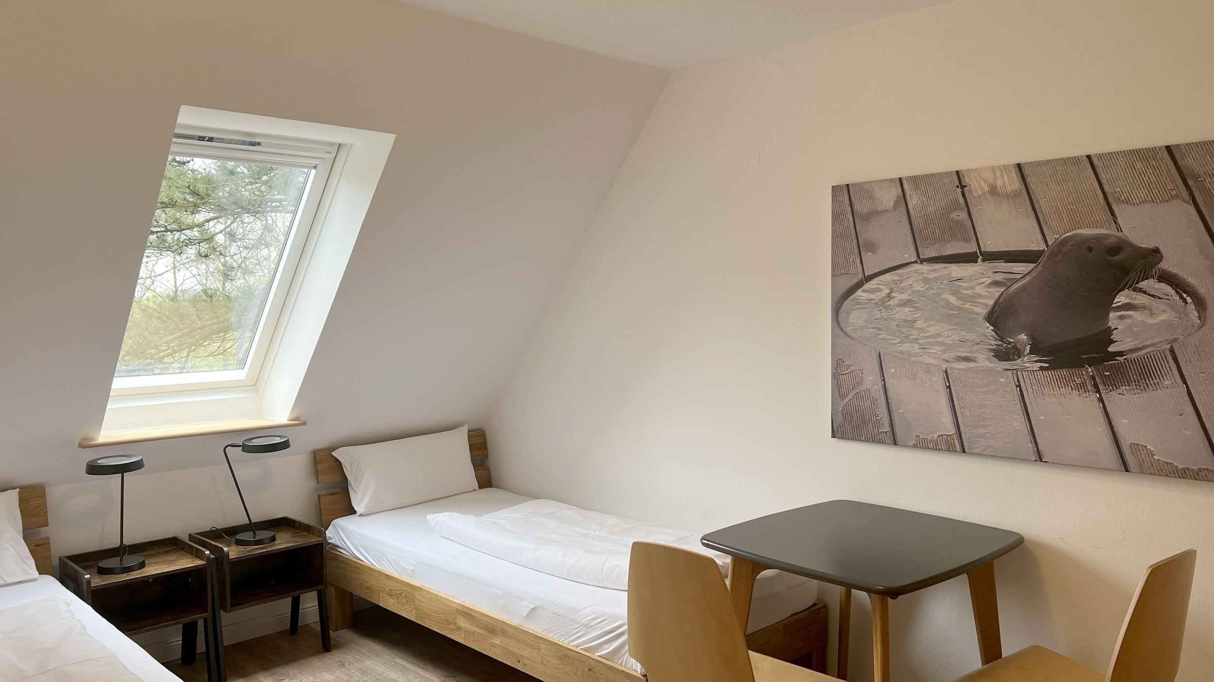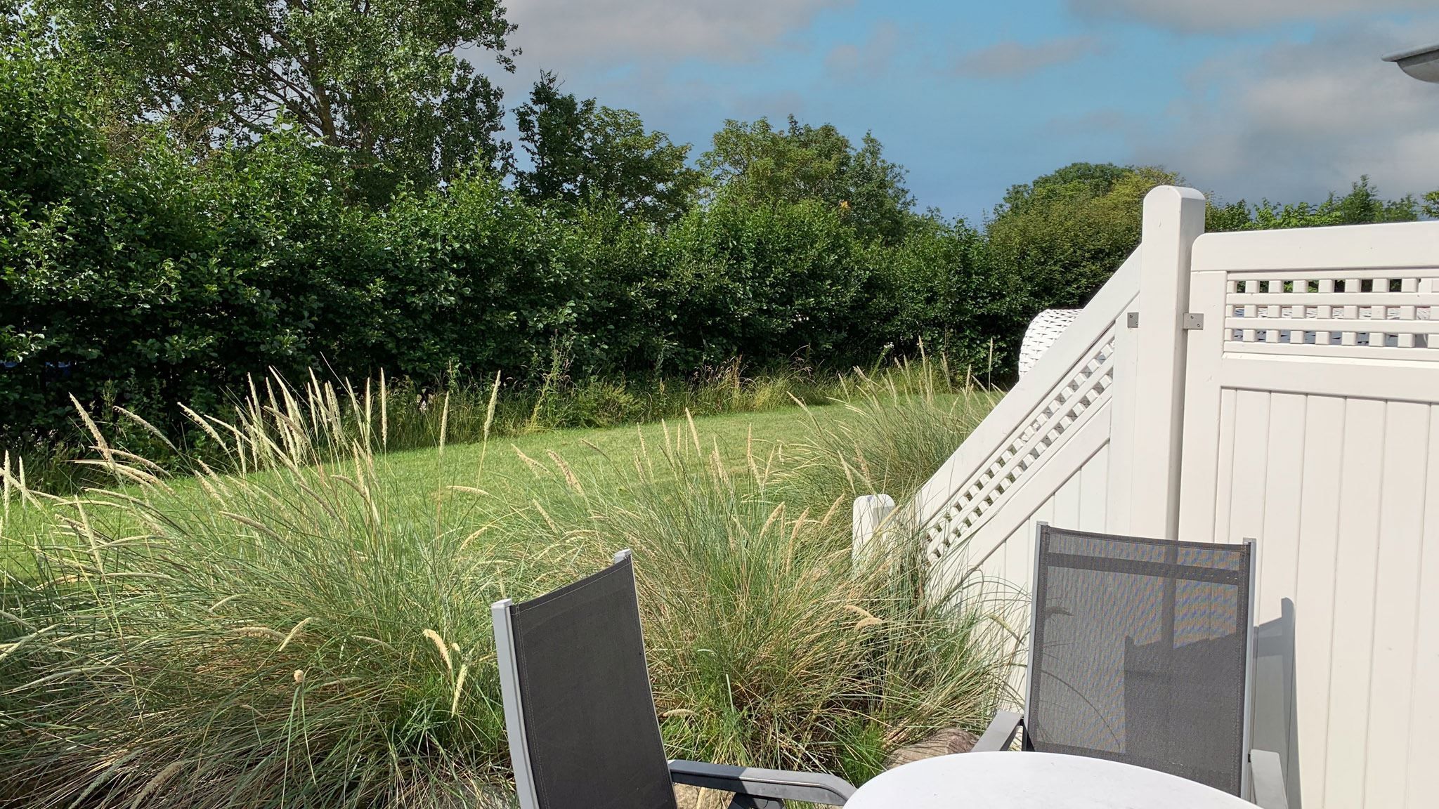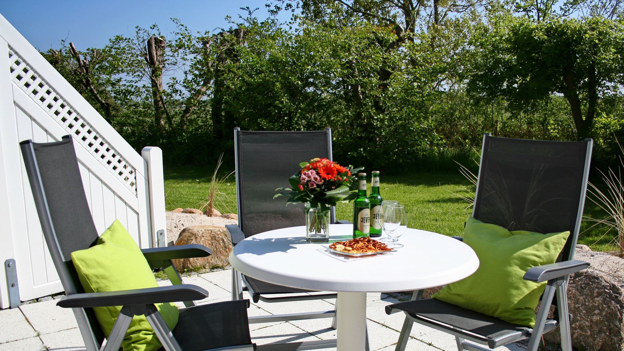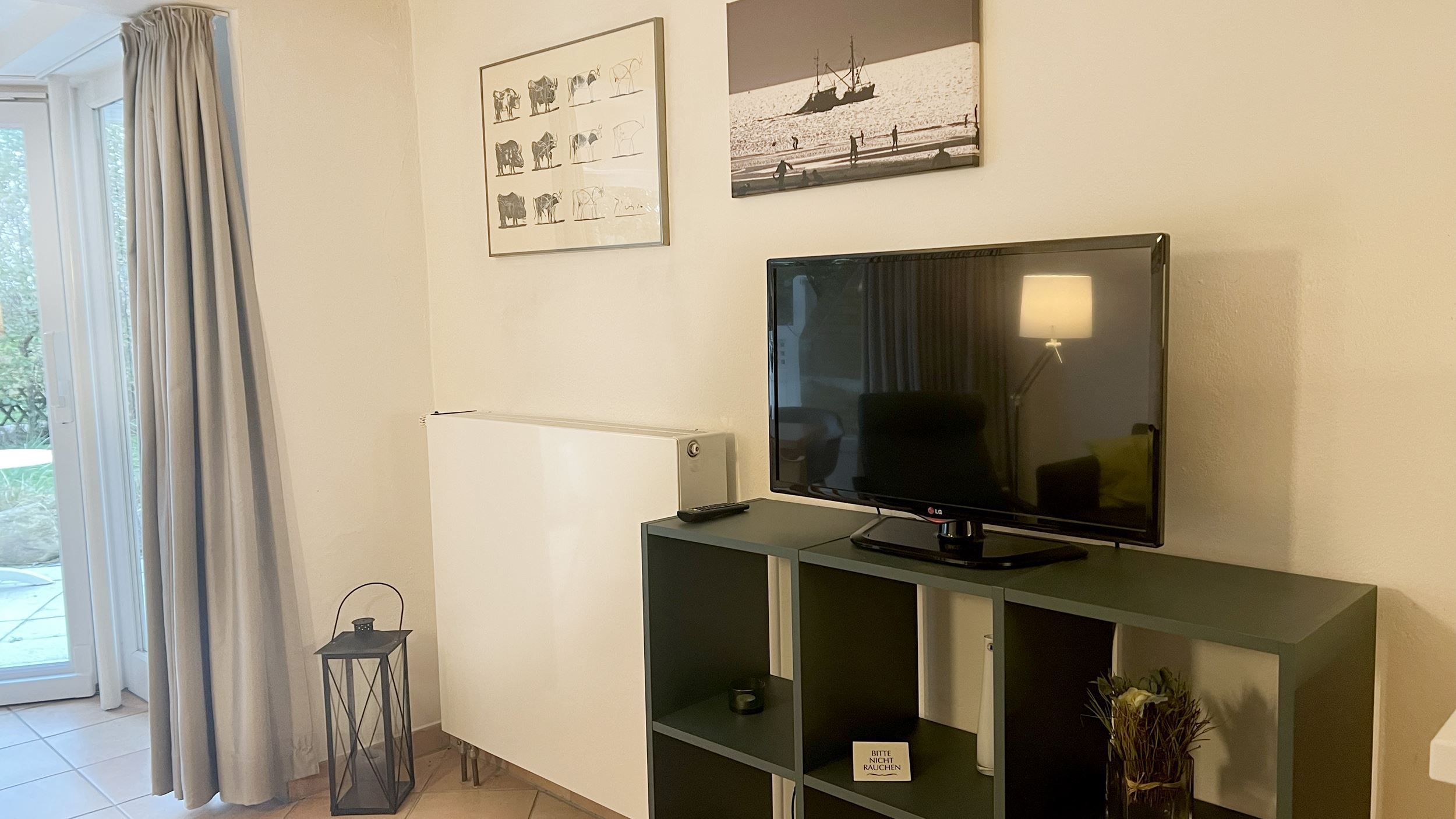 Die ca. 70 qm teilen sich folgendermaßen auf: Im Erdgeschoss befindet sich die Eingangsdiele mit einer gradläufigen Treppe nach oben zu den beiden Schlafzimmern. 1 Schlafraum mit Doppelbett (180x200cm mit getrennten Matratzen), ein Schlafraum mit 2 Einzelbetten (90x200cm). Das Zustellen eines Kinderreisebettes oder Hochstuhles ist kein Problem. Abgehend von der Eingangsdiele der Wohn-Essraum mit voll ausgestatteter Küchenzeile, gemütlicher Sitzecke und Essecke im raumhoch verglasten Wintergarten, direkter Zugang zur mit einer kleinen Sanddüne eingefassten Terrasse und Garten. Das Duschbad ist ausgestattet mit Dusche, WC, Waschtisch und Außenfenster.