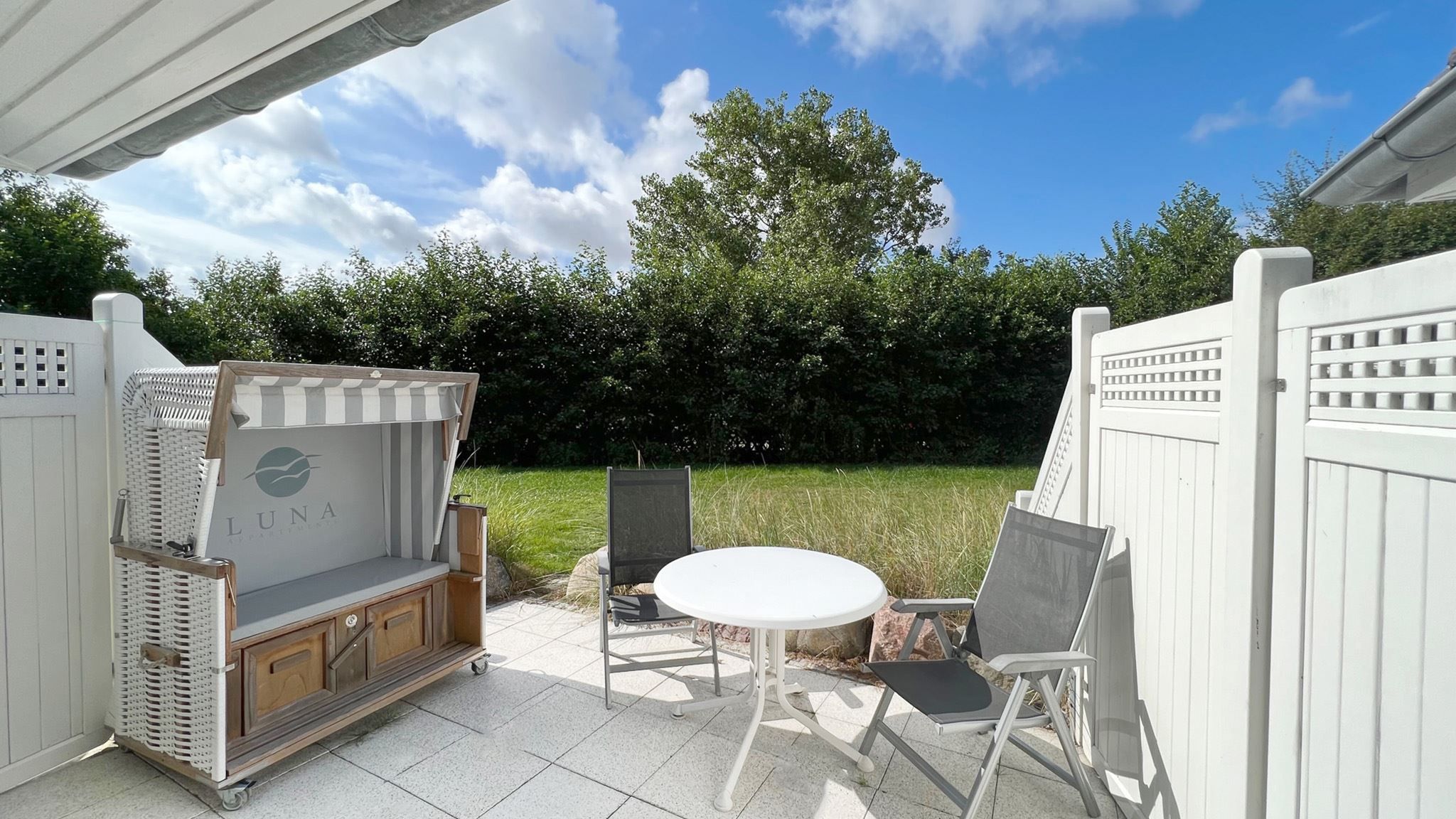 Im Haus Luna II befindet sich die Luna Wohnung 18. Mit einer Größe von 75qm bietet sie ausreichend Platz für bis zu 4 Personen. Durch ihre Bodenbeläge, Designerparkett und/oder Fliesen, ist die Wohnung für Allergiker geeignet. Von der mit einer Garderobe ausgestatteten Eingangsdiele aus führt eine gradläufige Treppe in das Obergeschoss der Wohnung. Hier befinden sich zwei Schlafzimmer. Das eine ist mit einem Doppelbett (180x200cm, getrennte Matratzen) und das andere ist mit zwei Einzelbetten (90x200cm) ausgestattet. Das Zustellen eines Kinderreisebettes ist räumlich kein Problem. Ein solches kann auch mitgebucht werden. Vom Eingangsbereich im Erdgeschoss aus betreten Sie einen großzügigen Wohn-Essraum mit voll ausgestatteter Küchenzeile, gemütlicher Sitzecke mit Fernseher und einem Essbereich. Sie haben kostenlosen Zugriff auf das WLAN. Das moderne Duschbad verfügt über eine begehbare Dusche, WC und Waschbecken sowie ein Außenfenster. Der raumhoch verglaste Wintergarten sorgt für eine angenehme Helligkeit im gesamten Wohn-Essbereich und ermöglicht einen wunderschönen Blick in den Garten. Ebenerdig betreten Sie die von einer kleinen Sanddüne eingefasste Südterrasse. Hier lässt es sich auf den Gartenmöbeln an frischer Nordseeluft frühstücken oder im Strandkorb ein Buch lesen.