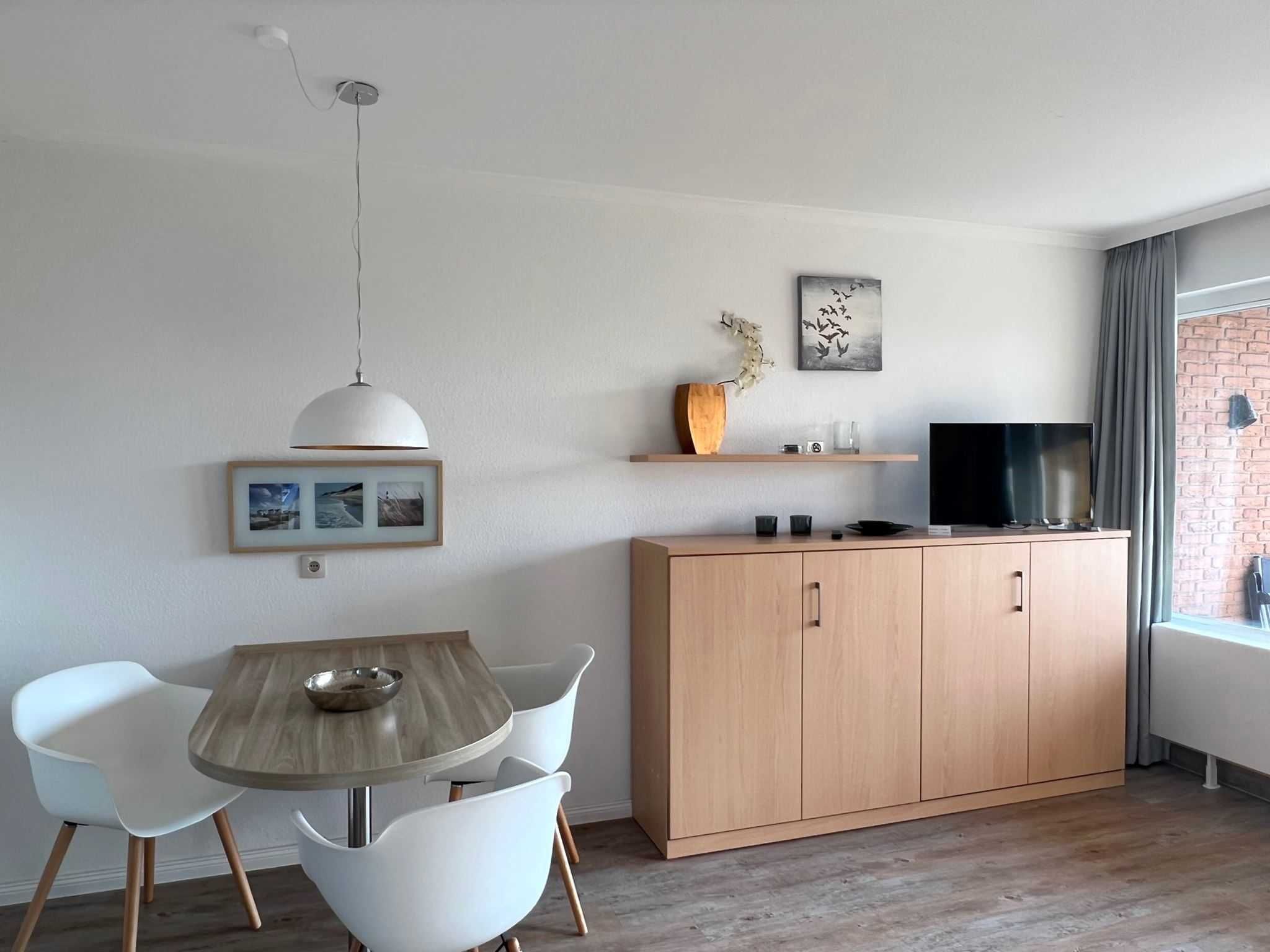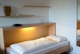 Sie teilt sich wie folgt auf: Eingangsdiele mit Garderobe, Schlafzimmer mit Doppelbett, Duschbad mit WC. Der großzügige Wohnraum mit direktem Zugang zur Loggia überzeugt mit seiner gemütlichen Sitzecke, der modernen, weißen Küche, der Essecke und als weitere Schlafmöglichkeit 1 Schrankbett,