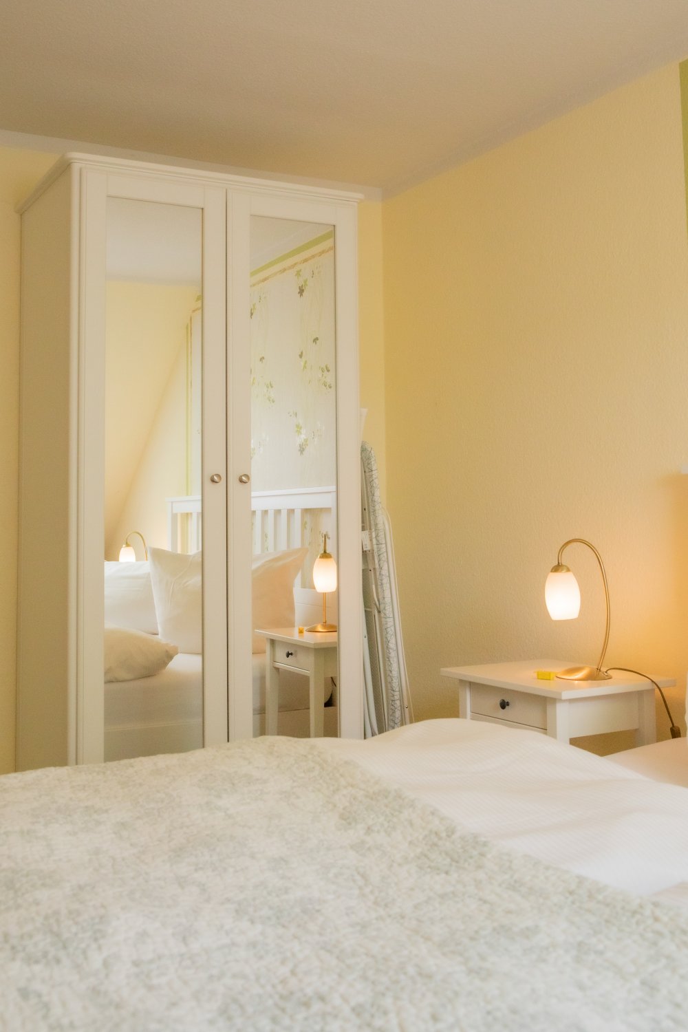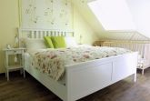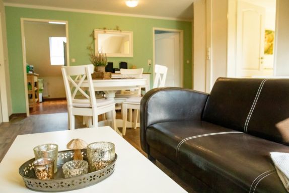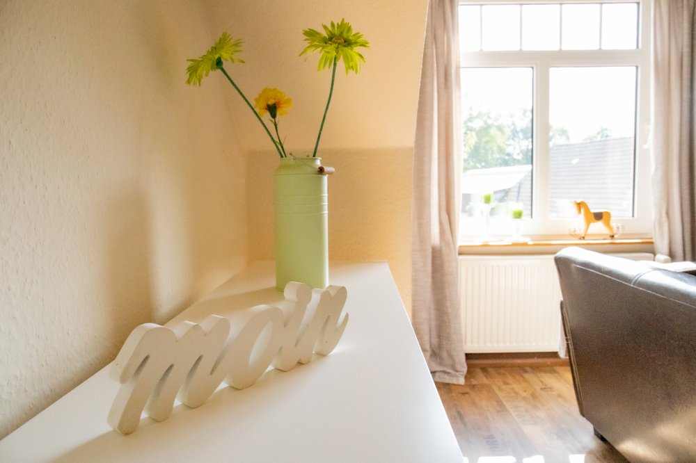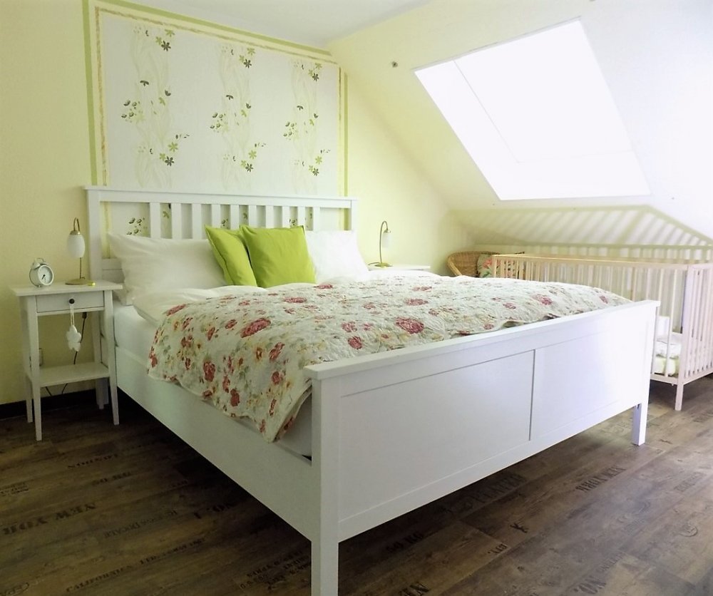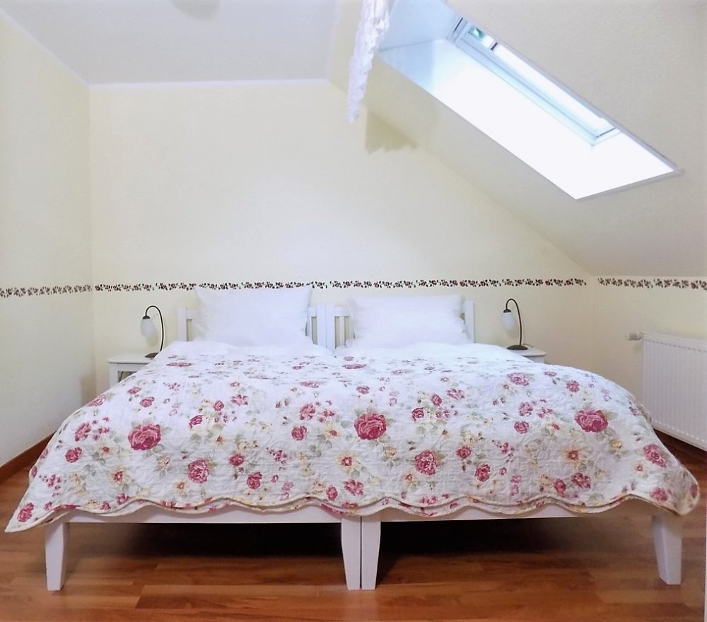 Unsere großzügige Dachgeschoss Wohnung Övert Schkür mit 70 qm verfügt über eine eigene Terrasse im Erdgeschoss die Sie bequem über das Treppenhaus erreichen. Ihre Ferienwohnung verfügt über ein Wohnzimmer mit gemütlicher Sofalandschaft, einen 81 cm Flachbildschirm Sat-TV, Stereoanlage und Radio sowie einen Essbereich, die kleine Küche verfügt über eine gut ausgestattete Küchenzeile, u.a. eine Senseo- und eine Kaffeemaschine, Es gibt 3 Schlafräume, ein Schlafzimmer hat 1 Doppelbett, das zweite Schlafzimmer hat 2 Einzelbetten und das dritte Schlafzimmer hat 1 Einzelbett. Im Badezimmer mit Fenster, Dusche und WC befindet sich auch ein Wickelschrank.