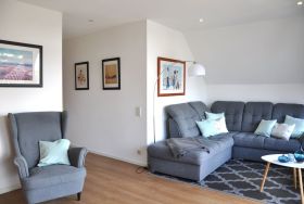 Die helle und liebevoll eingerichtete Ferienwohnung Oland liegt im Obergeschoß eines Einfamilienhaues im kleinen Ort Hattstedt. In Hattstedt haben Sie verschiedene Einkaufsmöglichkeiten (z. B. Bäckerei, Supermarkt, Fleischerei, Fischgeschäft, Friseur, Apotheke, Ärzte, Gastronomie). Alles ist fußläufig gut erreichbar. Im Ort befindet sich ein Fahrradverleih. Die Husumer Innenstadt mit Hafen, Markplatz und Bahnhof erreichen Sie nach ca. 5 km. Die Entfernung zur Messe Husum & Congress beträgt ca. 10 Fahrminuten. Bis zur Nordsee sind es 2,8 km. In Schobüll und in Halebüll finden Sie eine schöne Badestelle in der Nordsee. Weitere Angaben: W-LAN, PKW-Stellplatz, keine Haustiere, Waschmaschine, Nichtraucher.