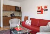 Dieses Haus liegt in ruhiger Lage, nur ca. 5 Gehminuten vom Büsumer Sandstrand entfernt. Auch zum Zentrum, Hafen, Wellenbad und zu den Kureinrichtungen benötigen Sie nicht länger als 10 Gehminuten. Das Haus hat 9 Ferienwohnungen, alle vollständig eingerichtet mit Radio, Sat-TV-Gerät, Telefon und W-LAN. Im wesentlichen handelt es sich um 2-Raumwohnungen mit Terrasse oder Balkon für 2 bis 3 Personen. Außerdem können wir Ihnen eine Luxuswohnung für 4 Personen mit 2 Schlafzimmern, 2 Bädern, Kamin, großer Küche und großer Terrasse anbieten. Für Ihre Fahrräder steht eine Garage zur Verfügung. Stellplätze befinden sich direkt am Haus.