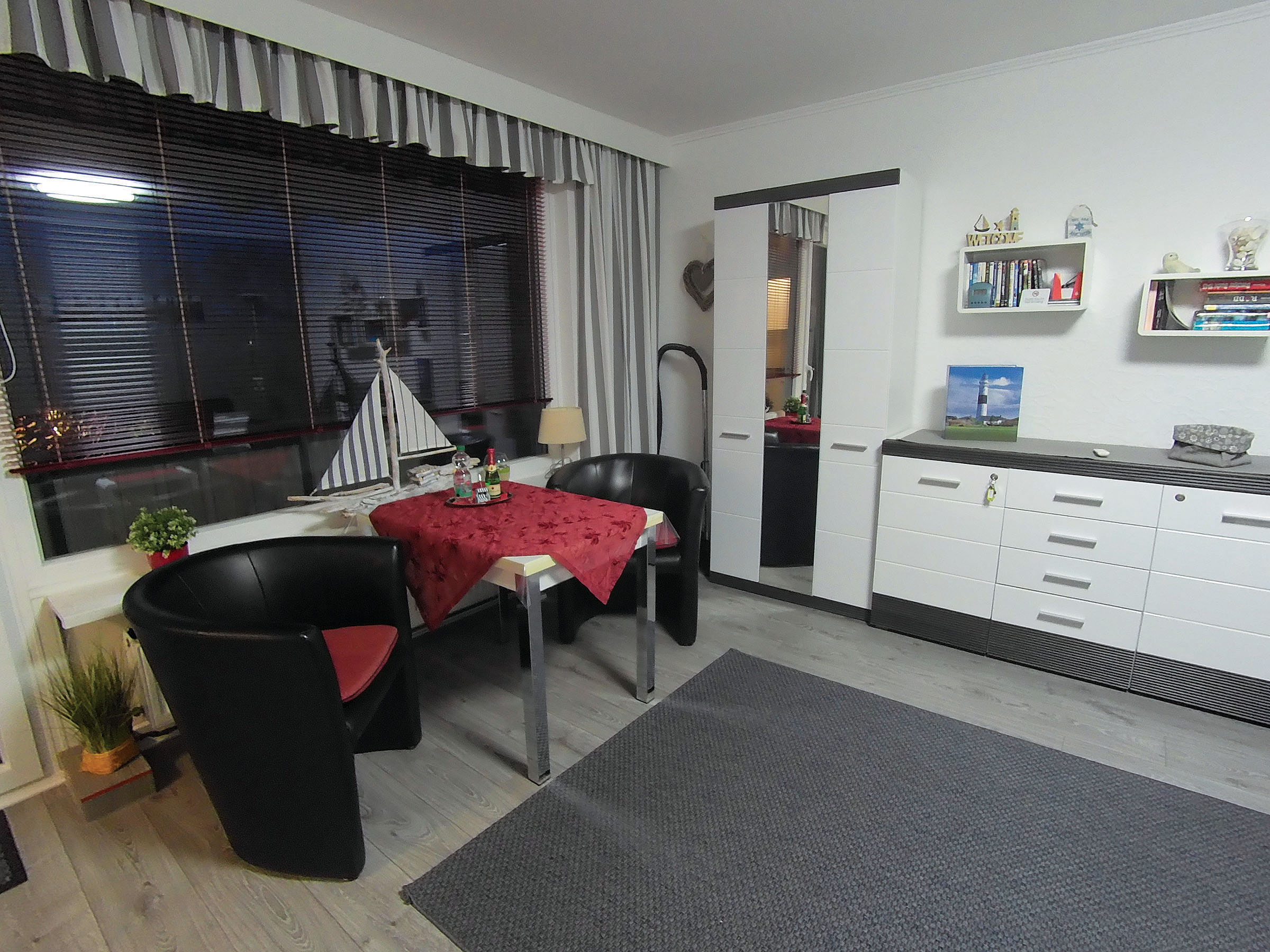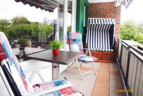 Ihren PKW können Sie bequem auf dem zum Haus gehörenden Parkplatz abstellen. Für mitgebrachte Fahrräder gibt es einen Fahrrad-Unterstand direkt am Haus. Vom ca. 8 qm großen Balkon aus schaut man über den liebevoll angelegten Wohlfühlgarten zum Deich. Durch die Süd/West-Lage hat man bis in die Abendstunden sehr viel Sonne. Die Gäste können nach einem erholsamen Tag am Strand den Abend entspannt ausklingen lassen. Bei kühlerem Wetter oder bei einer Norddeutschen steifen Brise kann man durch unser großes Panoramafenster das bunte Treiben auf dem Deich und im Wohlfühlgarten beobachten.