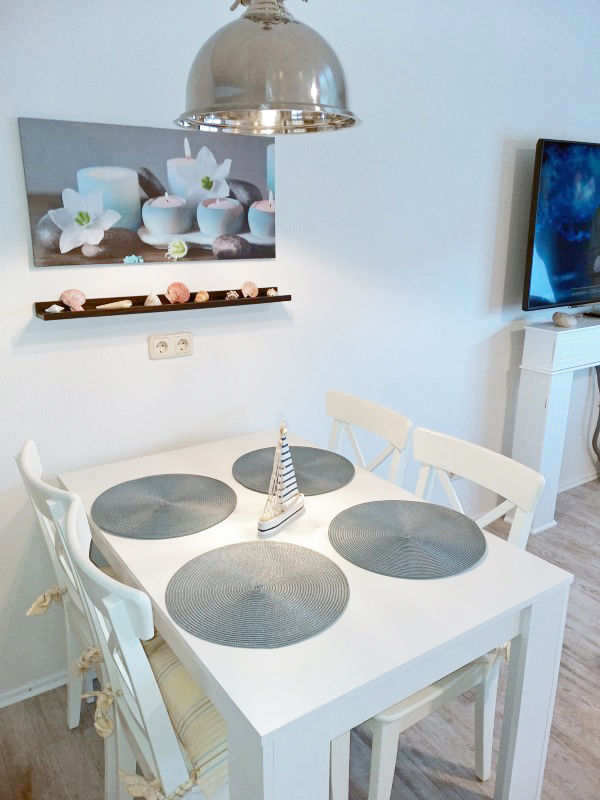 Ein Wäschepaket kann gegen Gebühr in Höhe von 30,00 EUR pro Person gestellt werden (nur Bettwäsche: 15,00 EUR pro Person; nur Handtücher: 15,00 EUR pro Person). Keller: Gemeinschafts-Waschraum (Waschmaschine und Trockner mit Münzeinwurf), Trockenraum, abschließbarer Fahrrad-Abstellraum, Tischtennisplatte. Fest zugeordneter PKW-Stellplatz auf Parkdeck mit funkferngesteuerter Schranke; Fahrradbügel vor Hauseingang zum Abstellen von Fahrrädern. Sonstiges: Nur Nichtraucher! Haustiere sind leider nicht gestattet! Der Lift fährt nicht ins Hochparterre; die Wohnung ist über 6 Stufen zu erreichen.