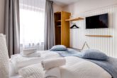 Bett- und Handtuchwäsche (Bettwäsche, ein großes und ein kleines Handtuch) können für 20,-- EUR pro Person optional dazu gebucht werden. Diese Leistungen sind nach Buchungsabschluss zusätzlich beim Gastgeber anzumelden und die Kosten hierfür entsprechend extra zu entrichten. WLAN und ein PKW-Parkplatz am Haus werden kostenfrei zur Verfügung gestellt. Es befindet sich ebenfalls eine PKW-E-Ladesäule auf dem hauseigenen Parkplatz. Auf dem Grundstück befinden sich eine Schaukel zum Spielen; ein Spielplatz befindet sich in der Nähe. Haustiere sind leider nicht gestattet. Im EG rechts neben der Eingangstür gibt es einen Waschraum mit Waschmaschine, Trockner und Staubsauger. Fahrräder können im abschließbaren Fahrradschuppen untergebracht werden.
