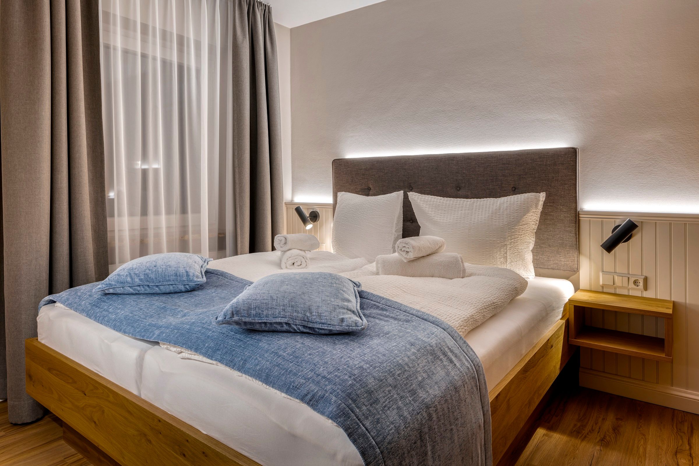 Bett- und Handtuchwäsche (Bettwäsche, ein großes und ein kleines Handtuch) können für 20,-- EUR pro Person optional dazu gebucht werden. Diese Leistungen sind nach Buchungsabschluss zusätzlich beim Gastgeber anzumelden und die Kosten hierfür entsprechend extra zu entrichten. WLAN und ein PKW-Parkplatz am Haus werden kostenfrei zur Verfügung gestellt. Es befindet sich ebenfalls eine PKW-E-Ladesäule auf dem hauseigenen Parkplatz. Auf dem Grundstück befinden sich eine Schaukel zum Spielen; ein Spielplatz befindet sich in der Nähe. Haustiere sind leider nicht gestattet. Im EG rechts neben der Eingangstür gibt es einen Waschraum mit Waschmaschine, Trockner und Staubsauger. Fahrräder können im abschließbaren Fahrradschuppen untergebracht werden.