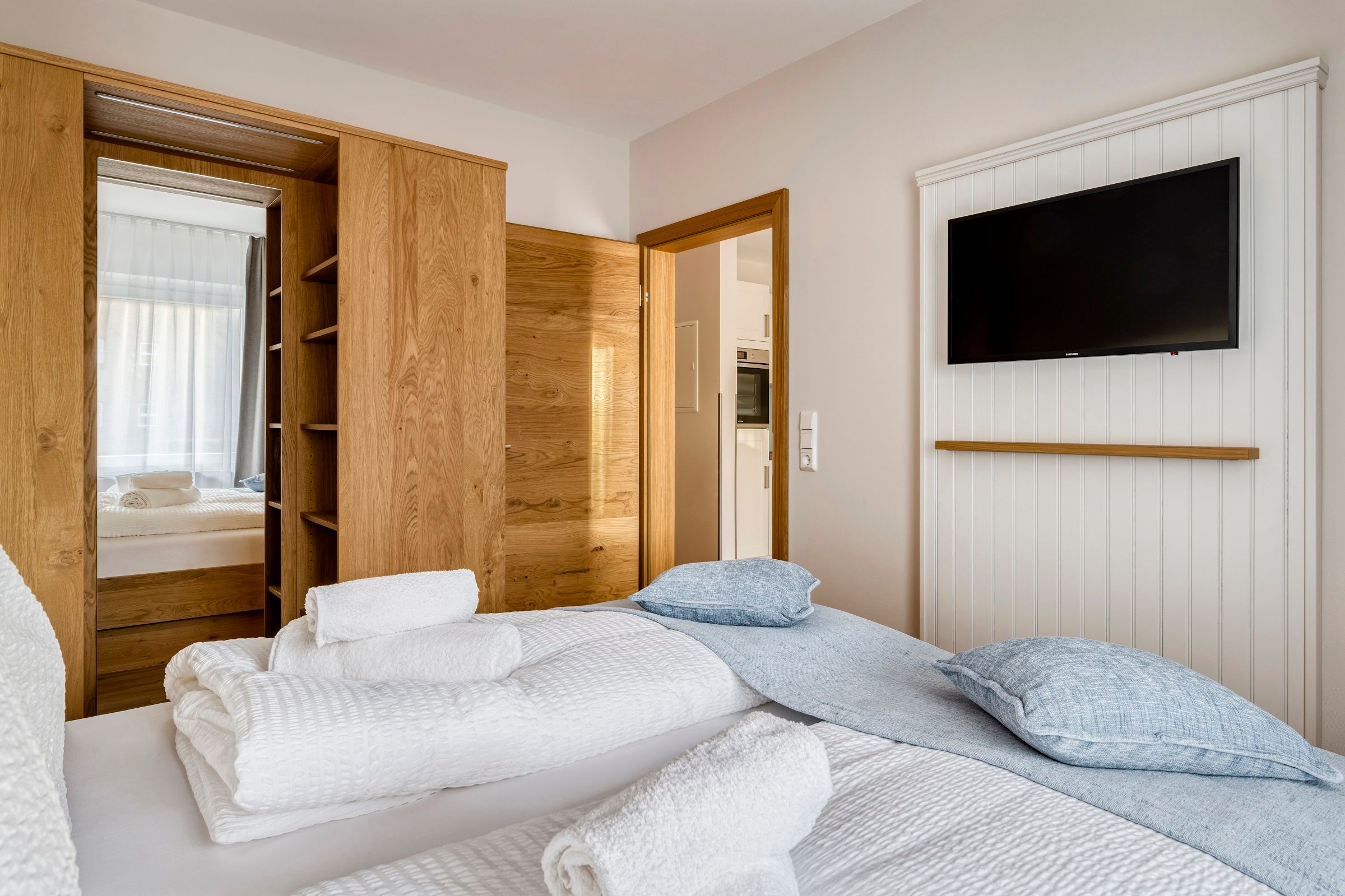 Unser modernes Ferienhus Op de Eck befindet sich 900 m von der Perlebucht entfernt. Nutzen Sie bequem unsere Parkplätze direkt am Haus. Für E-Fahrzeuge haben wir eine praktische Batterie-Ladestation. Sie sind in 20 Minuten zu Fuß oder in ca. 6 Minuten mit dem Fahrrad im 1,9 km entfernten Zentrum. In den Ferienzeiten befindet sich ein Bäckerverkaufswagen in der Straße Große Tiefe, ca. 50 m vom Haus entfernt. Bett- und Handtuchwäsche (Bettwäsche, ein großes und ein kleines Handtuch) können für 20,-- EUR pro Person optional dazu gebucht werden. Diese Leistungen sind nach Buchungsabschluss zusätzlich beim Gastgeber anzumelden und die Kosten hierfür entsprechend extra zu entrichten.